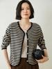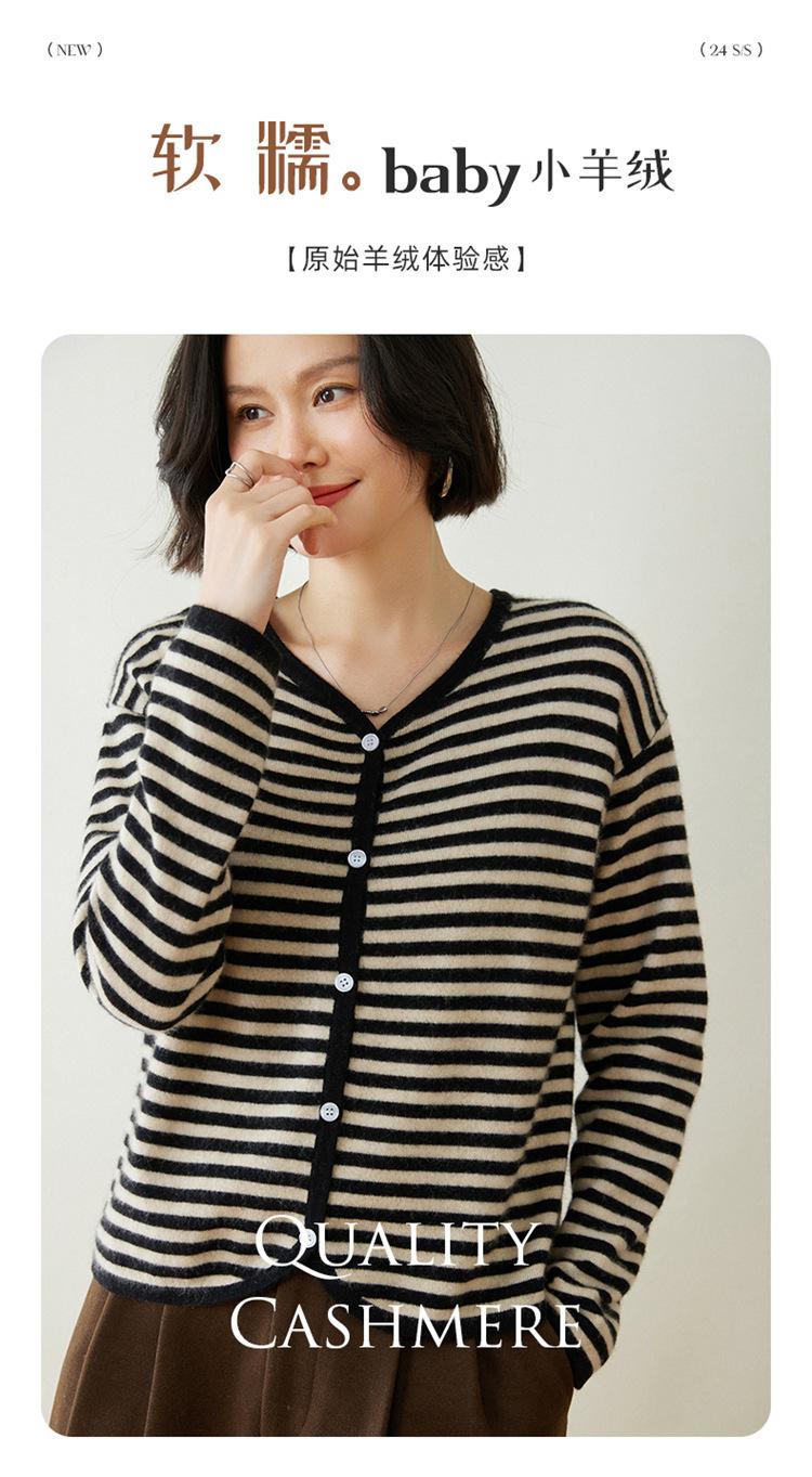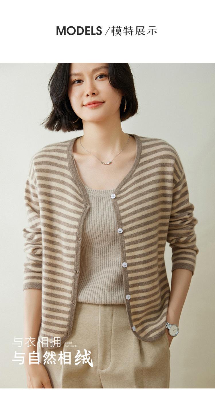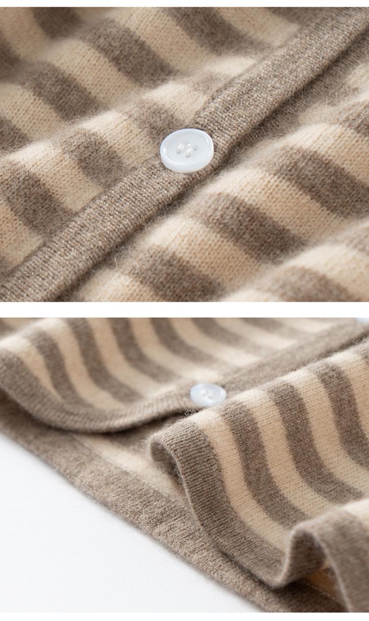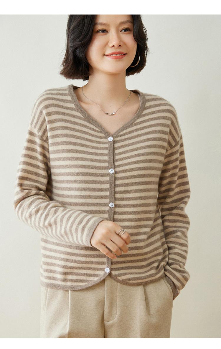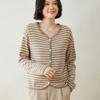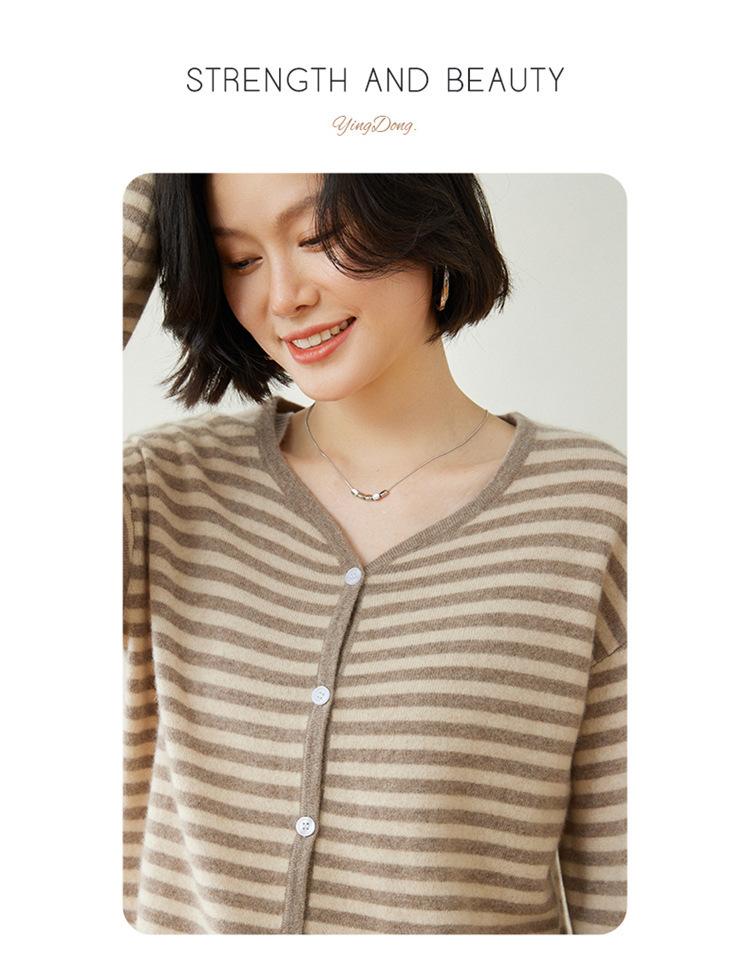 Otoño/Invierno 2025 Nueva Ropa de Punto de Cachemira para Mujer Manga Larga Diseño a Rayas Suelta Suave Versátil Estilo Holgazán Cárdigan