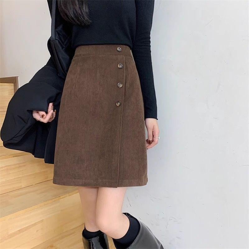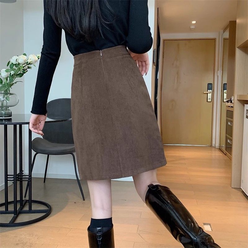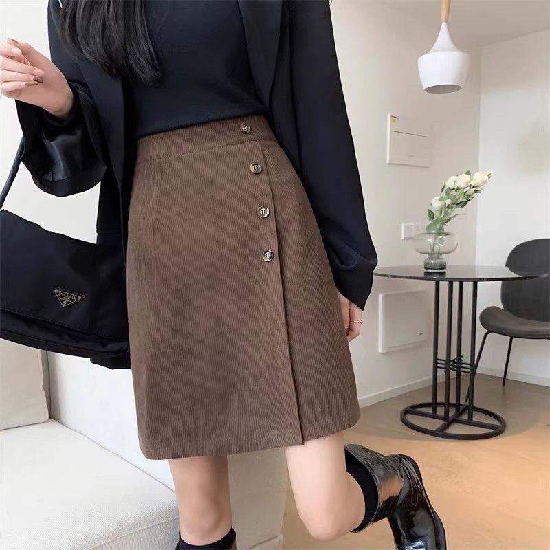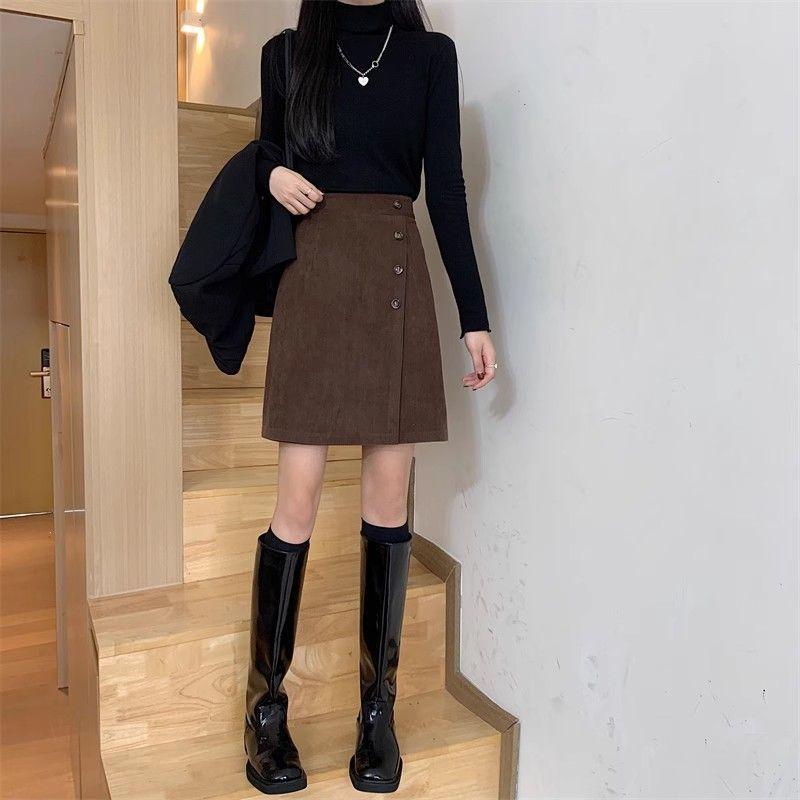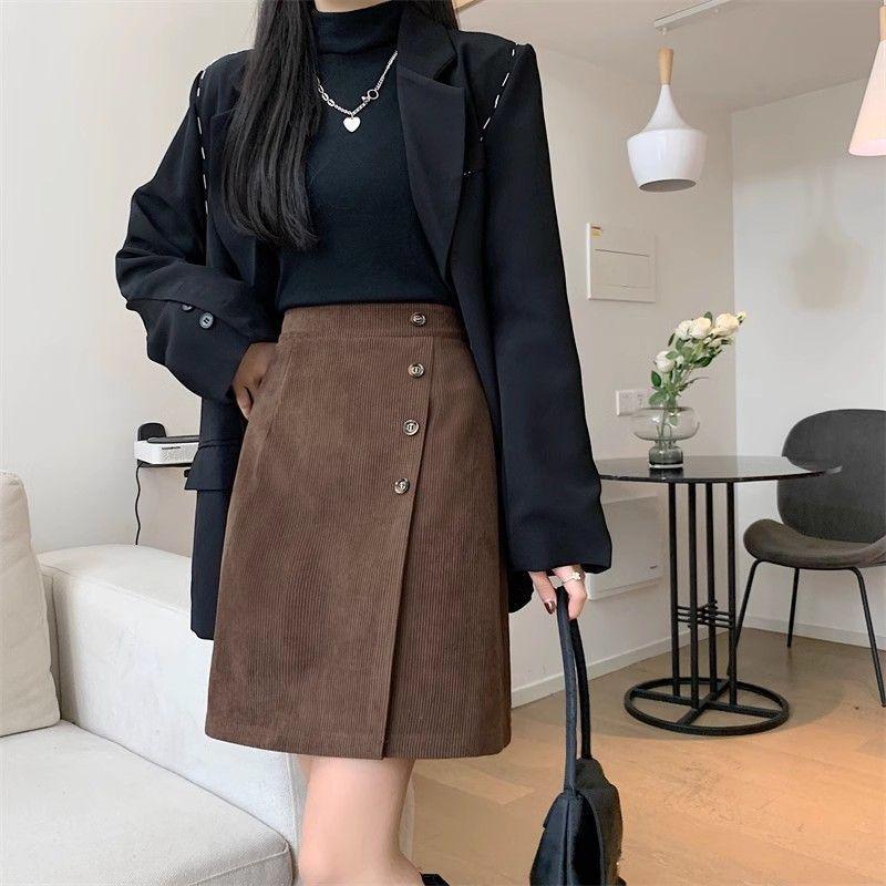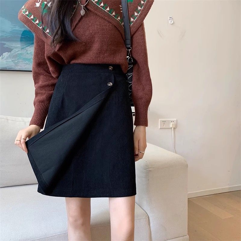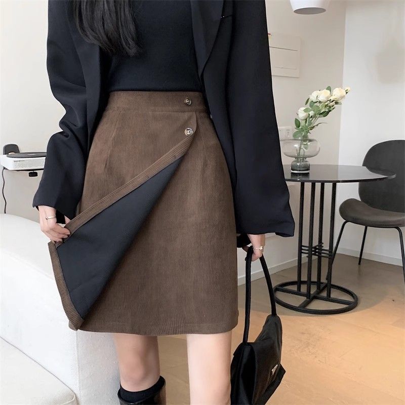 Falda línea A falda midi mujer cubre vientre adelgazante 2025 primavera y otoño nuevo talla grande falda corta moderna versátil cintura alta falda pantalón