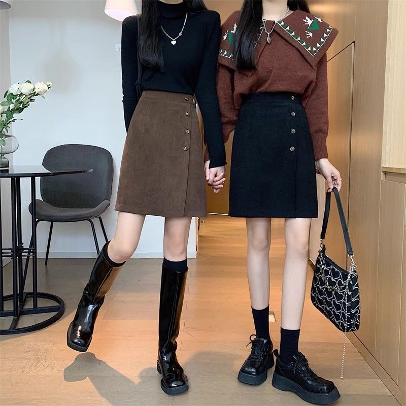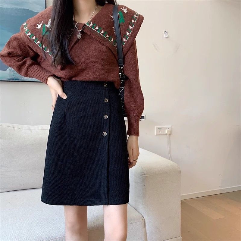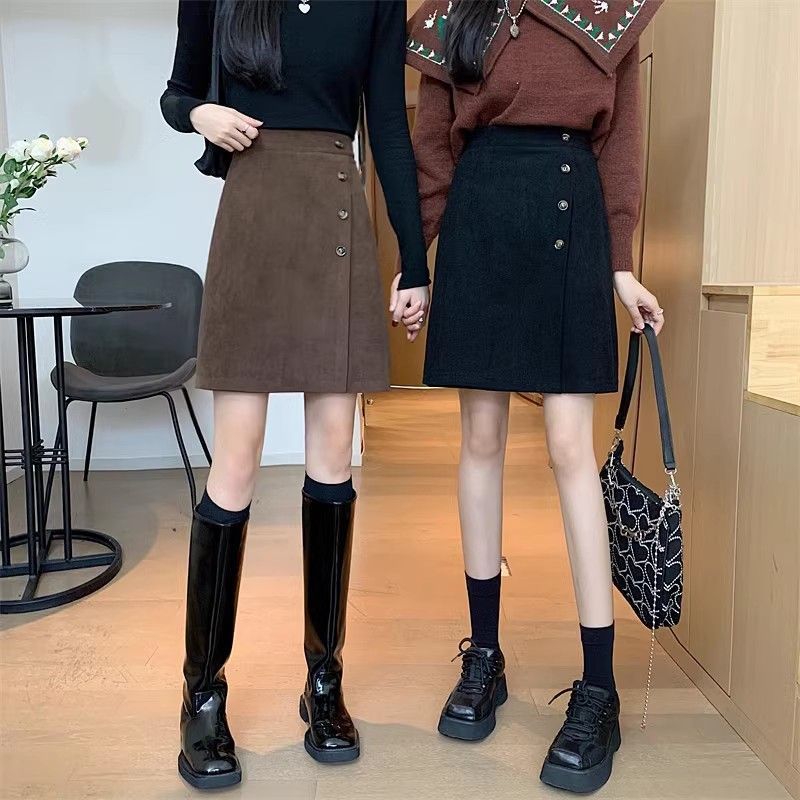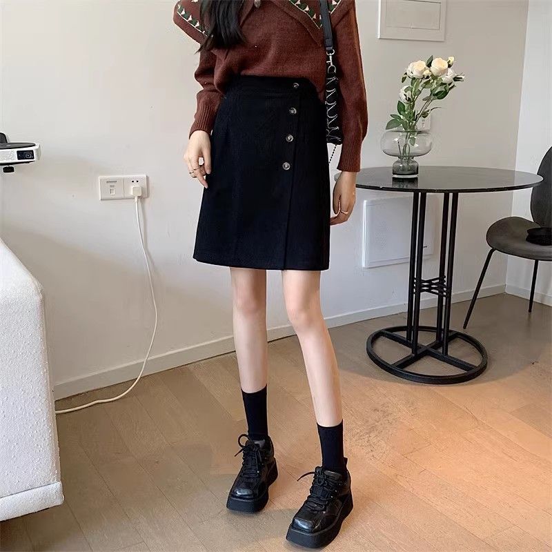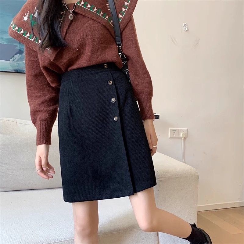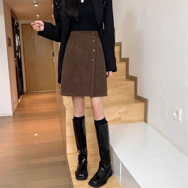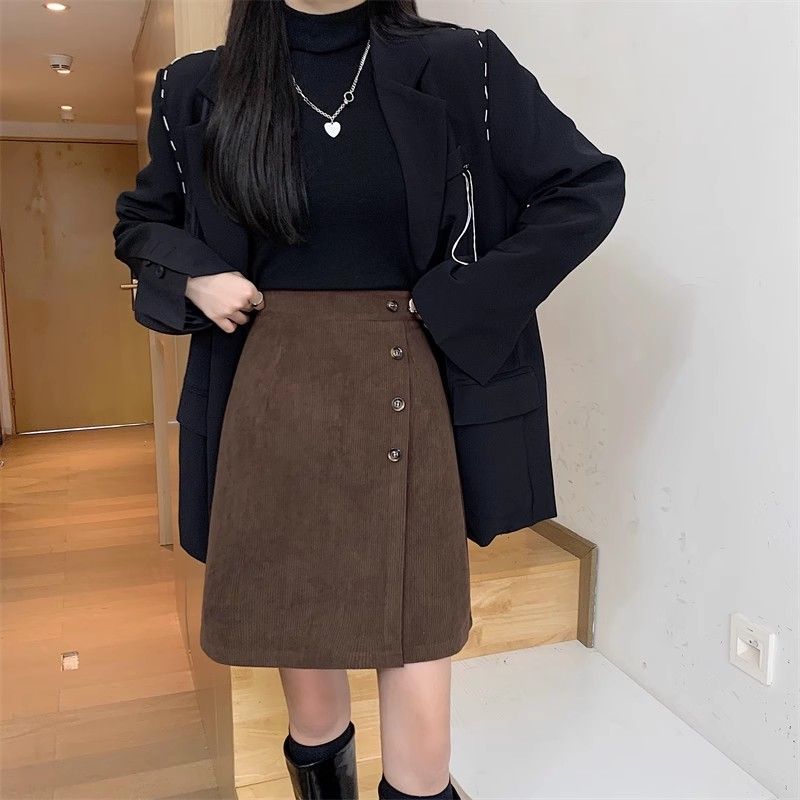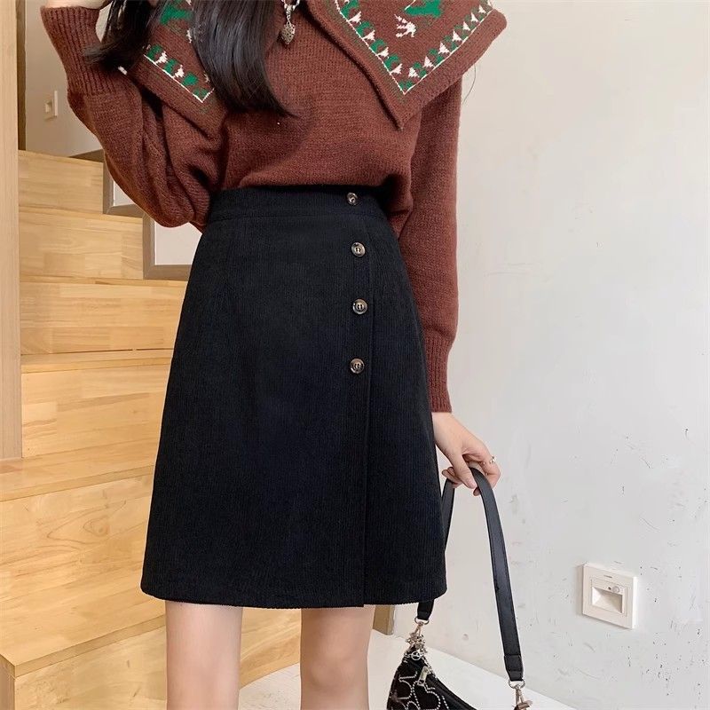 Falda línea A falda midi mujer cubre vientre adelgazante 2025 primavera y otoño nuevo talla grande falda corta moderna versátil cintura alta falda pantalón