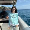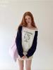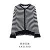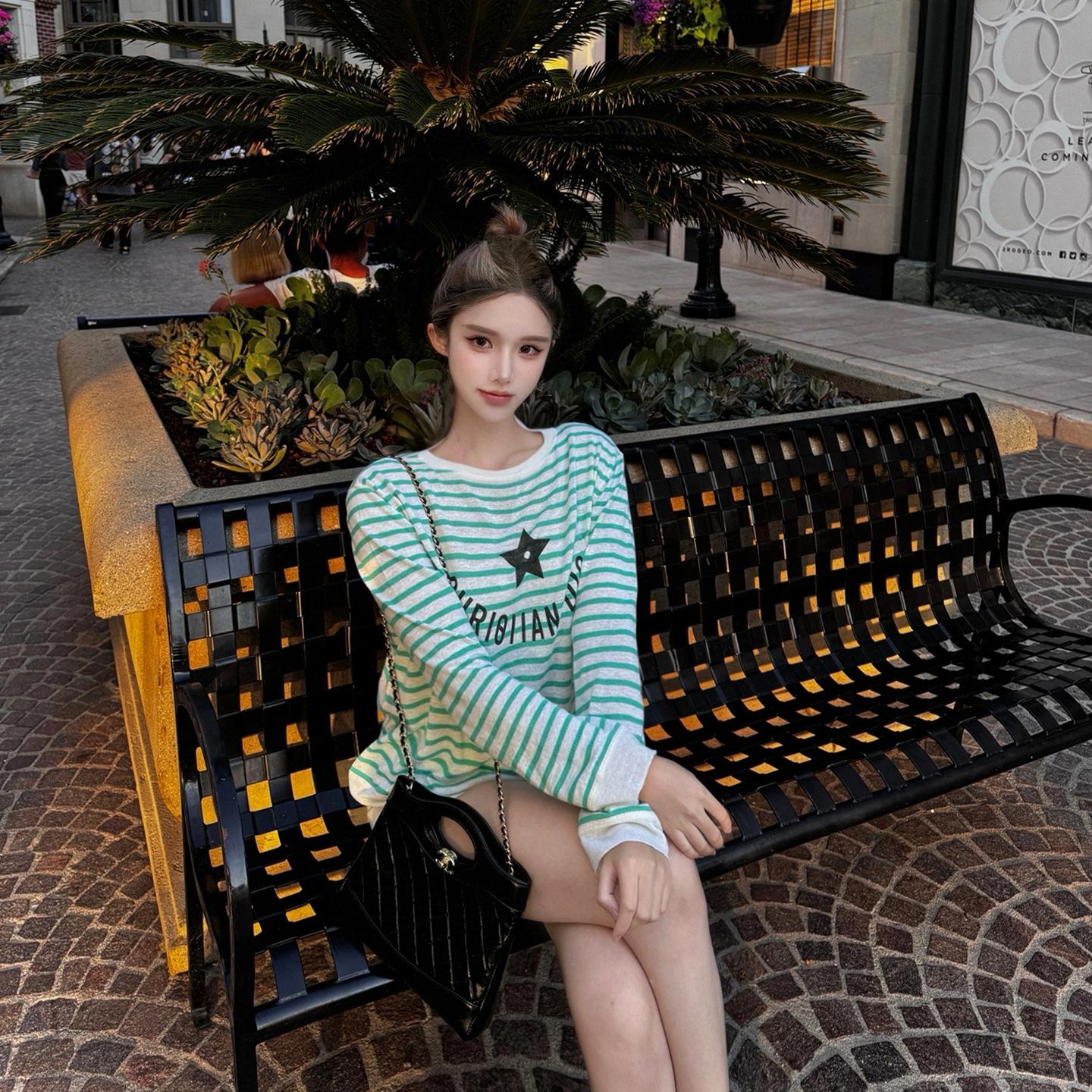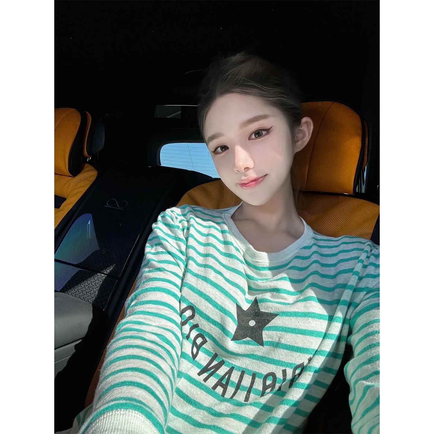 Ropa de Punto a Rayas Vacacionales Francesas para Mujer 2025 Nueva Estampado de Letras de Estrella de Cinco Puntas Protección Solar Manga Larga Camiseta Fina Top