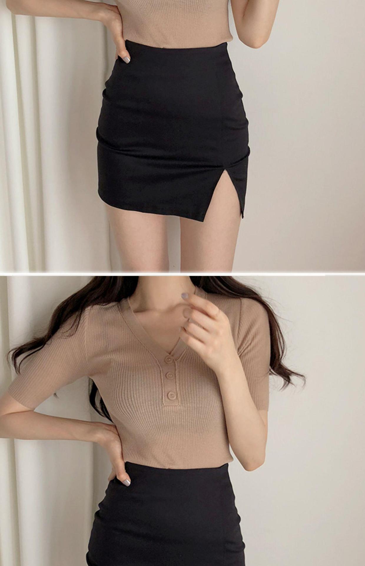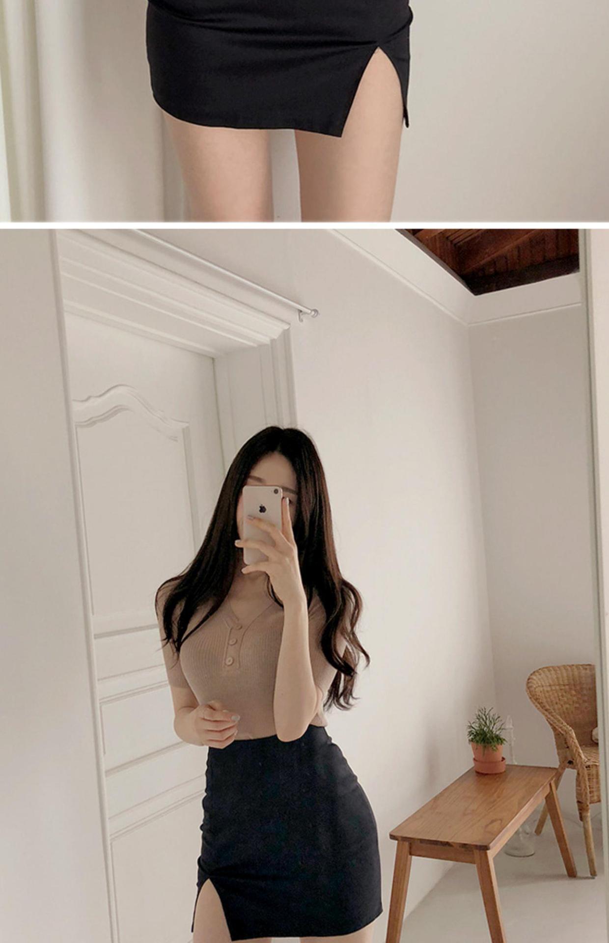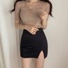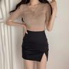 2025 Nueva Falda Negra Ajustada de Cadera Verano Cintura Alta Súper Hot Falda Ajustada con Abertura Ol Falda Corta Sexy Falda Corta