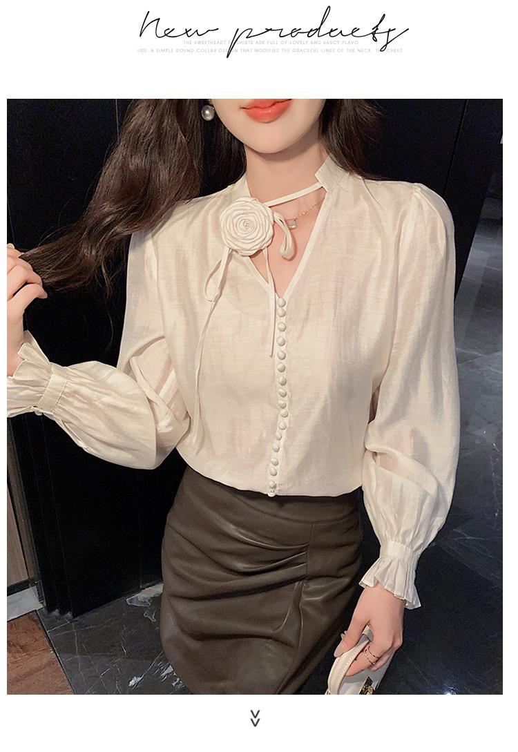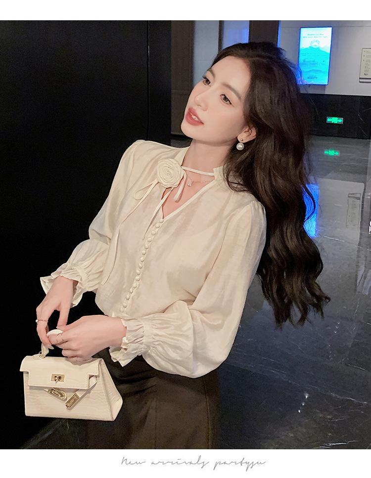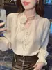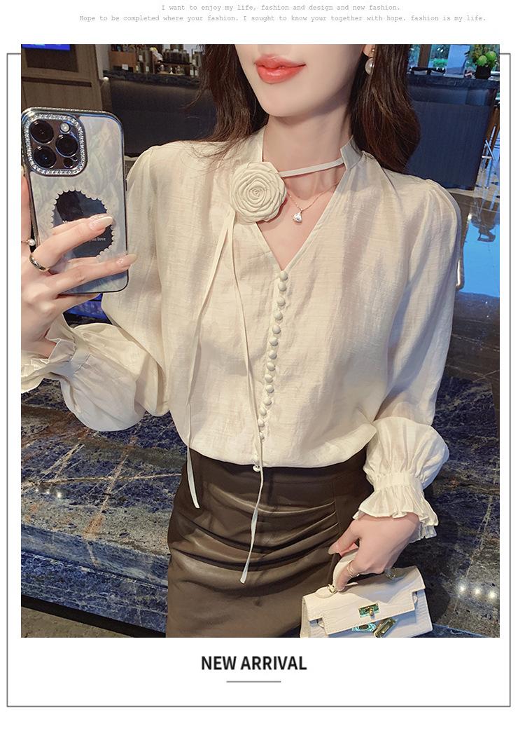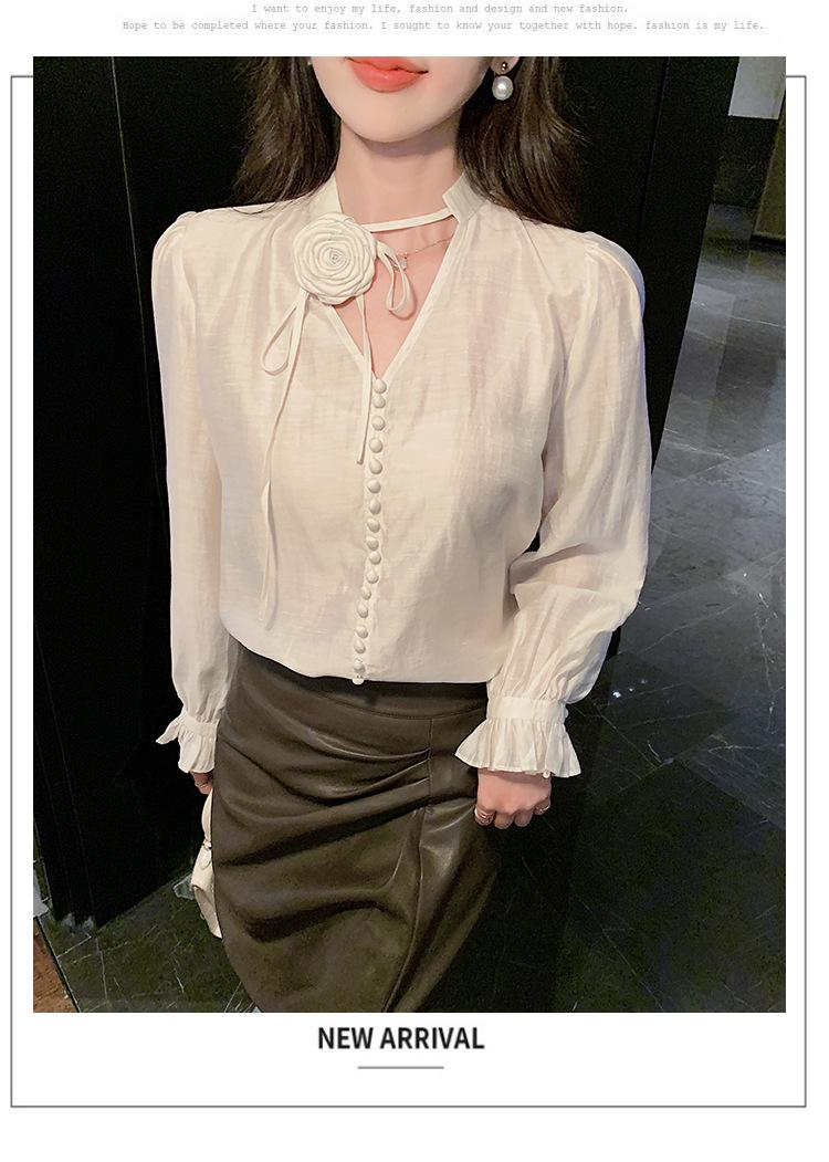 Camisa Francesa Única de Cuello en V para Mujer Otoño 2025 Nueva de Gama Alta Se Ve Muy Bien Camisa de Manga Larga A7092