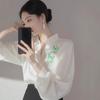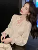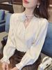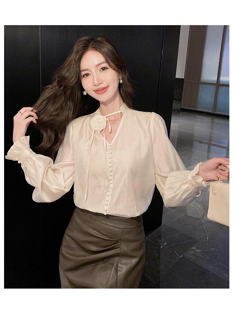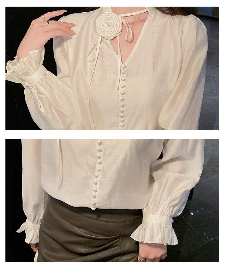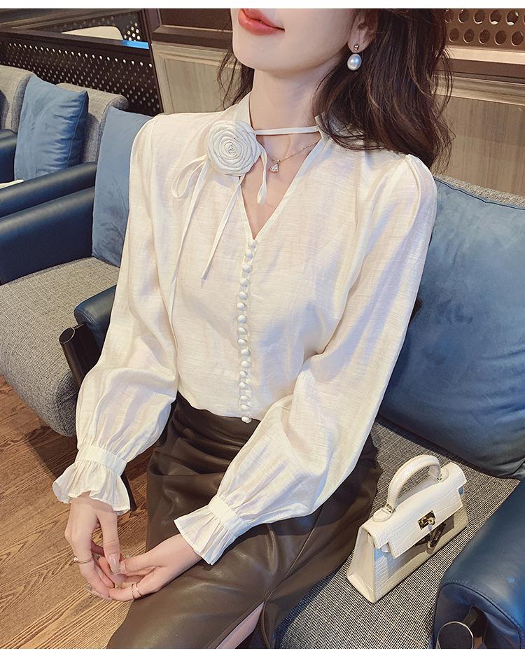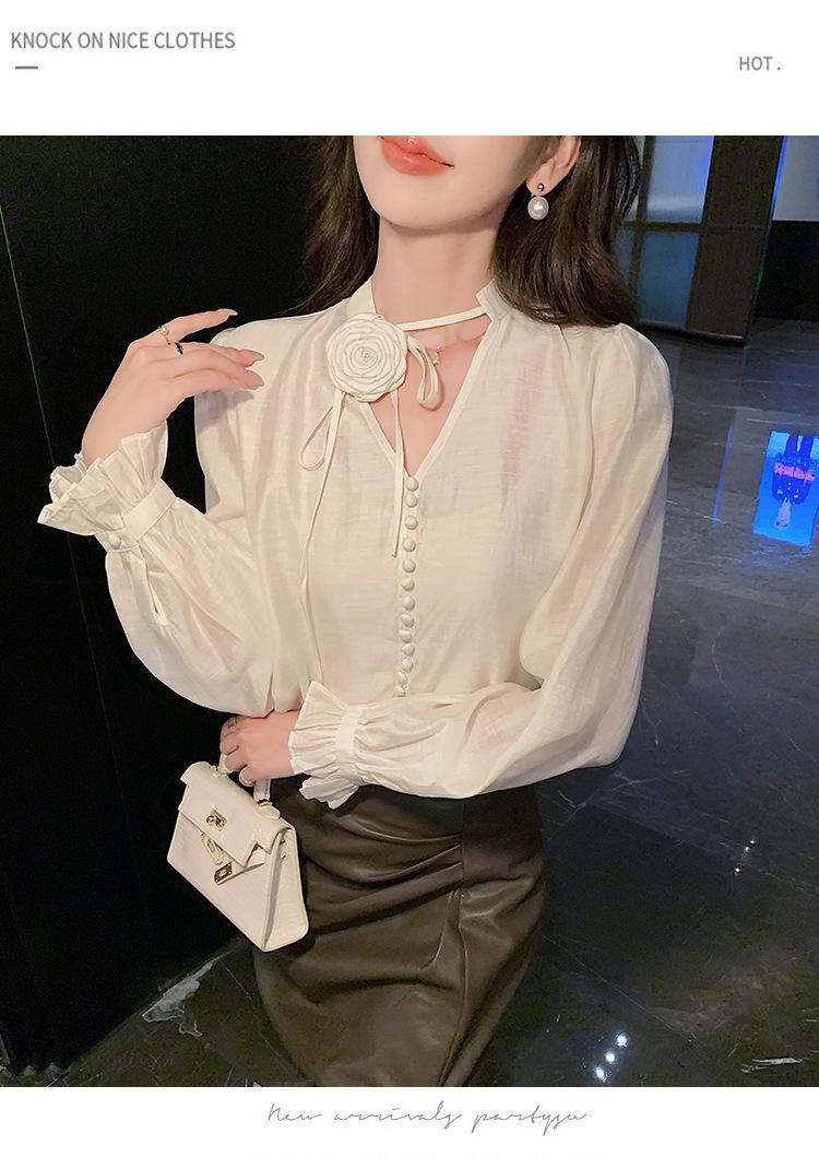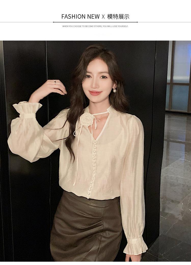 Camisa Francesa Única de Cuello en V para Mujer Otoño 2025 Nueva de Gama Alta Se Ve Muy Bien Camisa de Manga Larga A7092