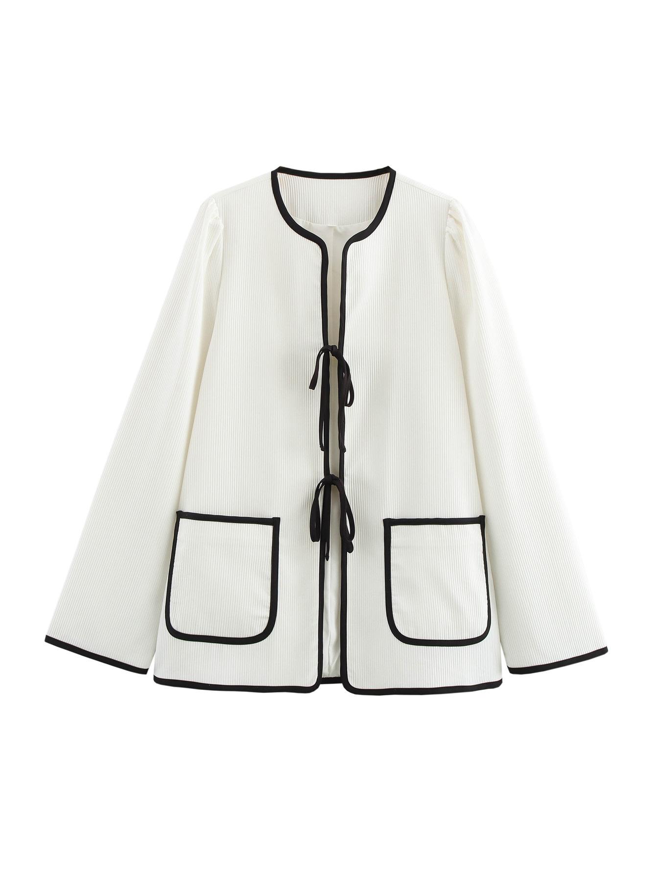 Amazon Comercio Exterior Transfronterizo Ropa Europea y Americana 2025 Primavera Nuevo Chaqueta Holgada con Cordones de Color en Contraste