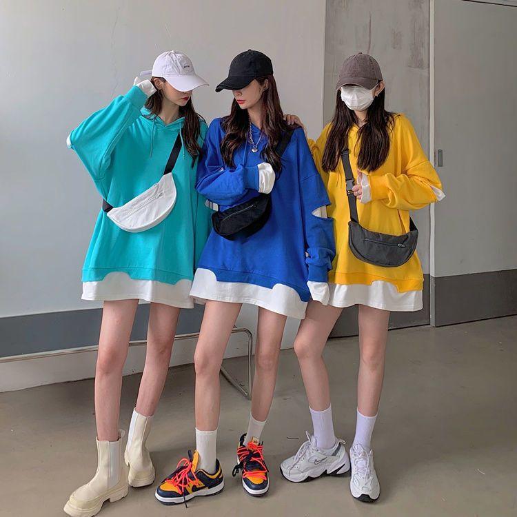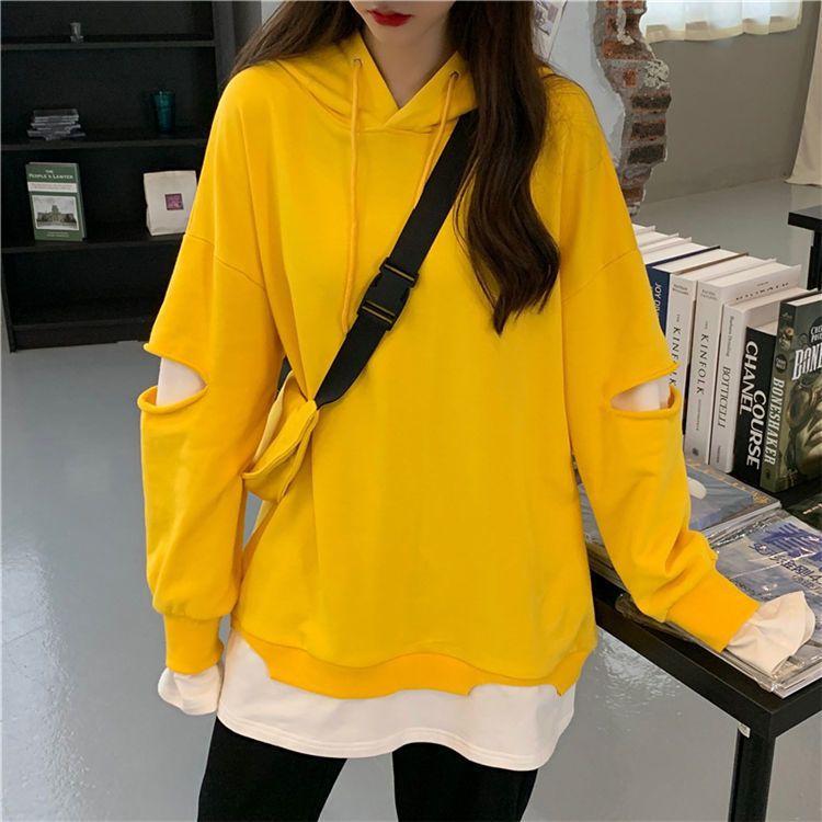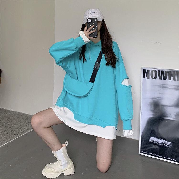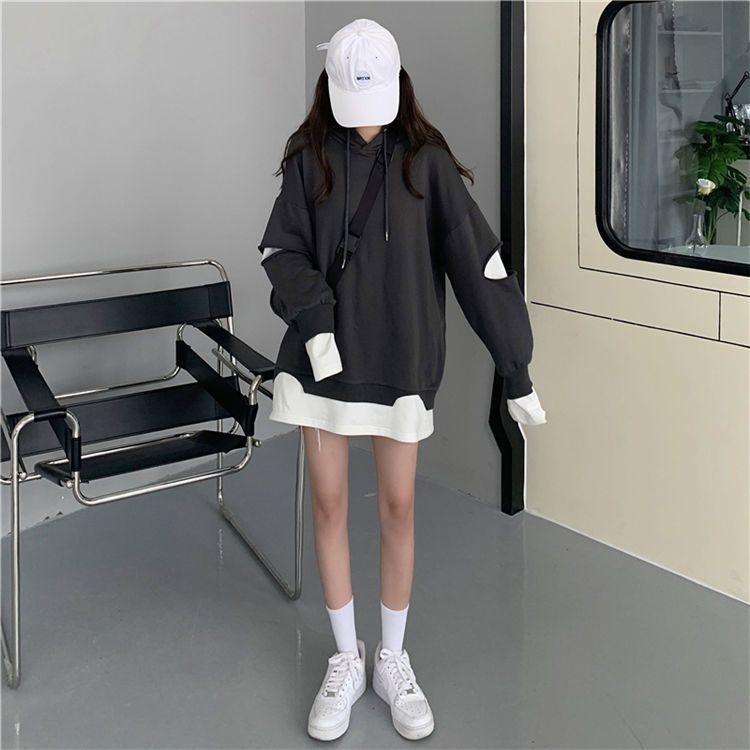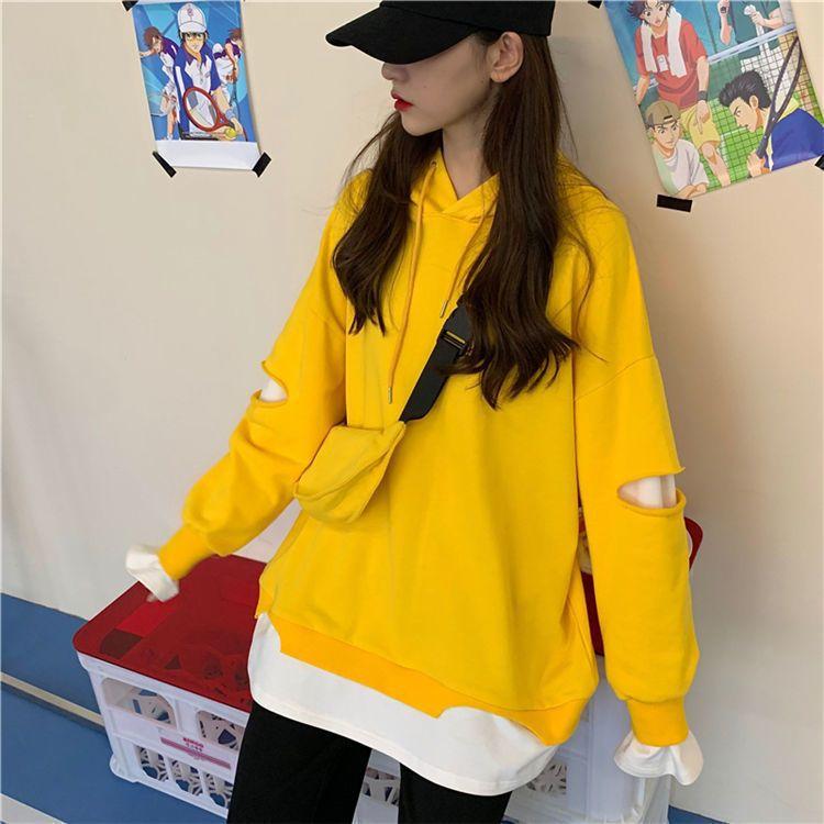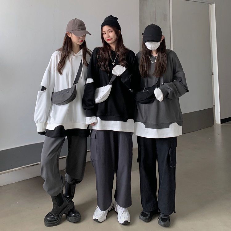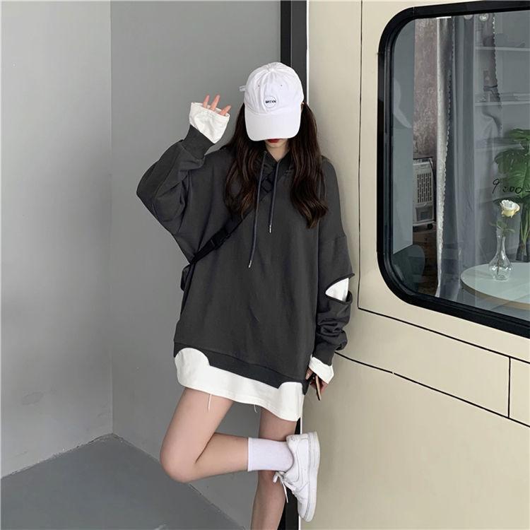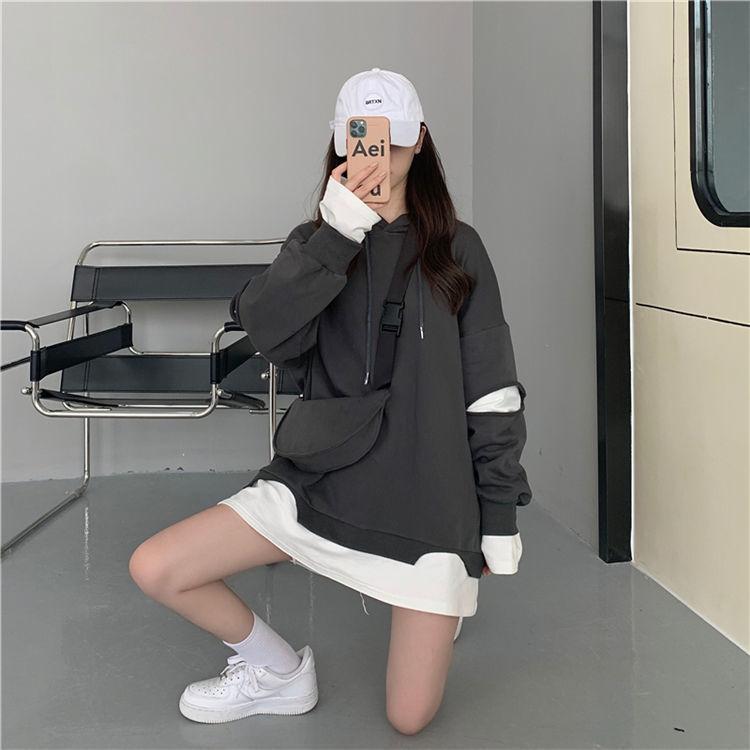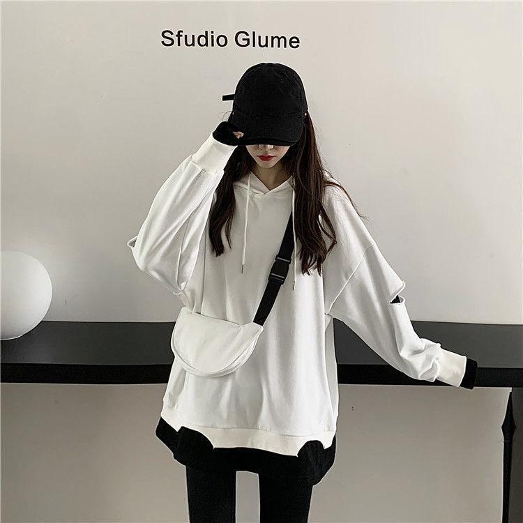 Shandali Di Otoño Nuevo Sudadera Mujer Tendencia ins Con Capucha Estudiante Estilo Coreano Holgado Estilo Lazy Chaqueta Patchwork Falso