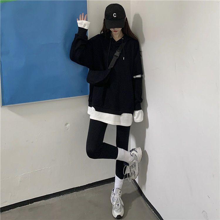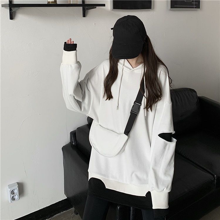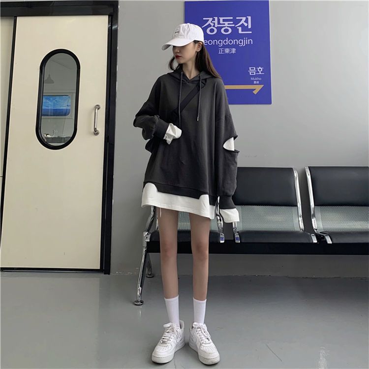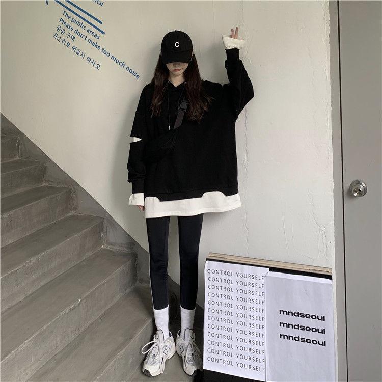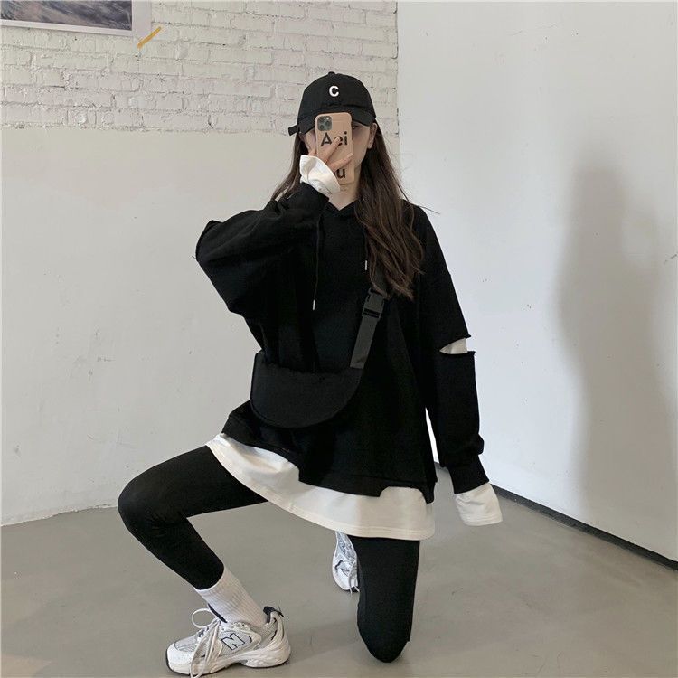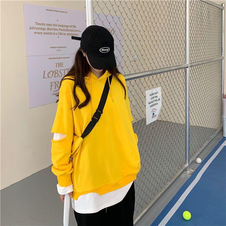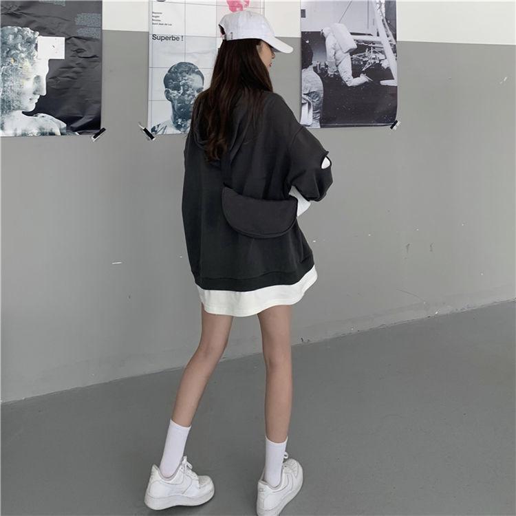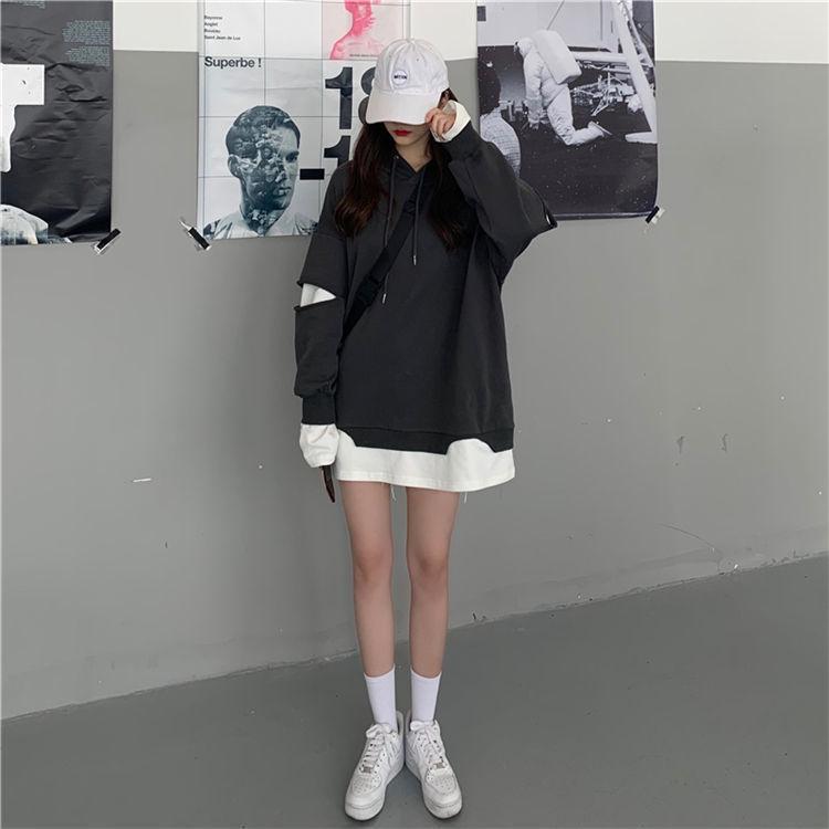 Shandali Di Otoño Nuevo Sudadera Mujer Tendencia ins Con Capucha Estudiante Estilo Coreano Holgado Estilo Lazy Chaqueta Patchwork Falso