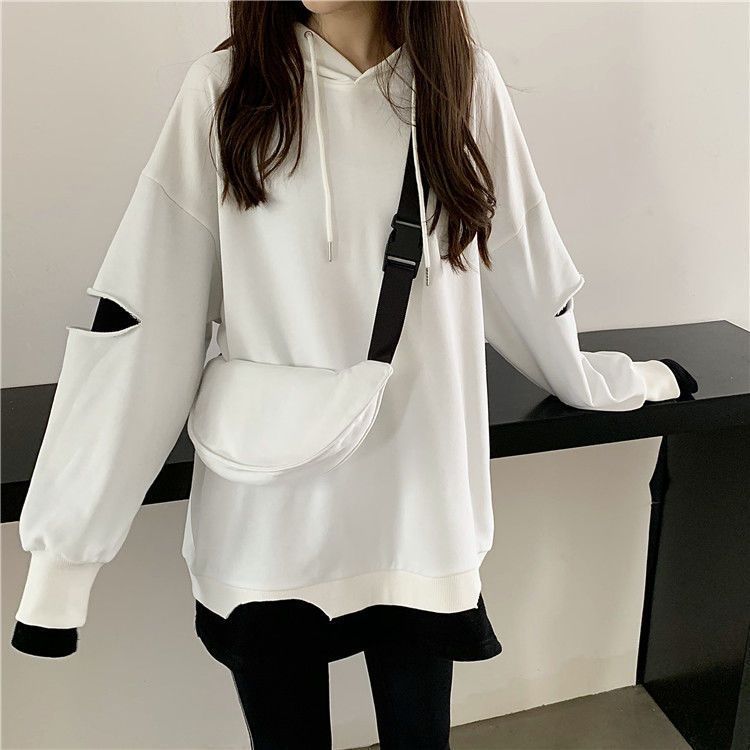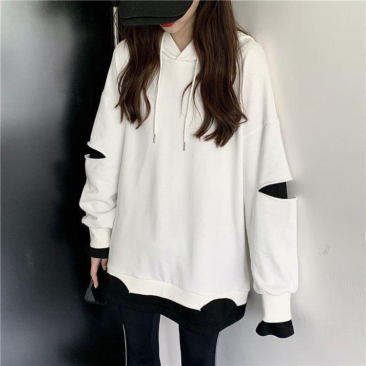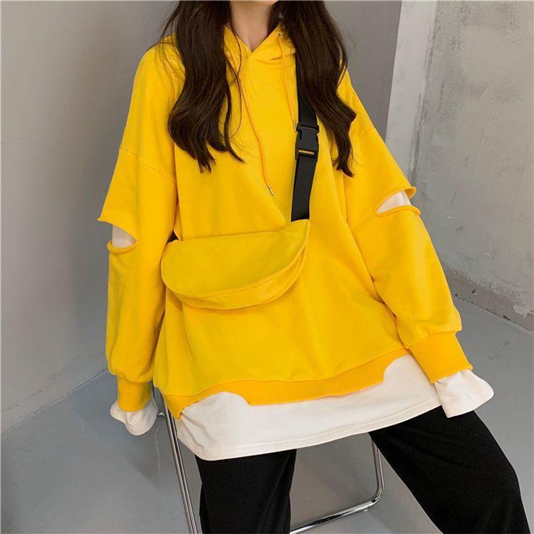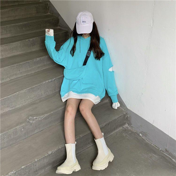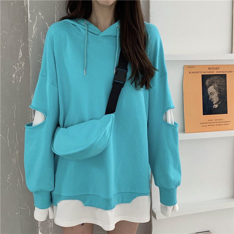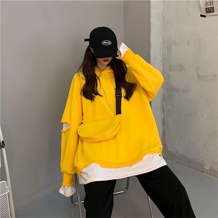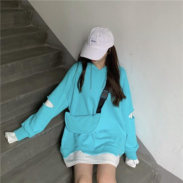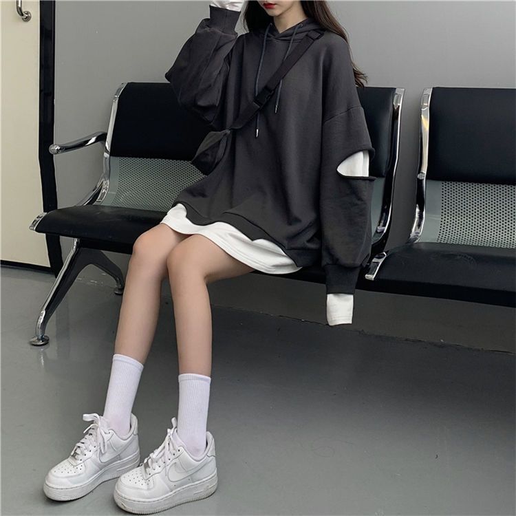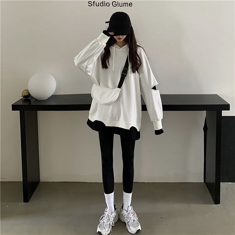 Shandali Di Otoño Nuevo Sudadera Mujer Tendencia ins Con Capucha Estudiante Estilo Coreano Holgado Estilo Lazy Chaqueta Patchwork Falso