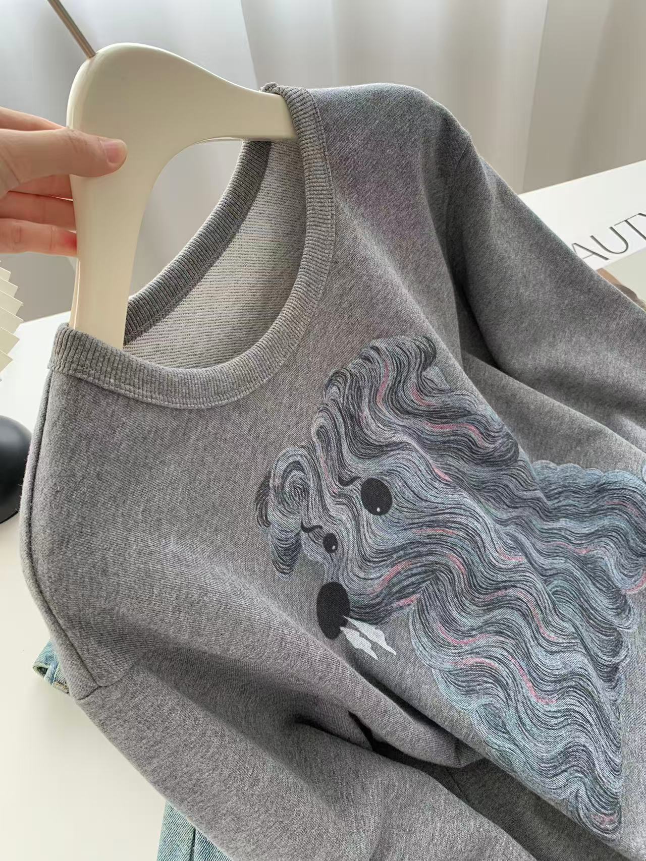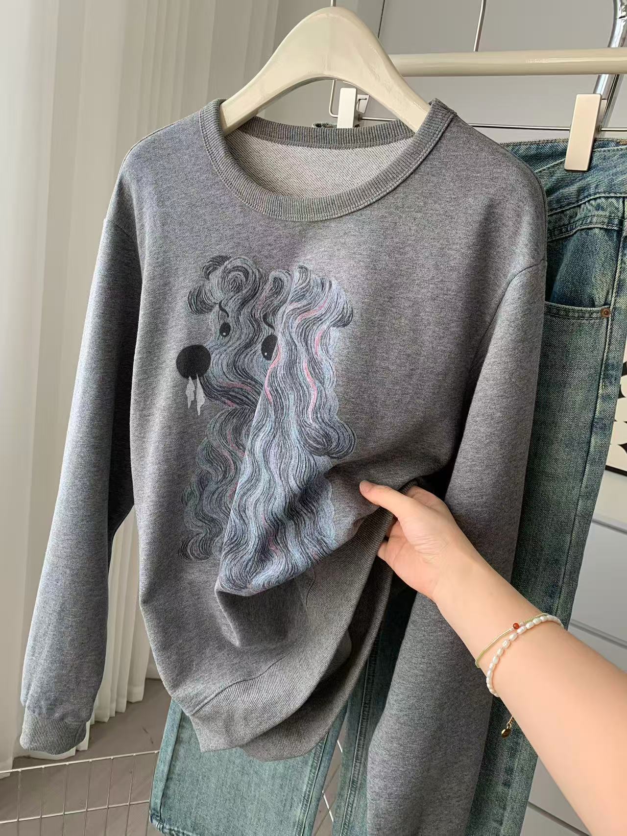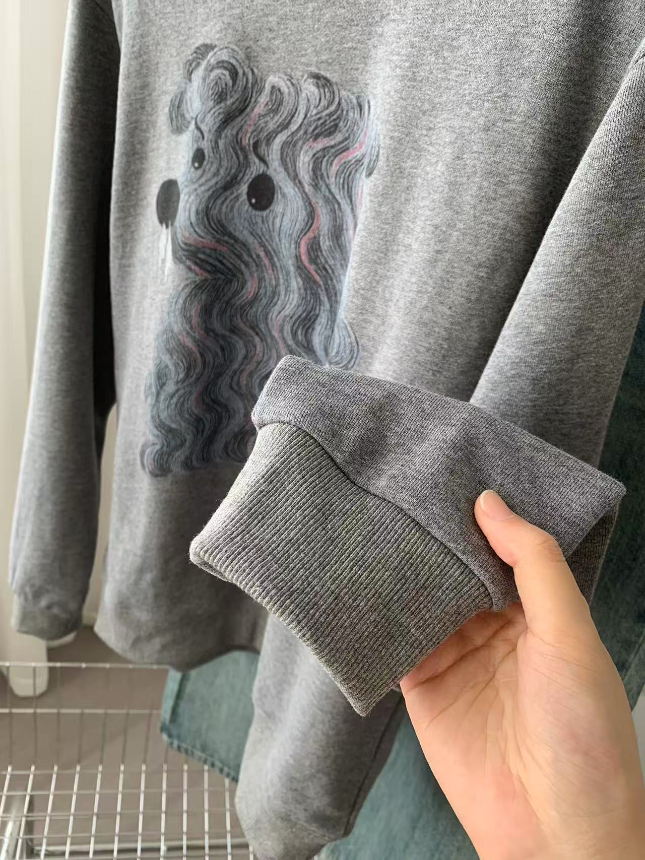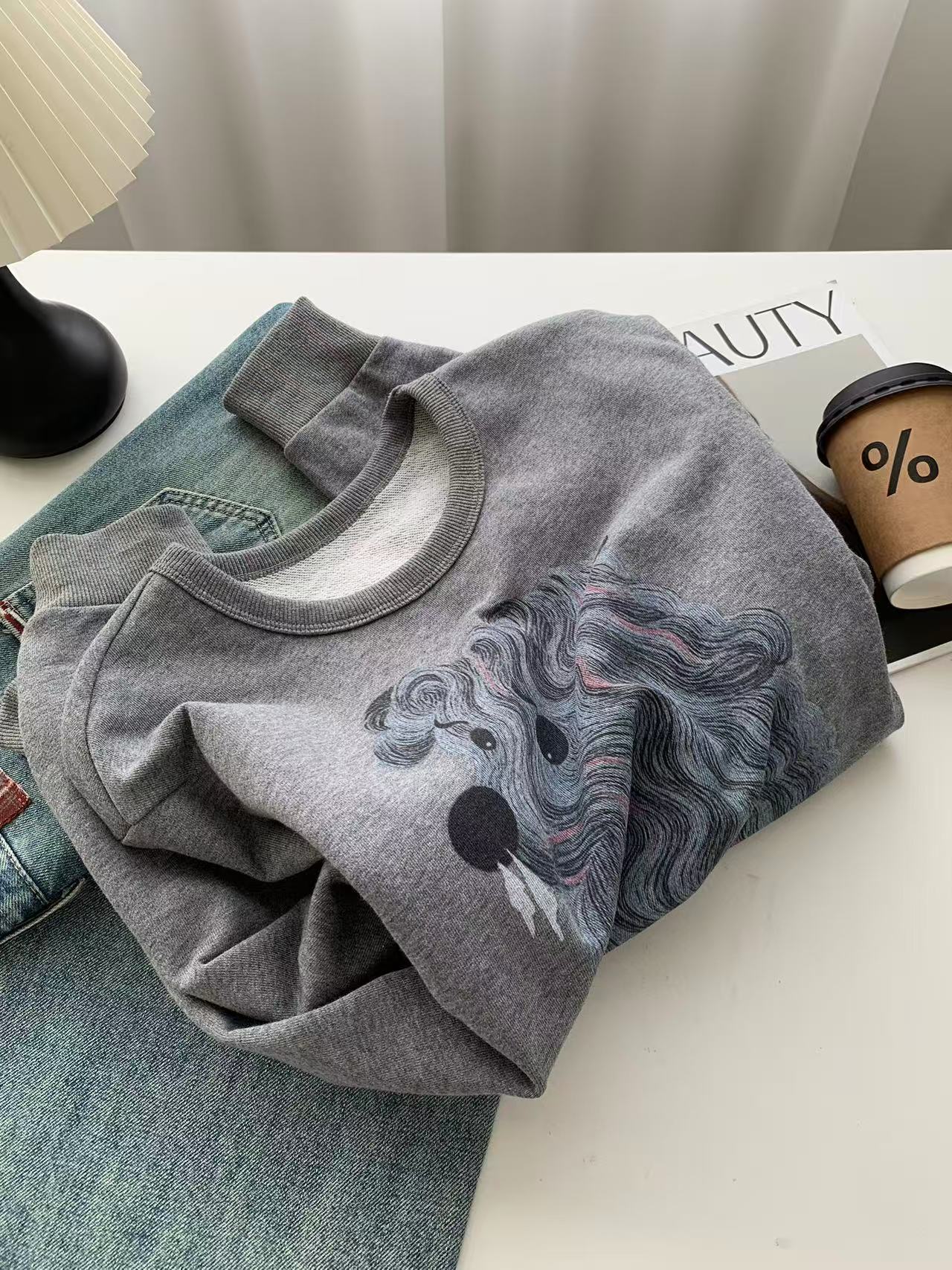 Sudadera de felpa de algodón de alto peso con estampado de dibujos animados lindo, cuello redondo, jersey, para mujer, otoño, nuevo estilo japonés, top holgado