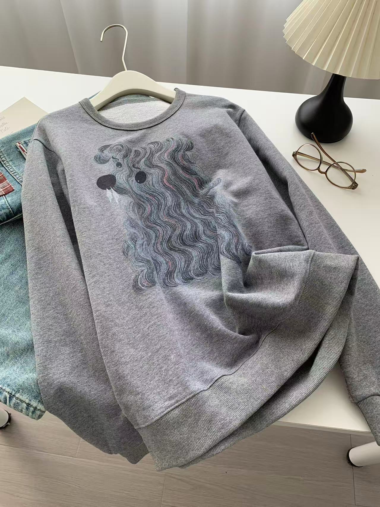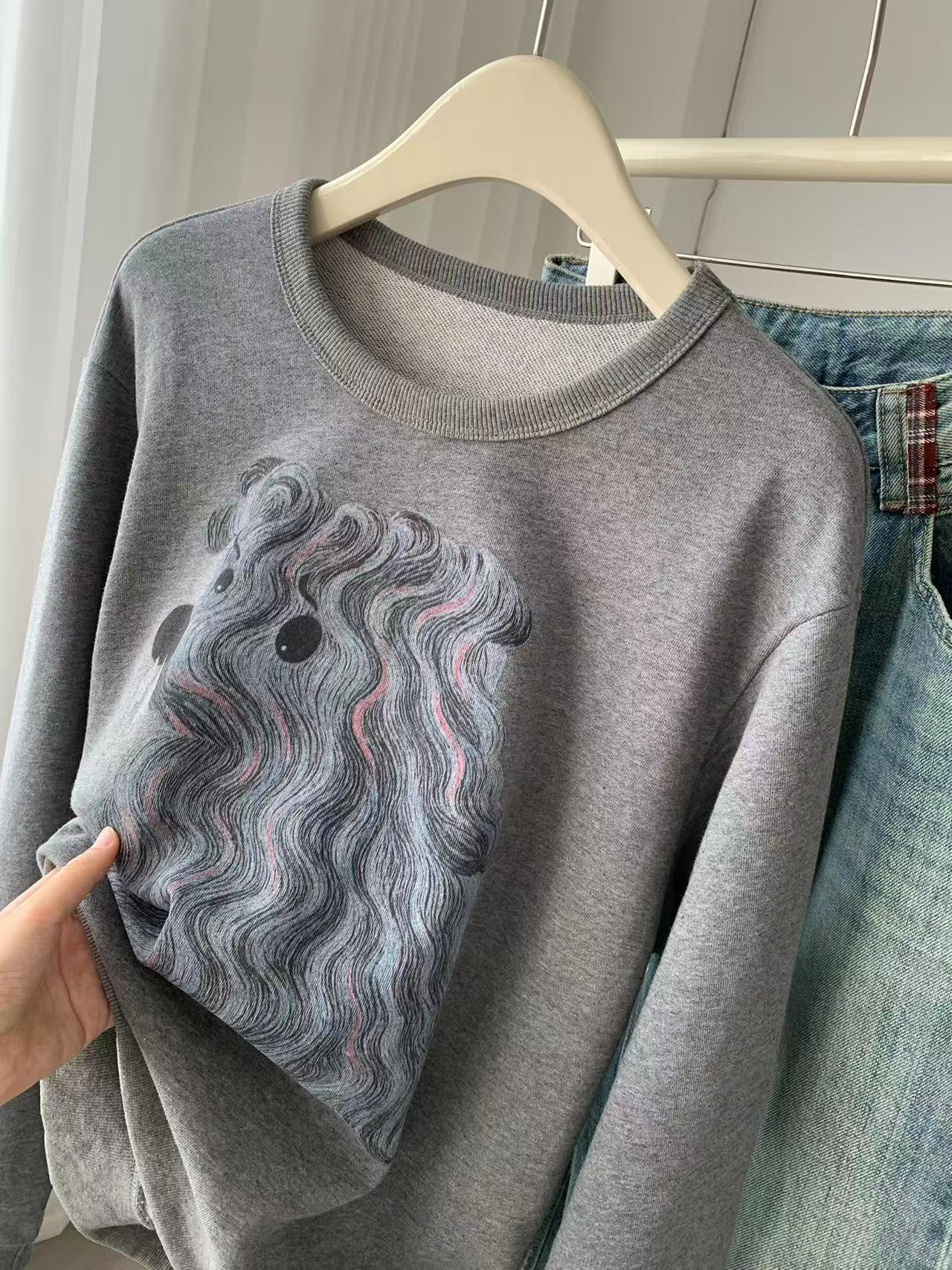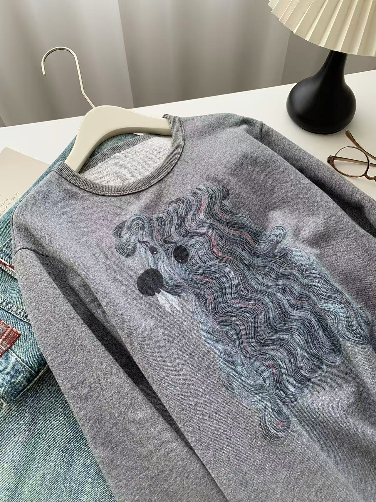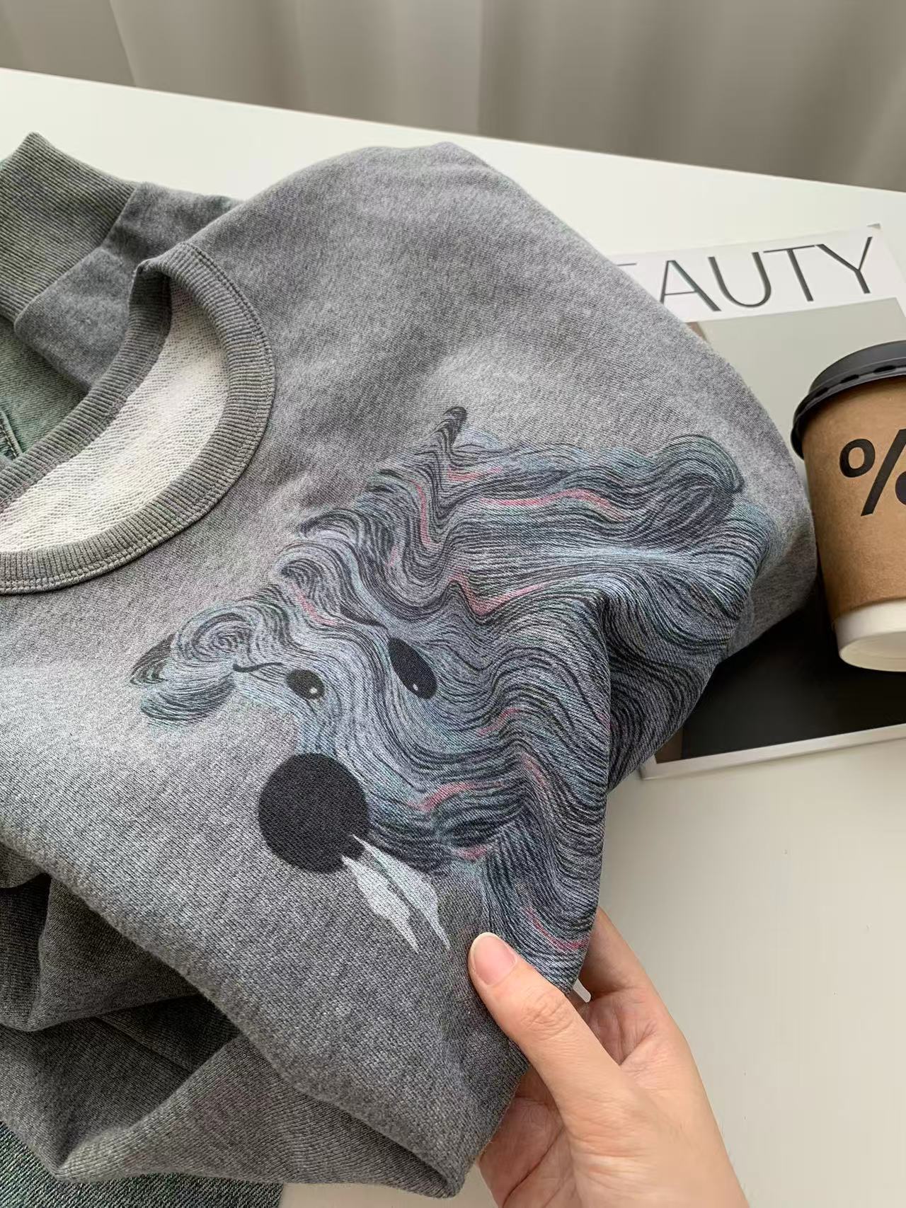 Sudadera de felpa de algodón de alto peso con estampado de dibujos animados lindo, cuello redondo, jersey, para mujer, otoño, nuevo estilo japonés, top holgado
