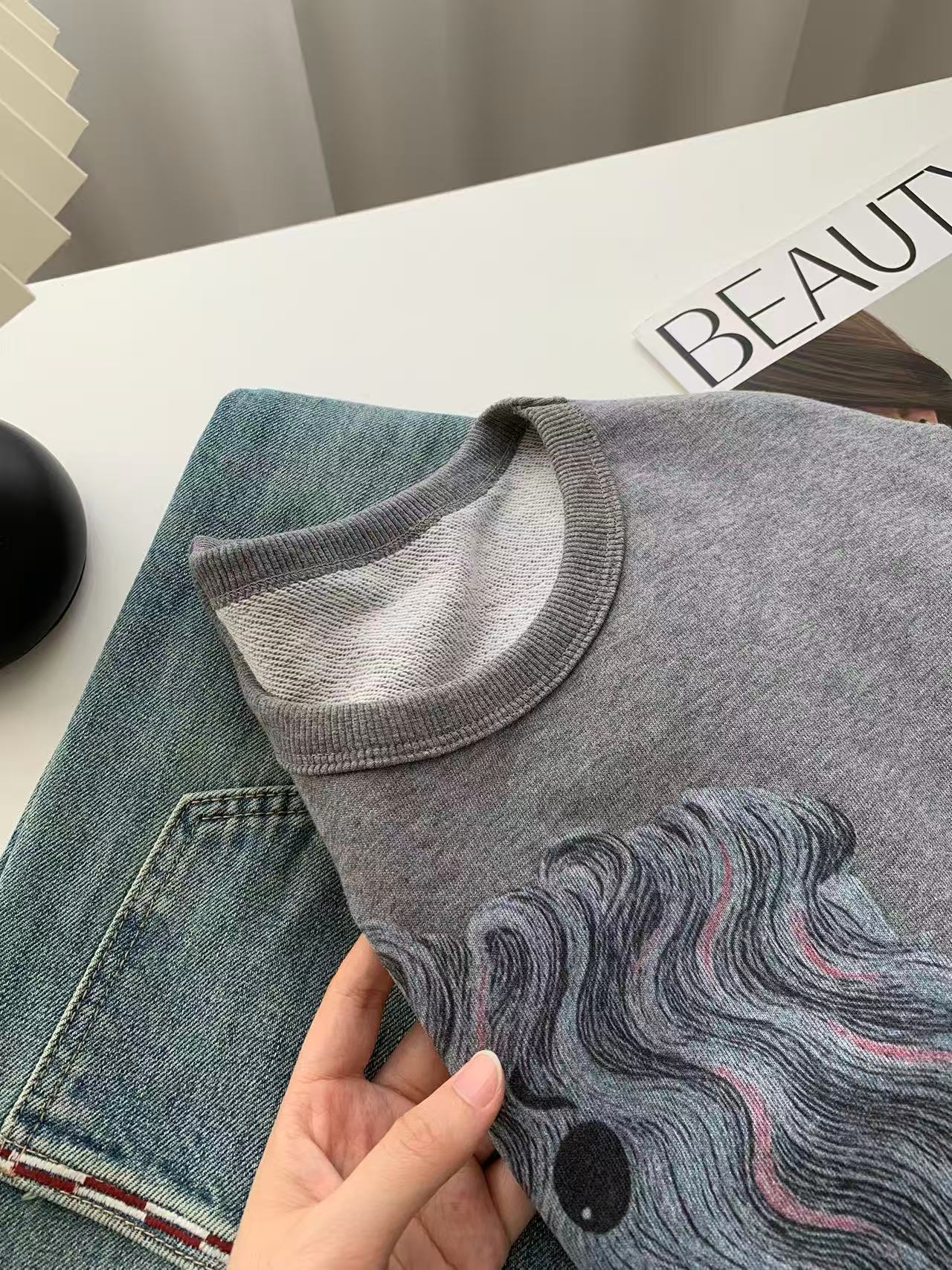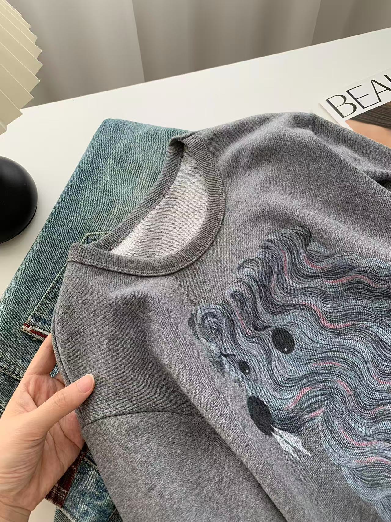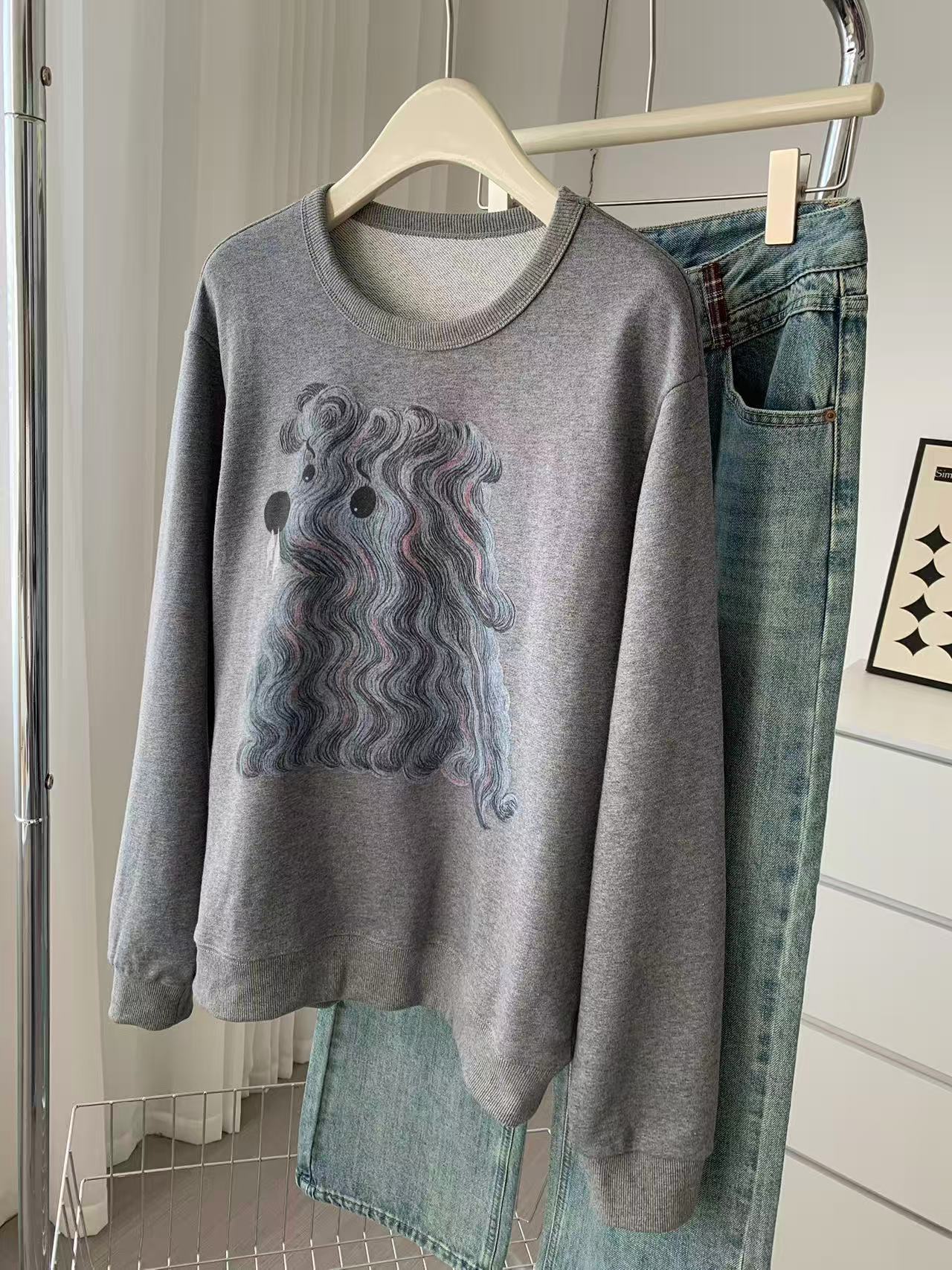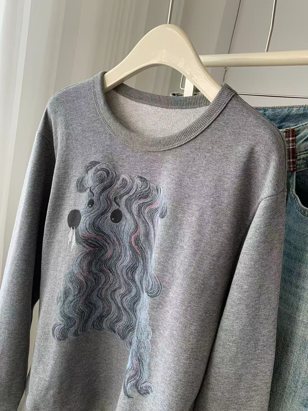 Sudadera de felpa de algodón de alto peso con estampado de dibujos animados lindo, cuello redondo, jersey, para mujer, otoño, nuevo estilo japonés, top holgado