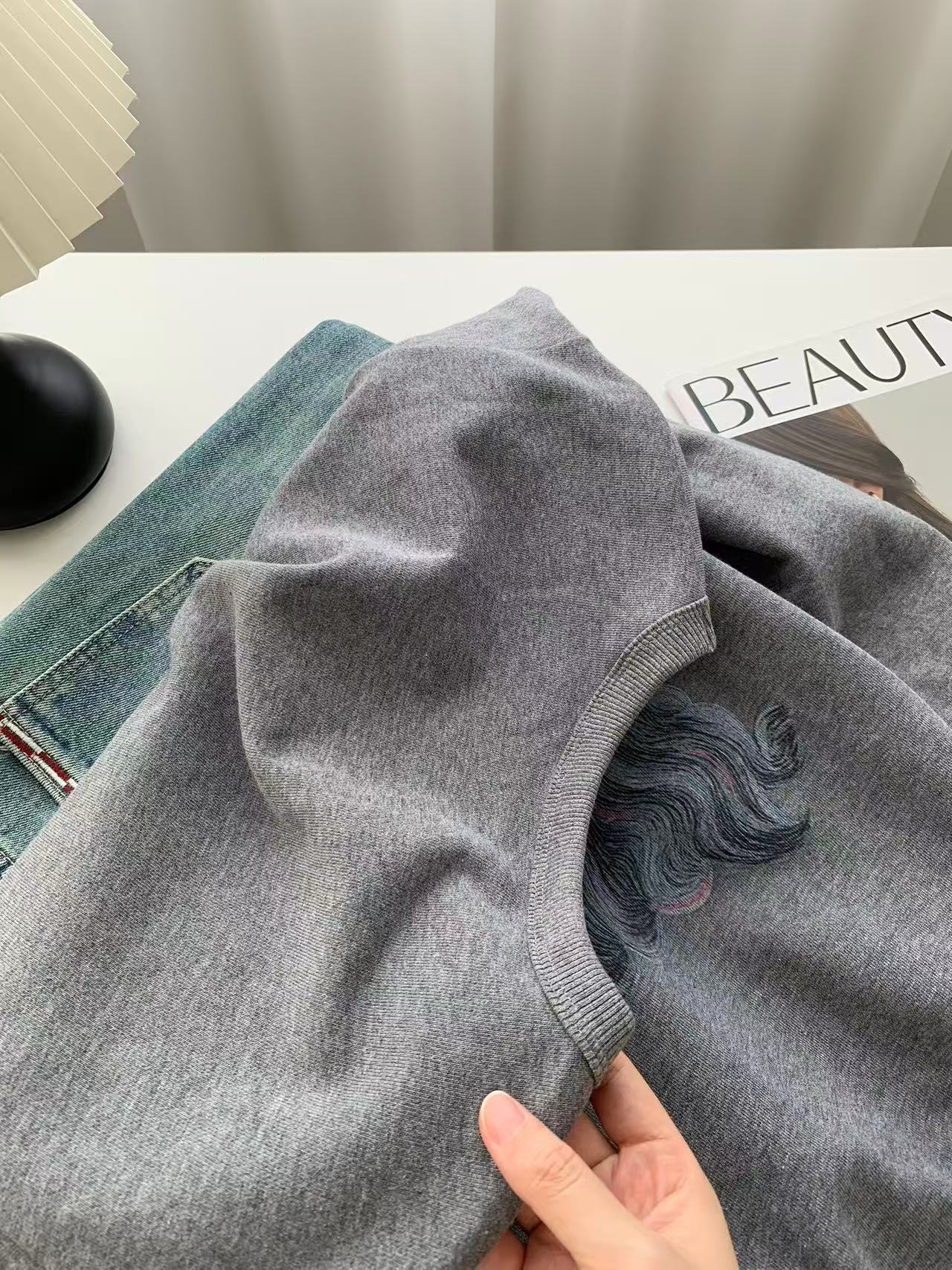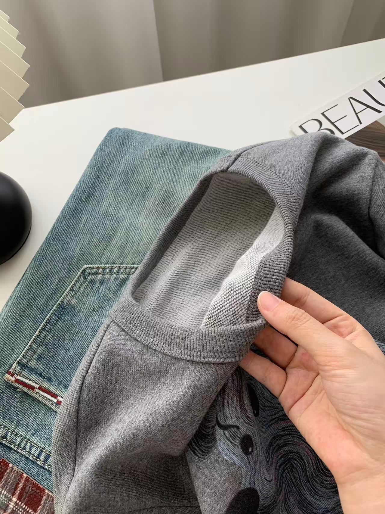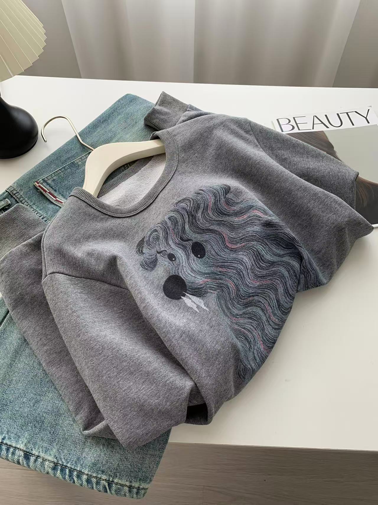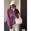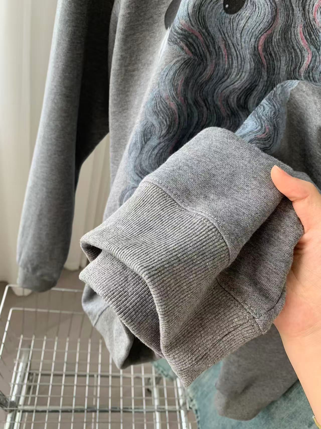 Sudadera de felpa de algodón de alto peso con estampado de dibujos animados lindo, cuello redondo, jersey, para mujer, otoño, nuevo estilo japonés, top holgado