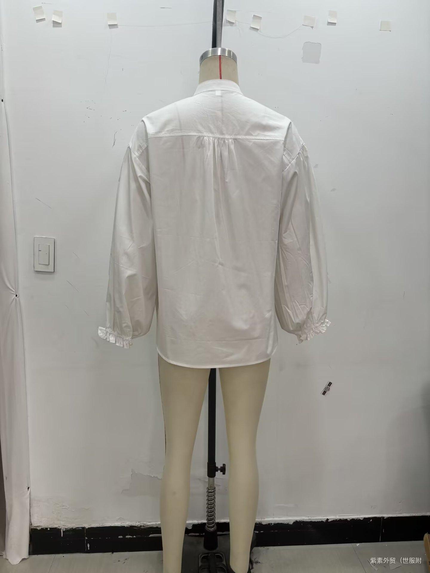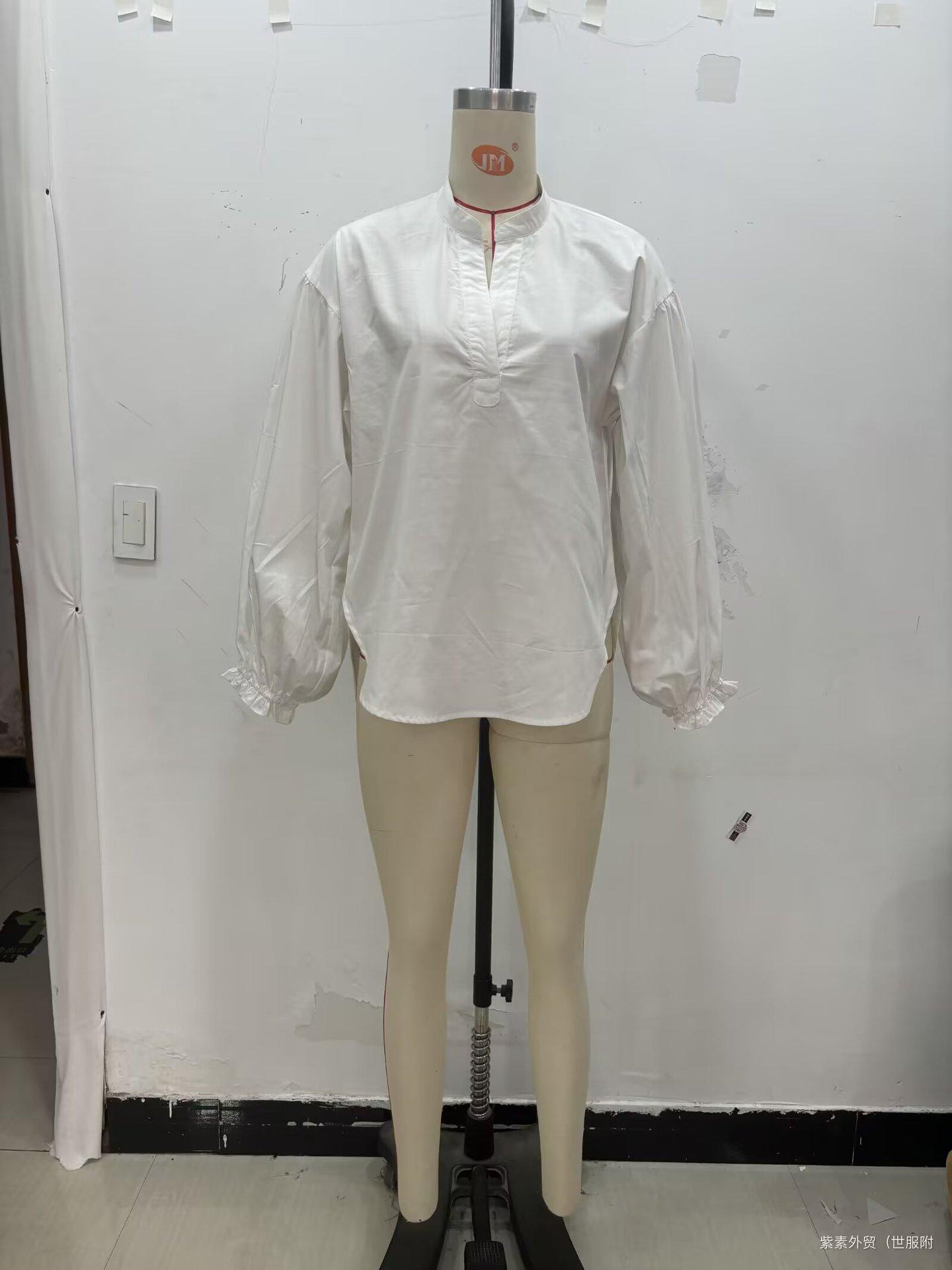 Ropa Europea y Americana Transfronteriza Aliexpress Popular Cuello en V Manga Abullonada Camisa Tops