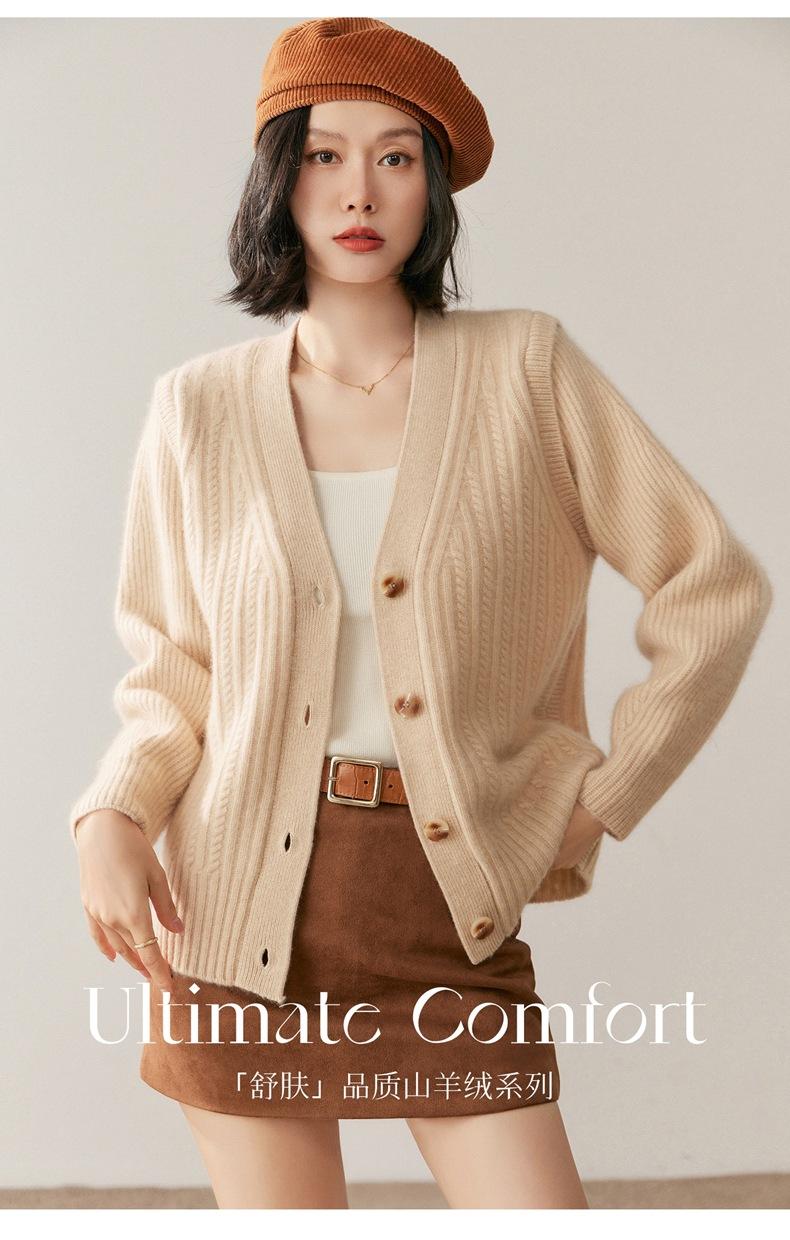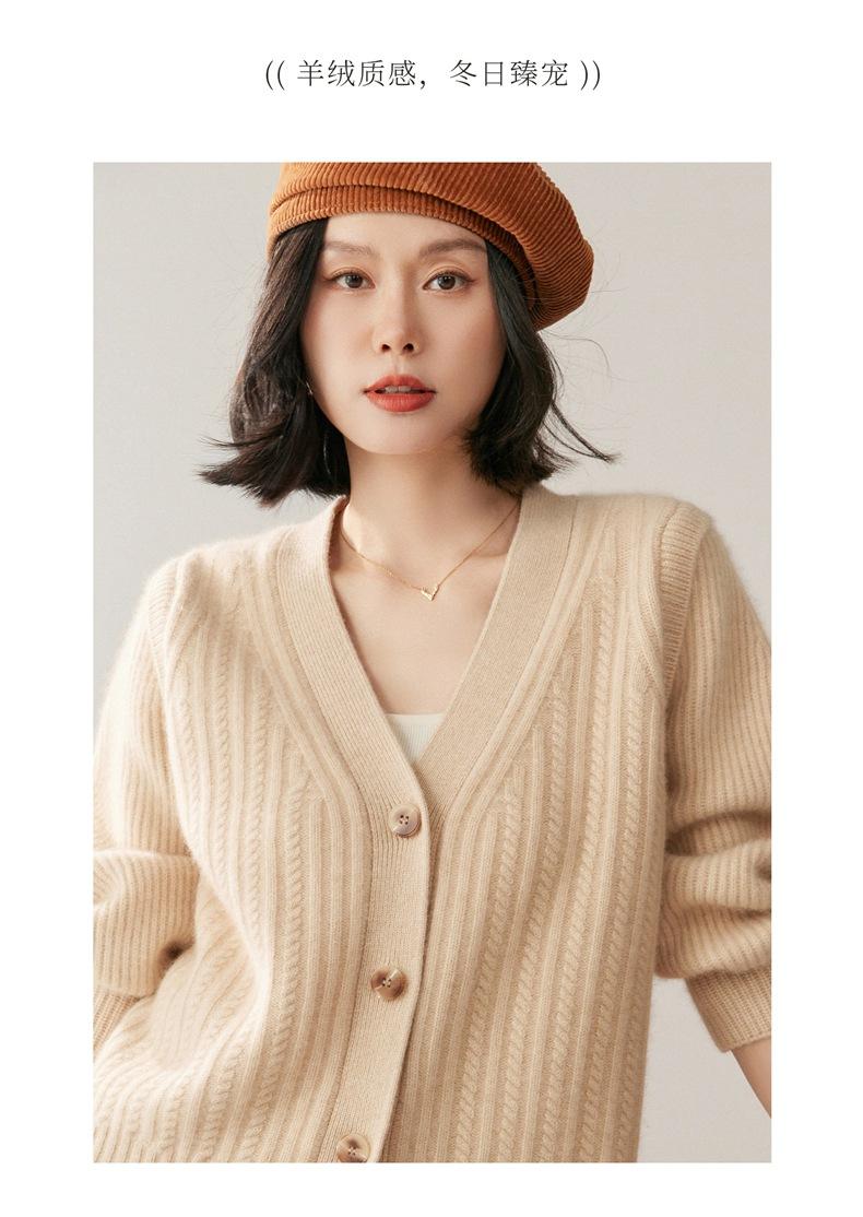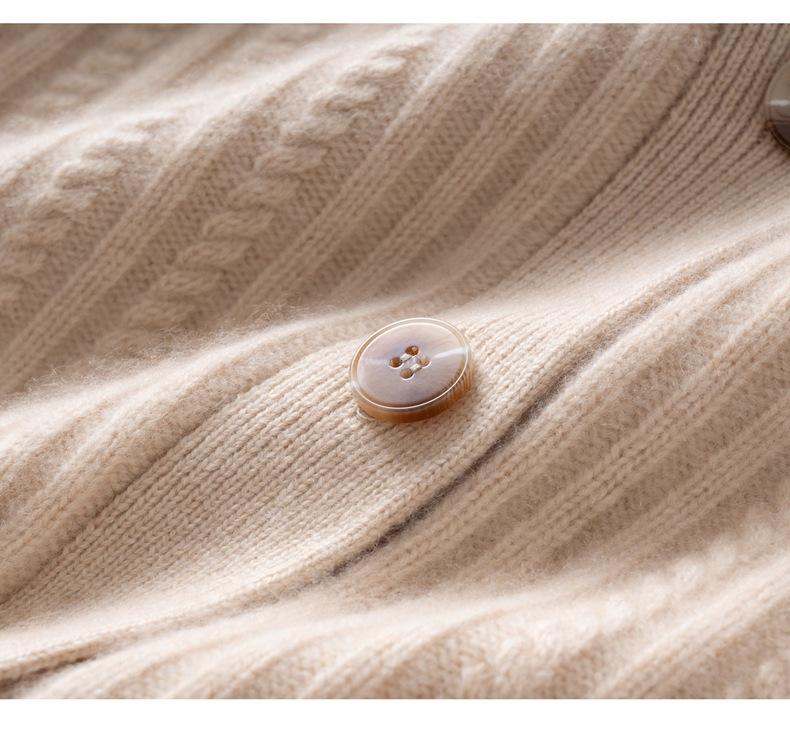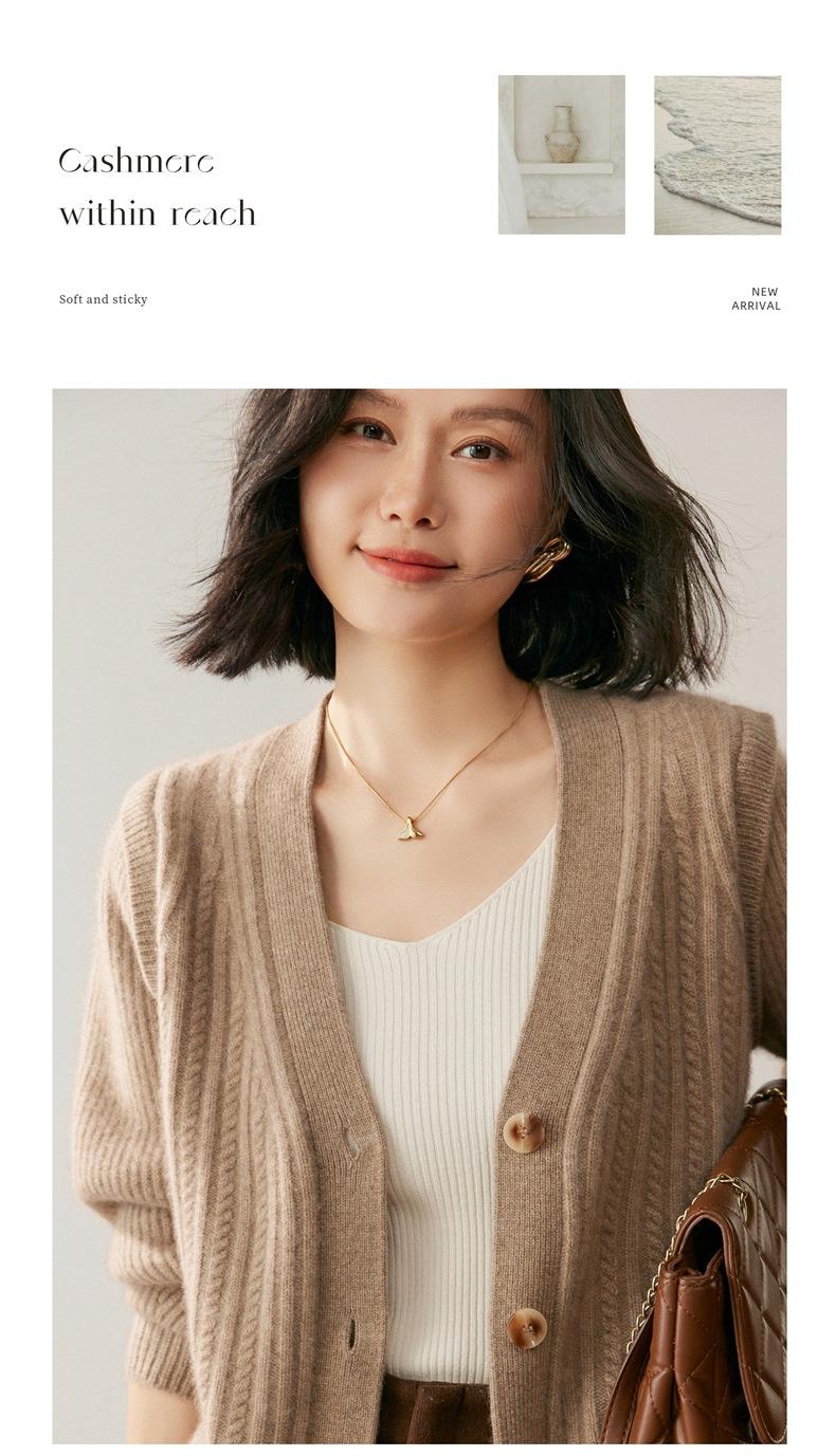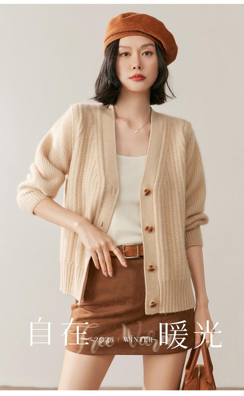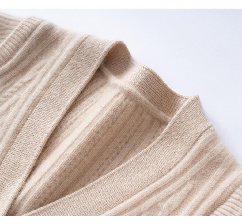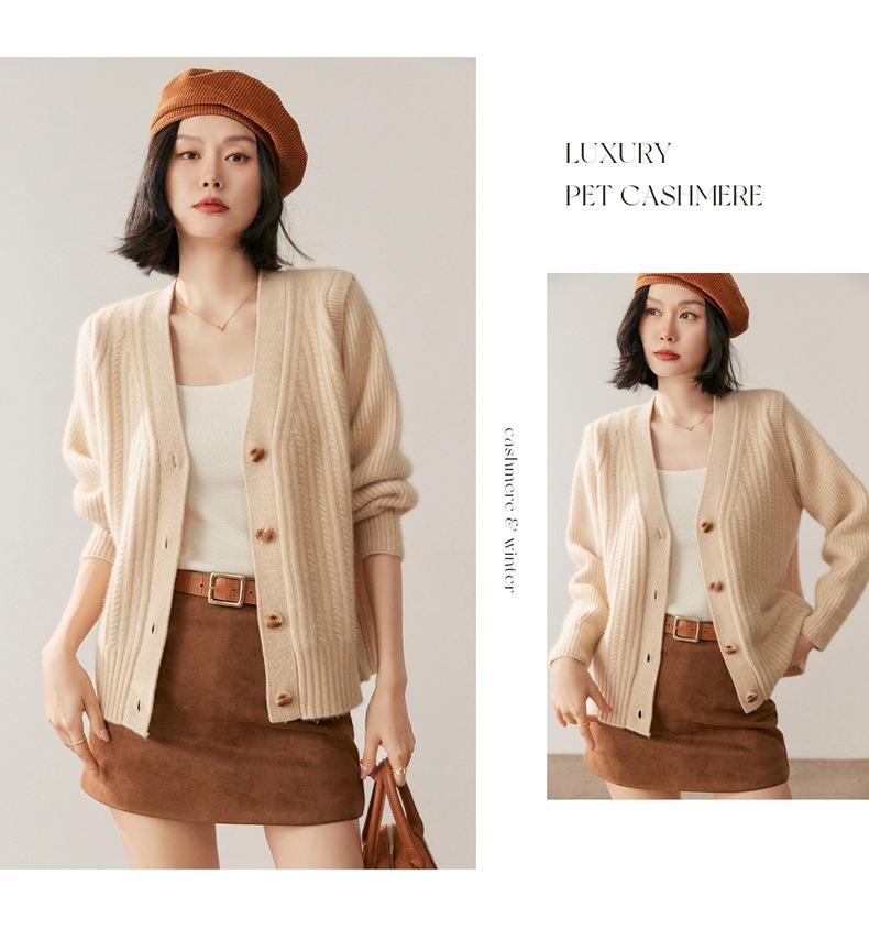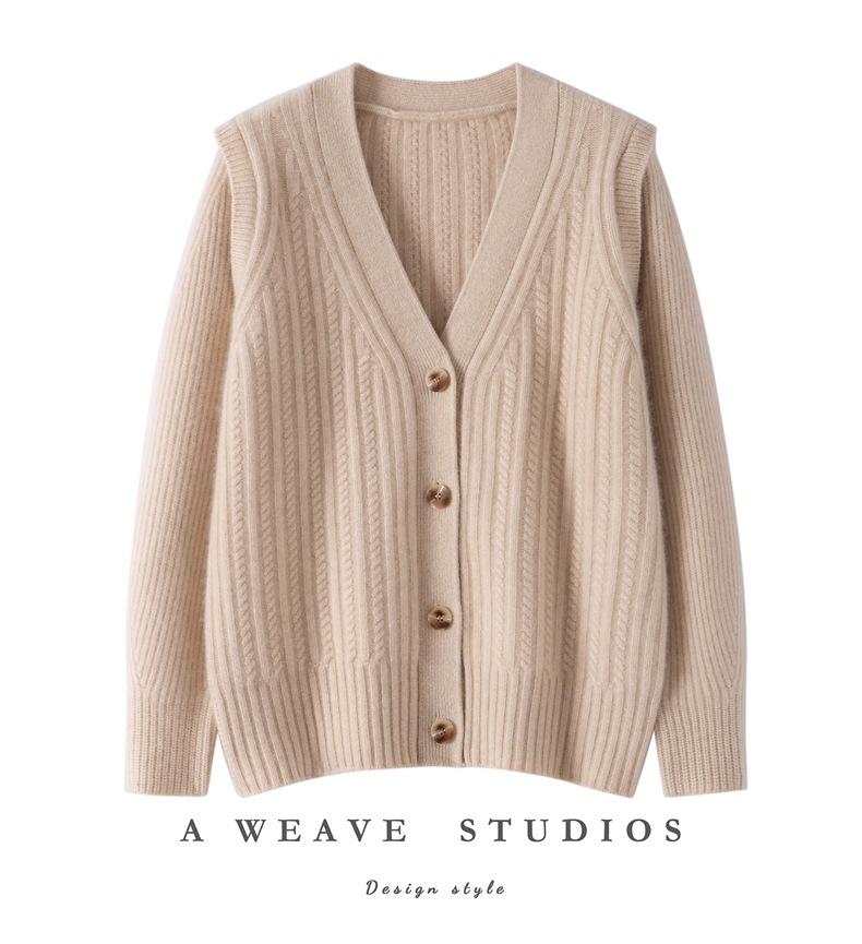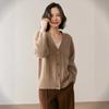 Cárdigan de Cachemira para Mujer Otoño/Invierno 2025 Nuevo Cuello en V Tejido Suelto Adelgazante Abrigo Suéter Manga Larga Top Grueso