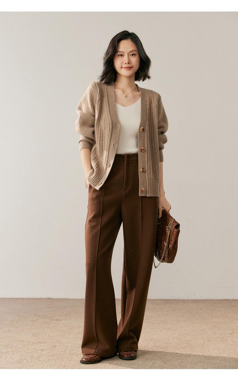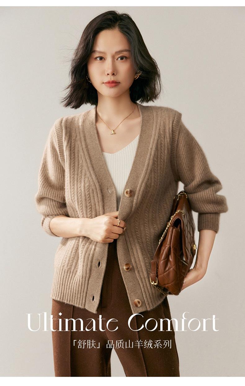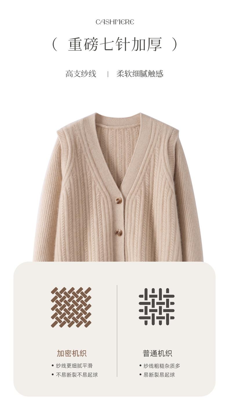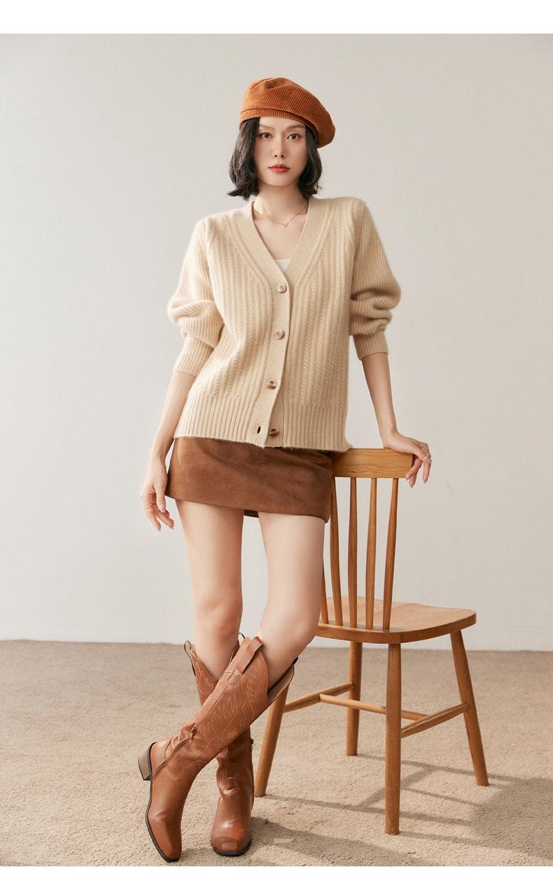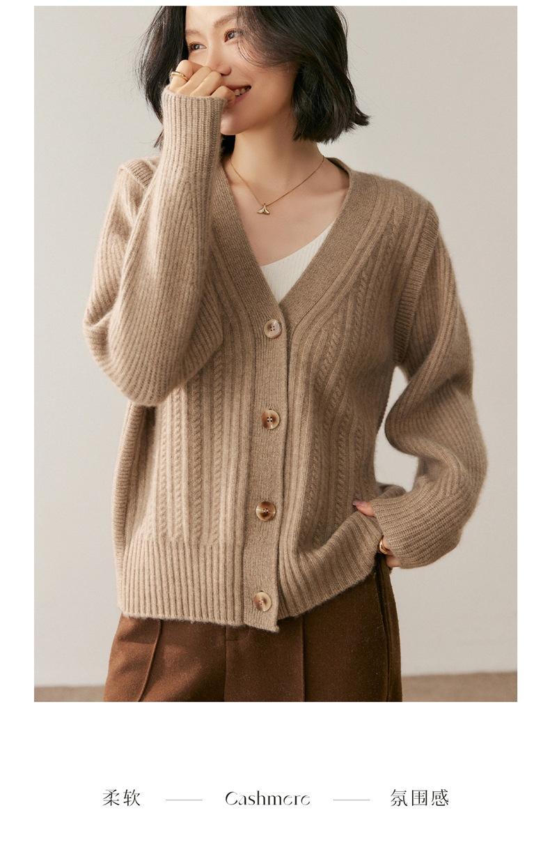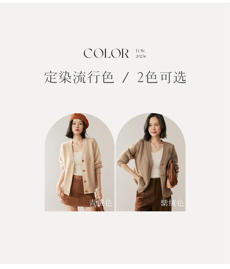 Cárdigan de Cachemira para Mujer Otoño/Invierno 2025 Nuevo Cuello en V Tejido Suelto Adelgazante Abrigo Suéter Manga Larga Top Grueso