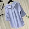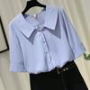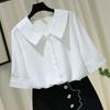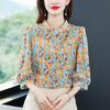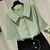 2023 Primavera/Verano Nueva Camisa de Chifón de Color Sólido para Mujer Manga Siete Estilo Coreano Holgada Cuello en V Blusa Top Verde Matcha