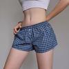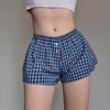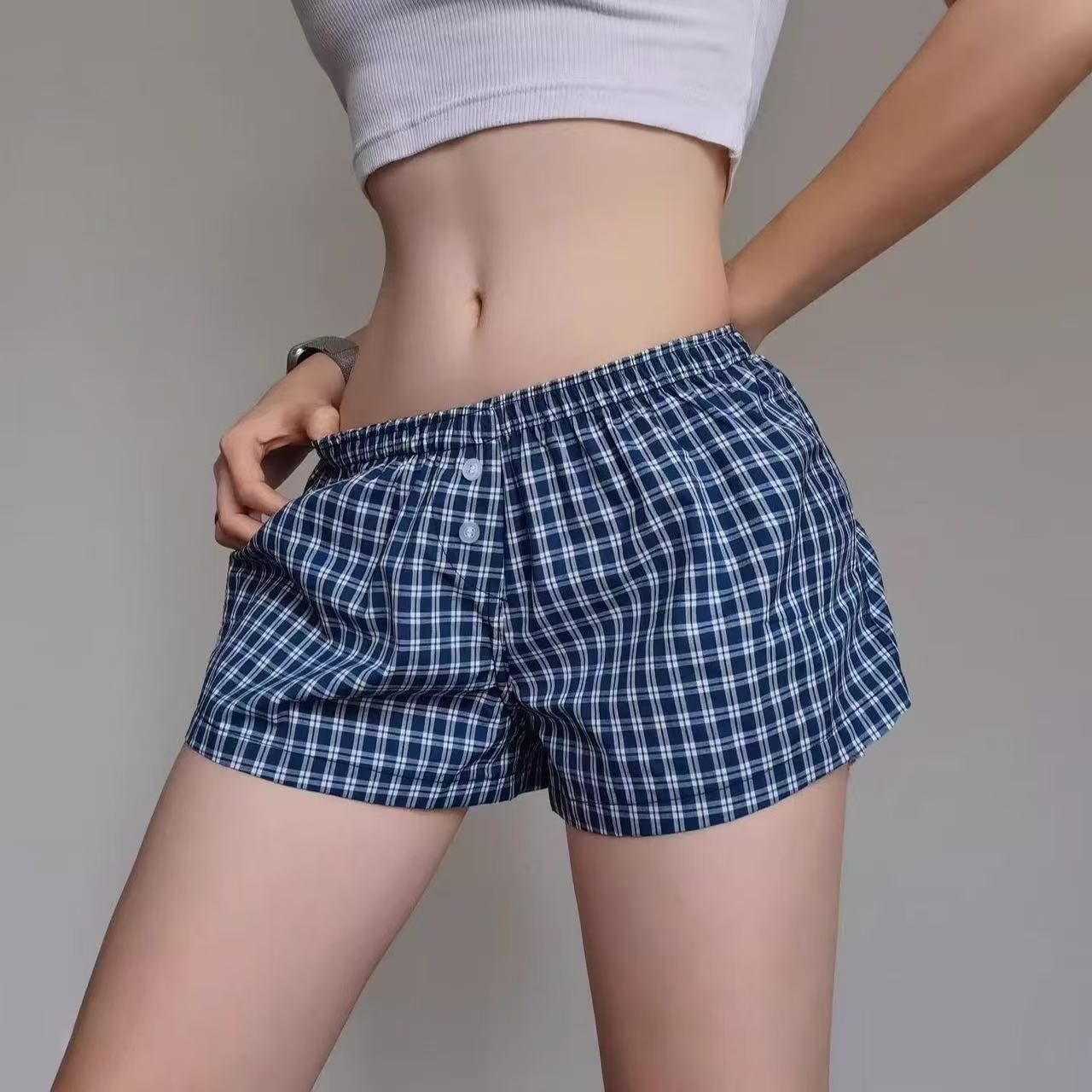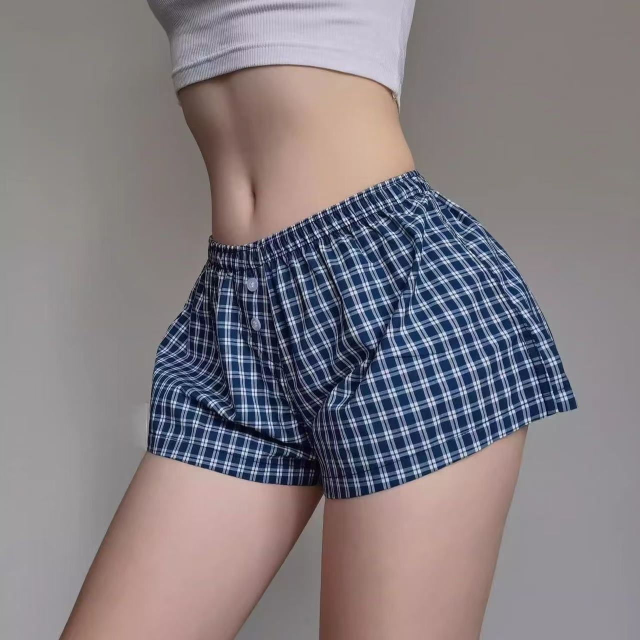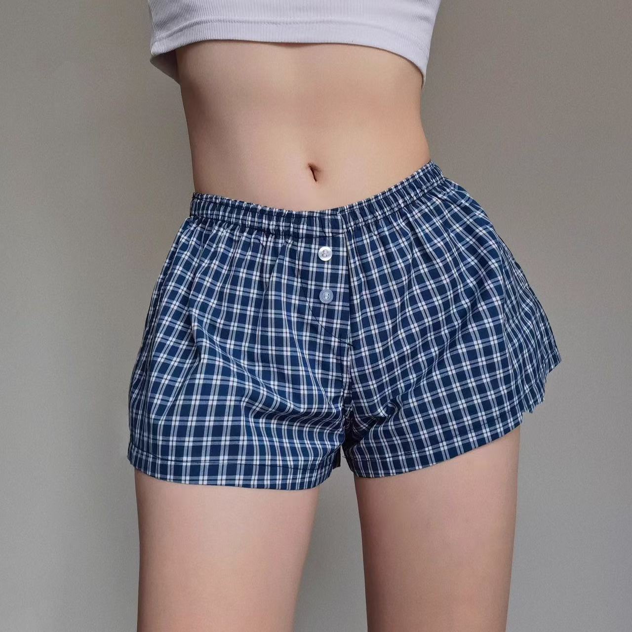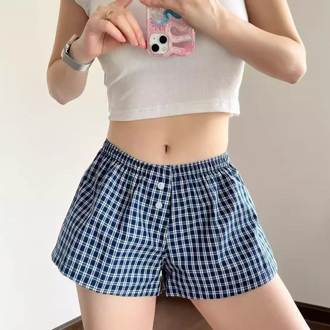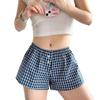 Pantalones Cortos Recomendados Bm a Cuadros Estilo Americano de Pierna Ancha para Mujer, Playa Elástico en la Cintura Botón Casual para Casa Pantalones Cortos Hot Pants