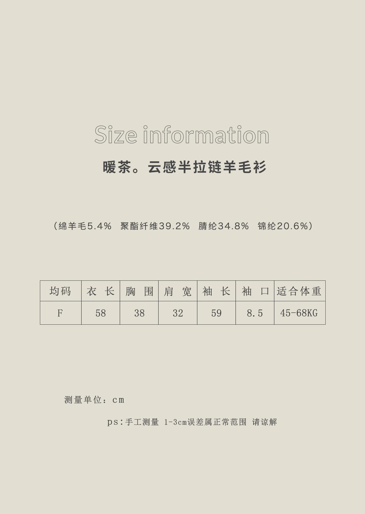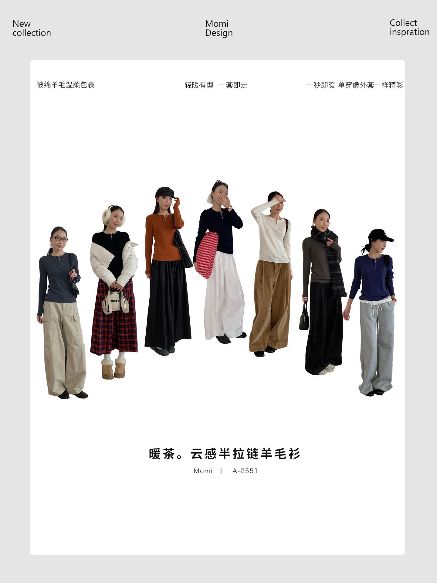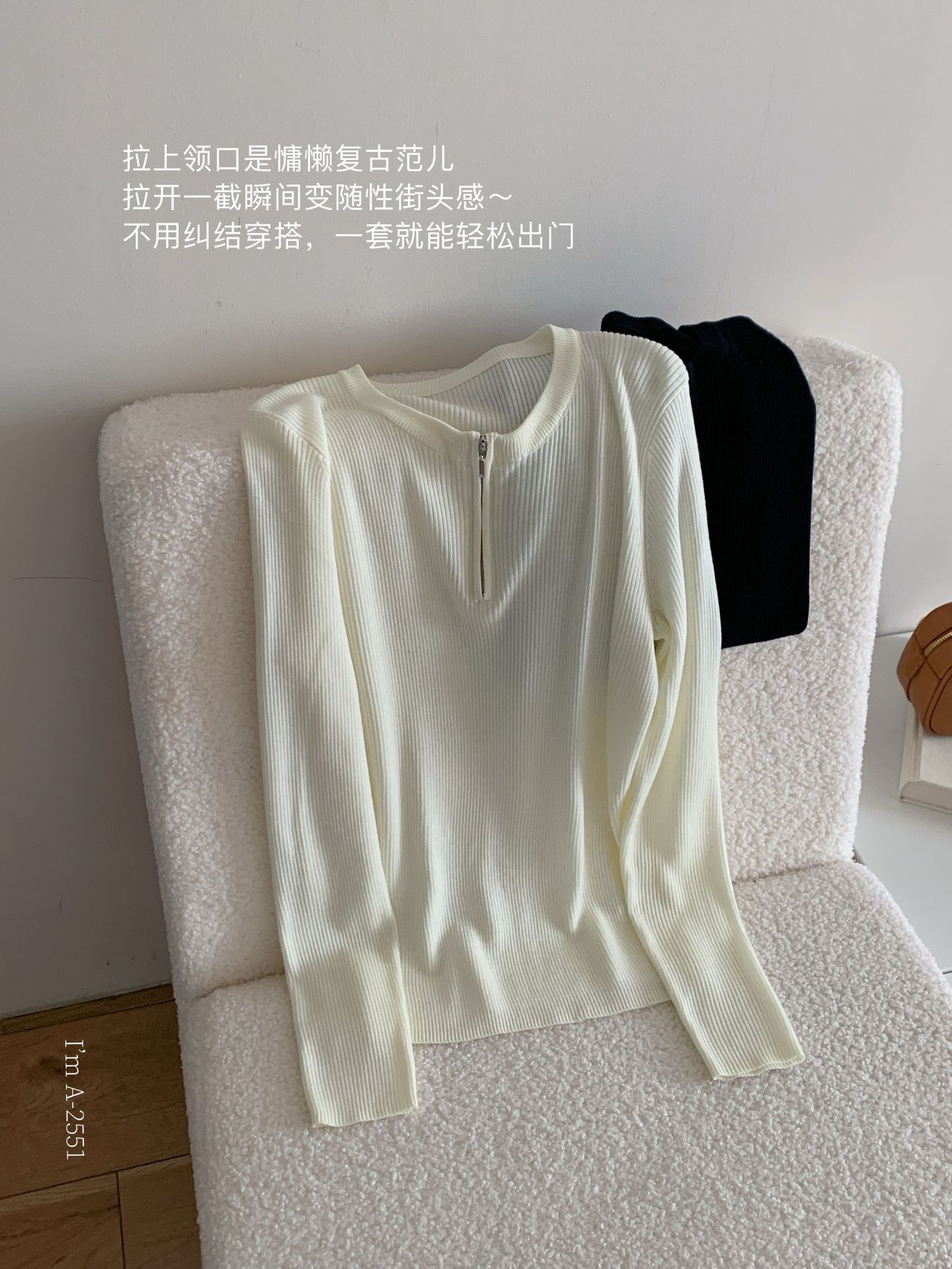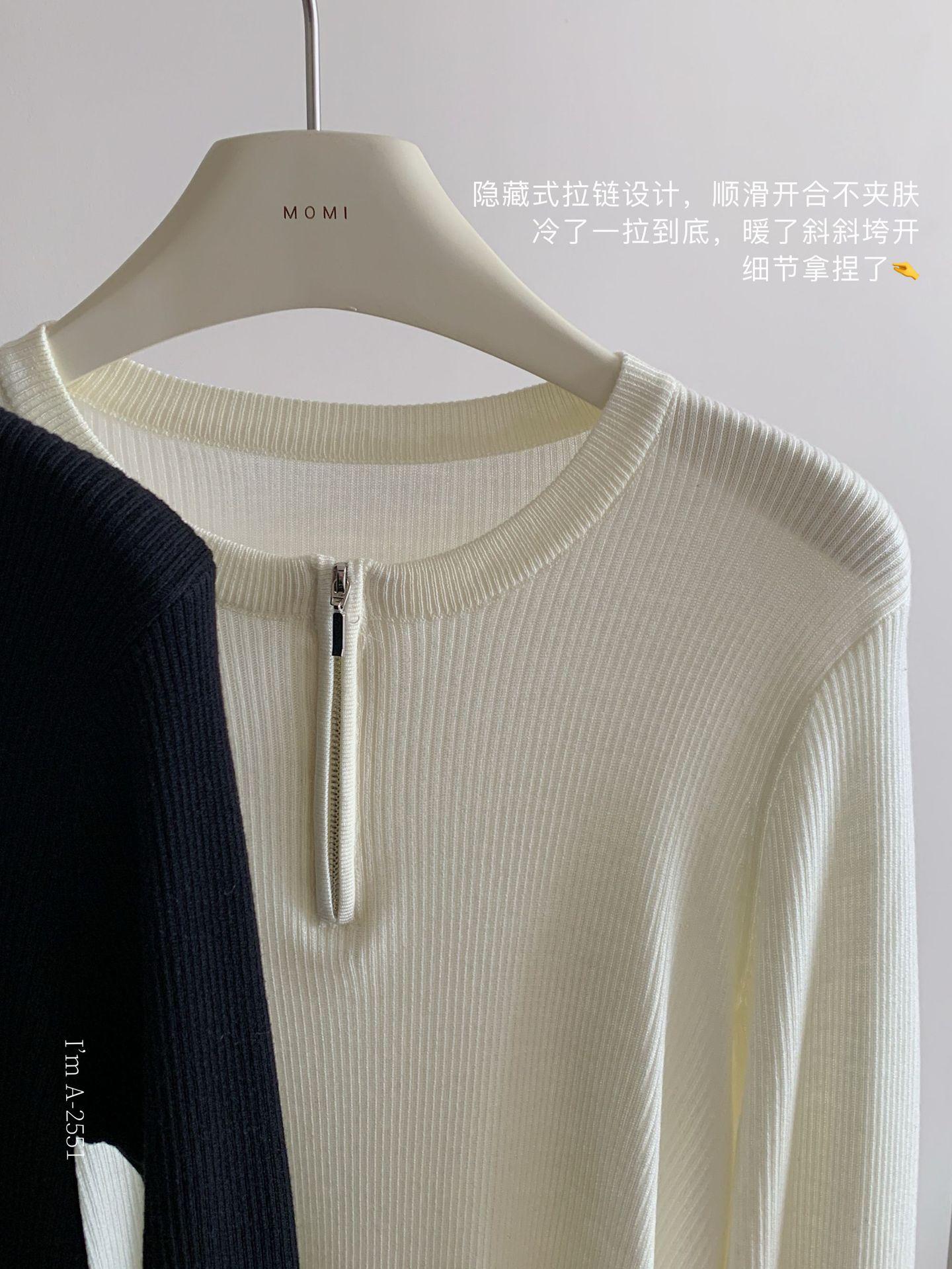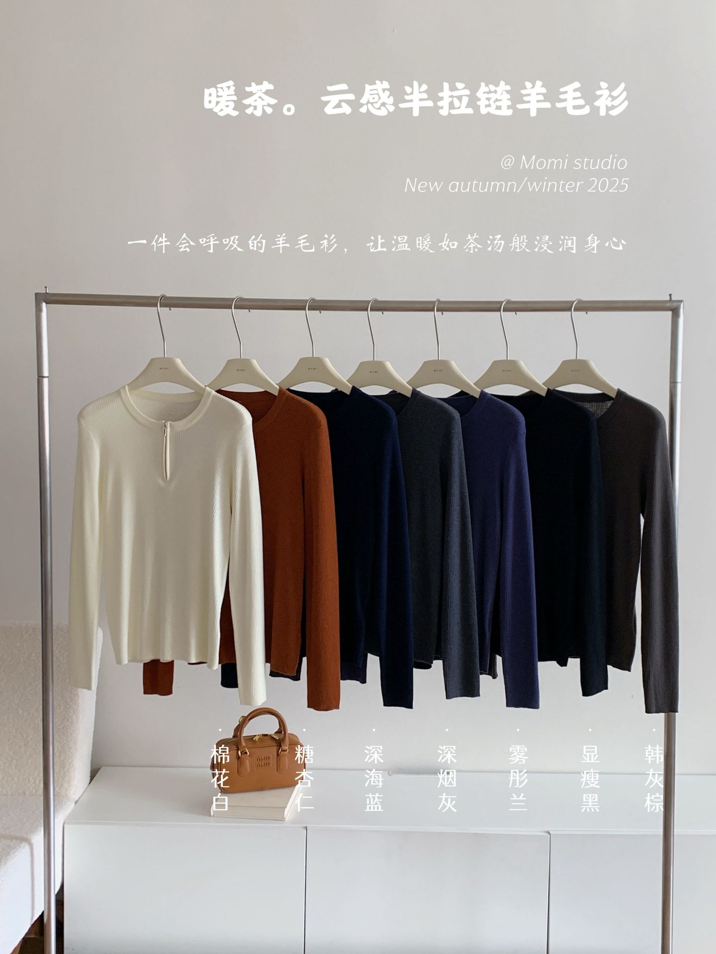 Cálido Tacto Nube de Té Punto de Lana con Media Cremallera para Mujer Otoño/Invierno Nuevo de Alta Gama Cuello Redondo Capa Interior Manga Larga Top Casual