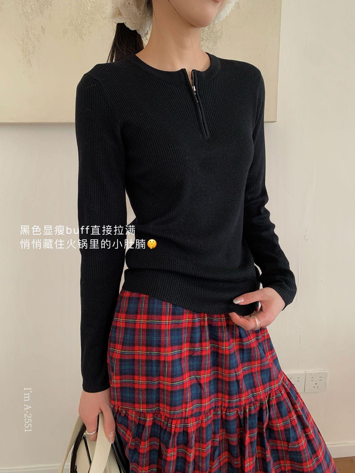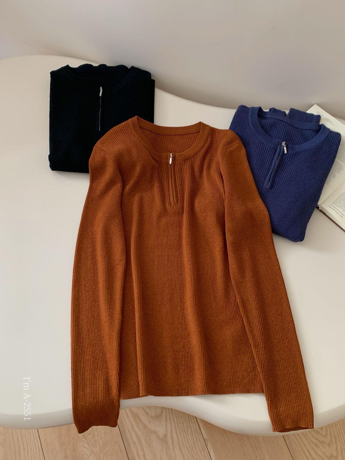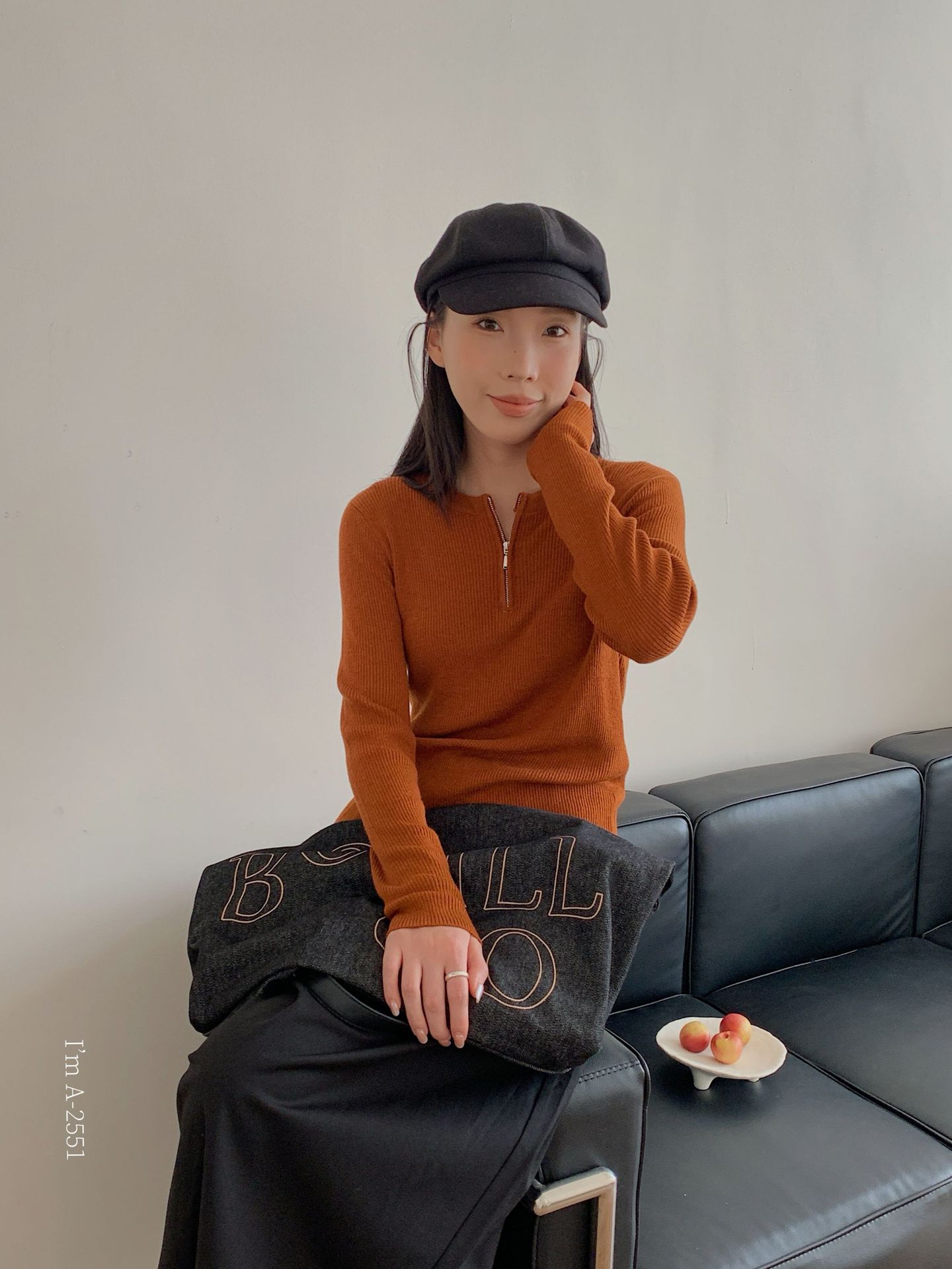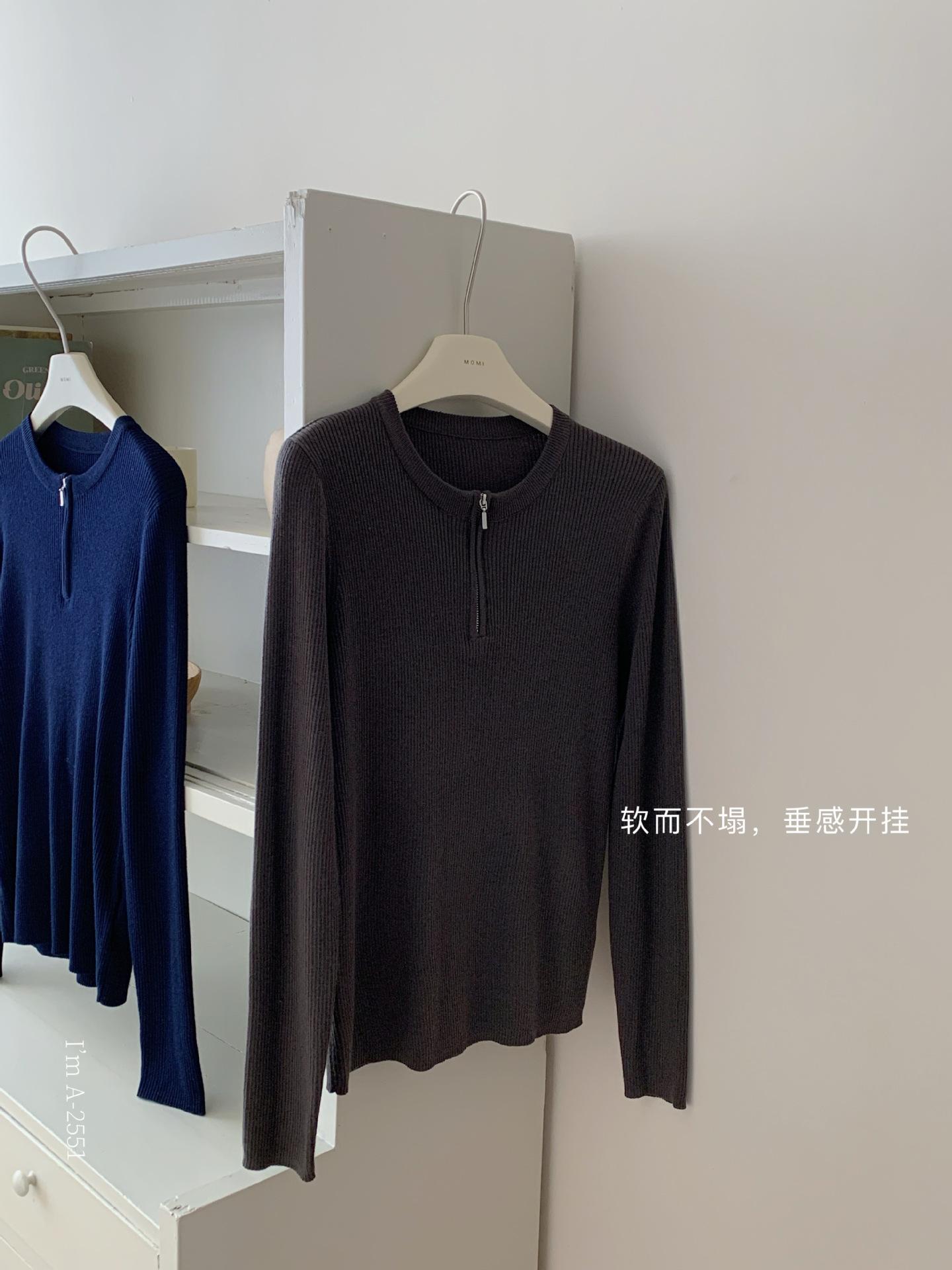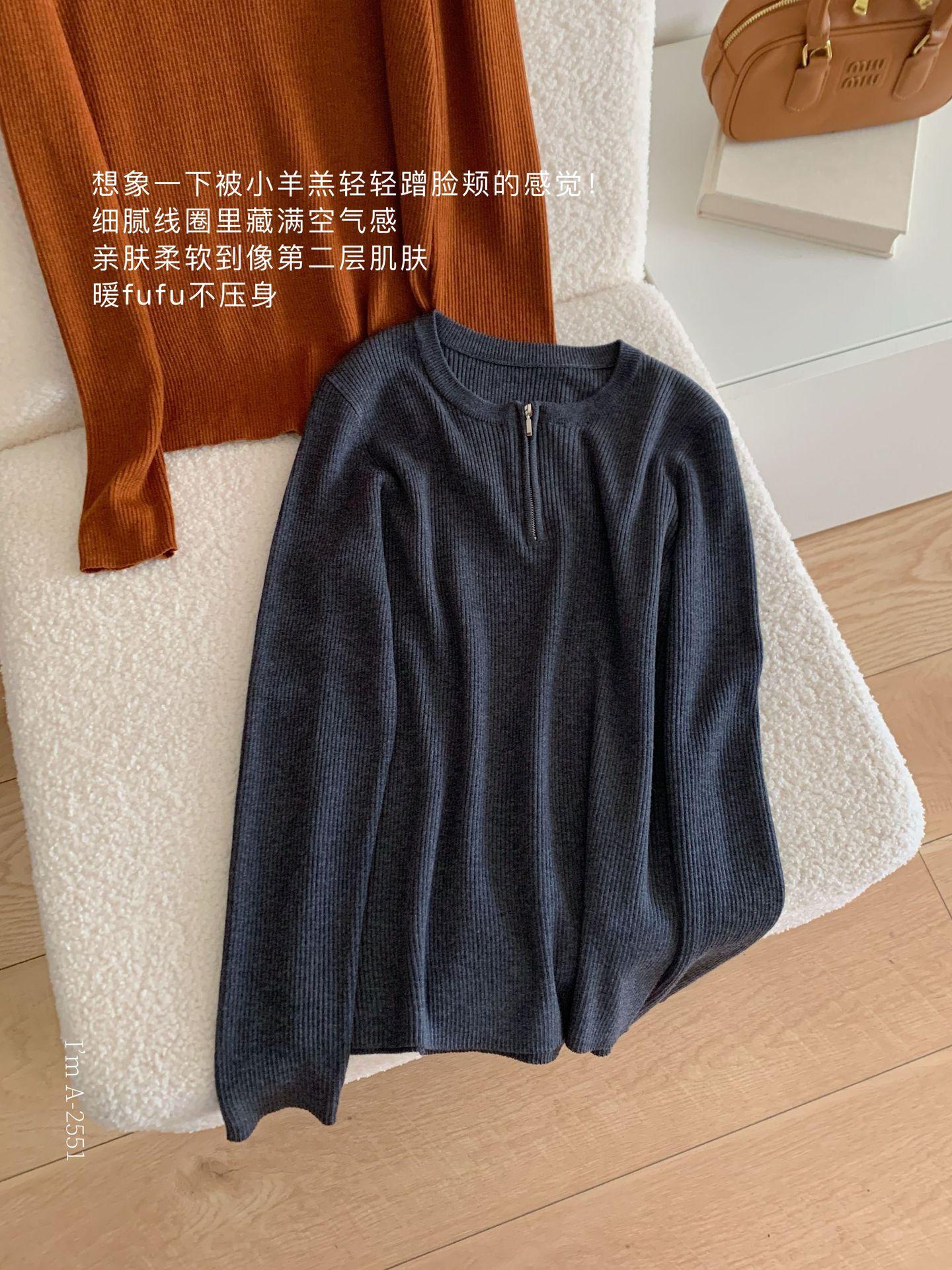 Cálido Tacto Nube de Té Punto de Lana con Media Cremallera para Mujer Otoño/Invierno Nuevo de Alta Gama Cuello Redondo Capa Interior Manga Larga Top Casual
