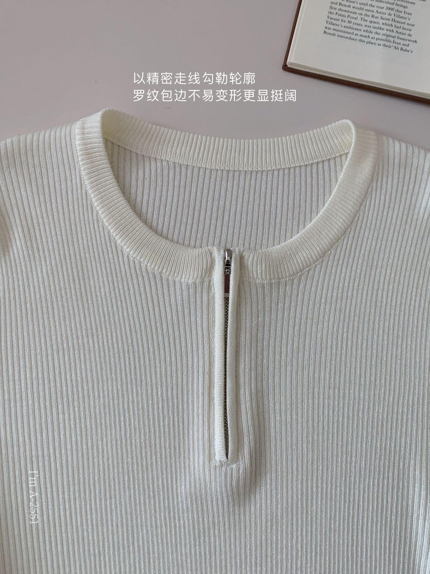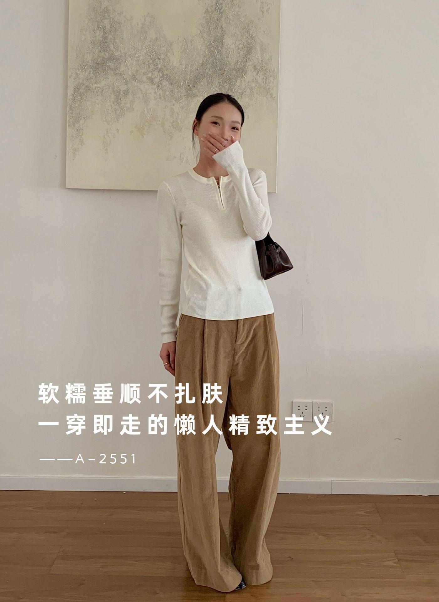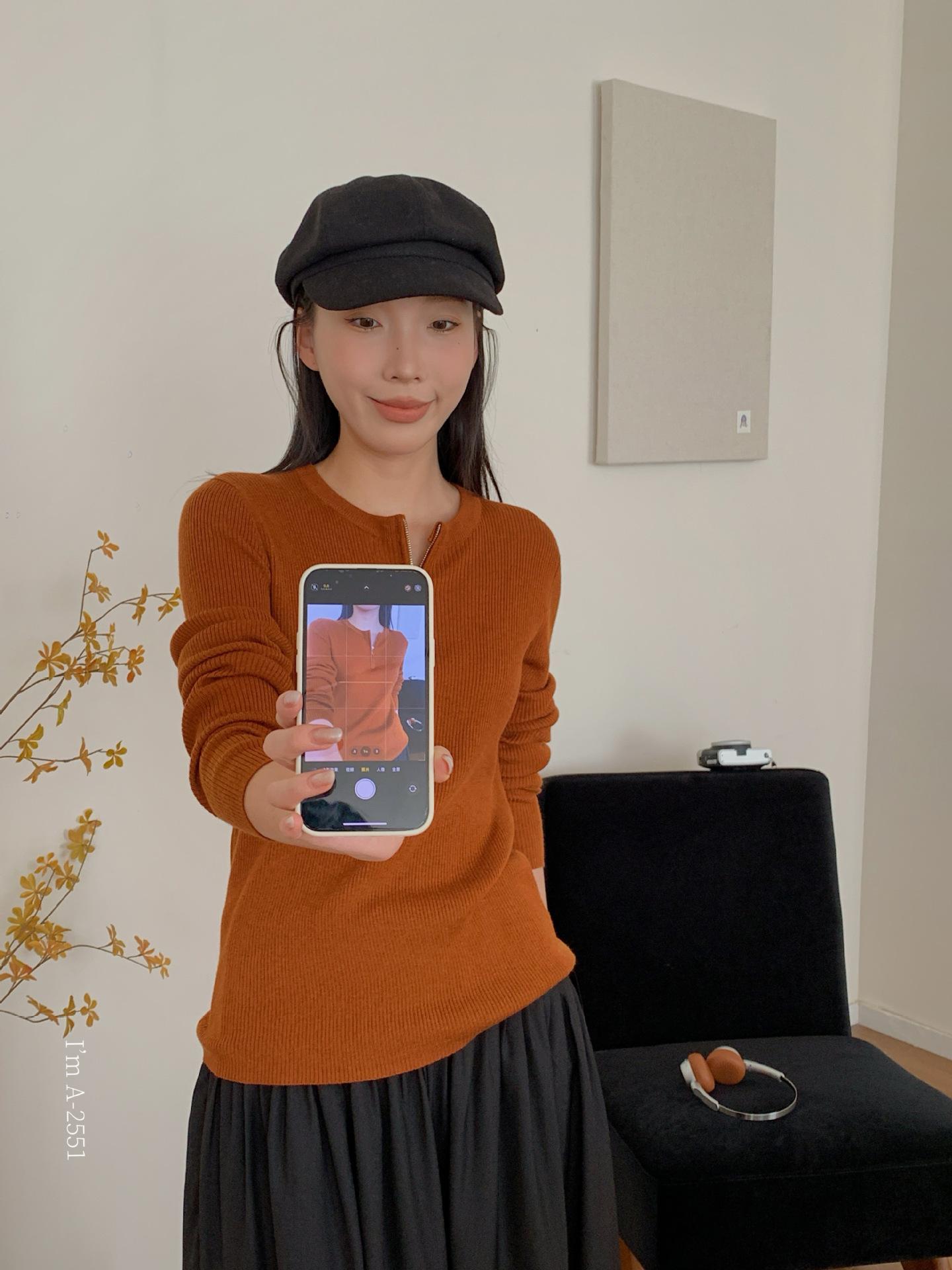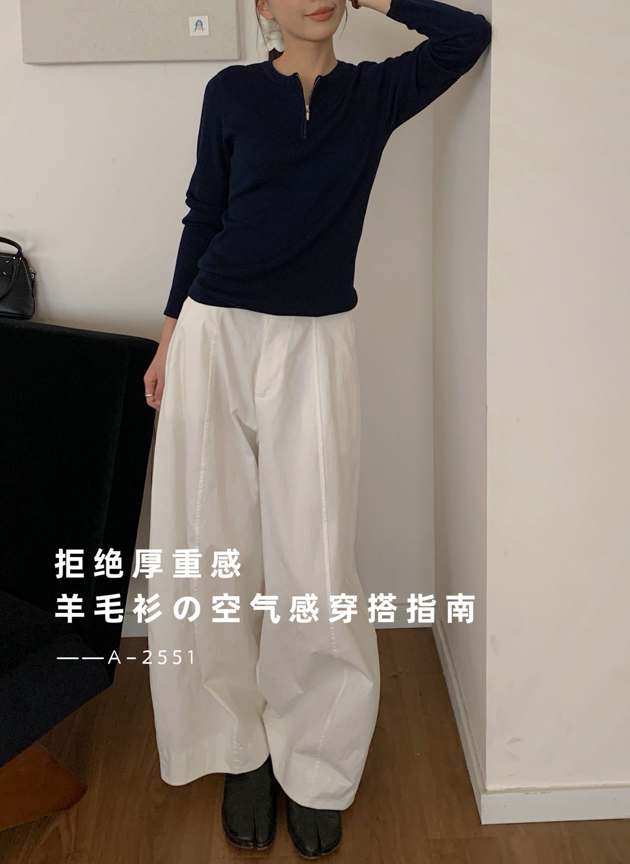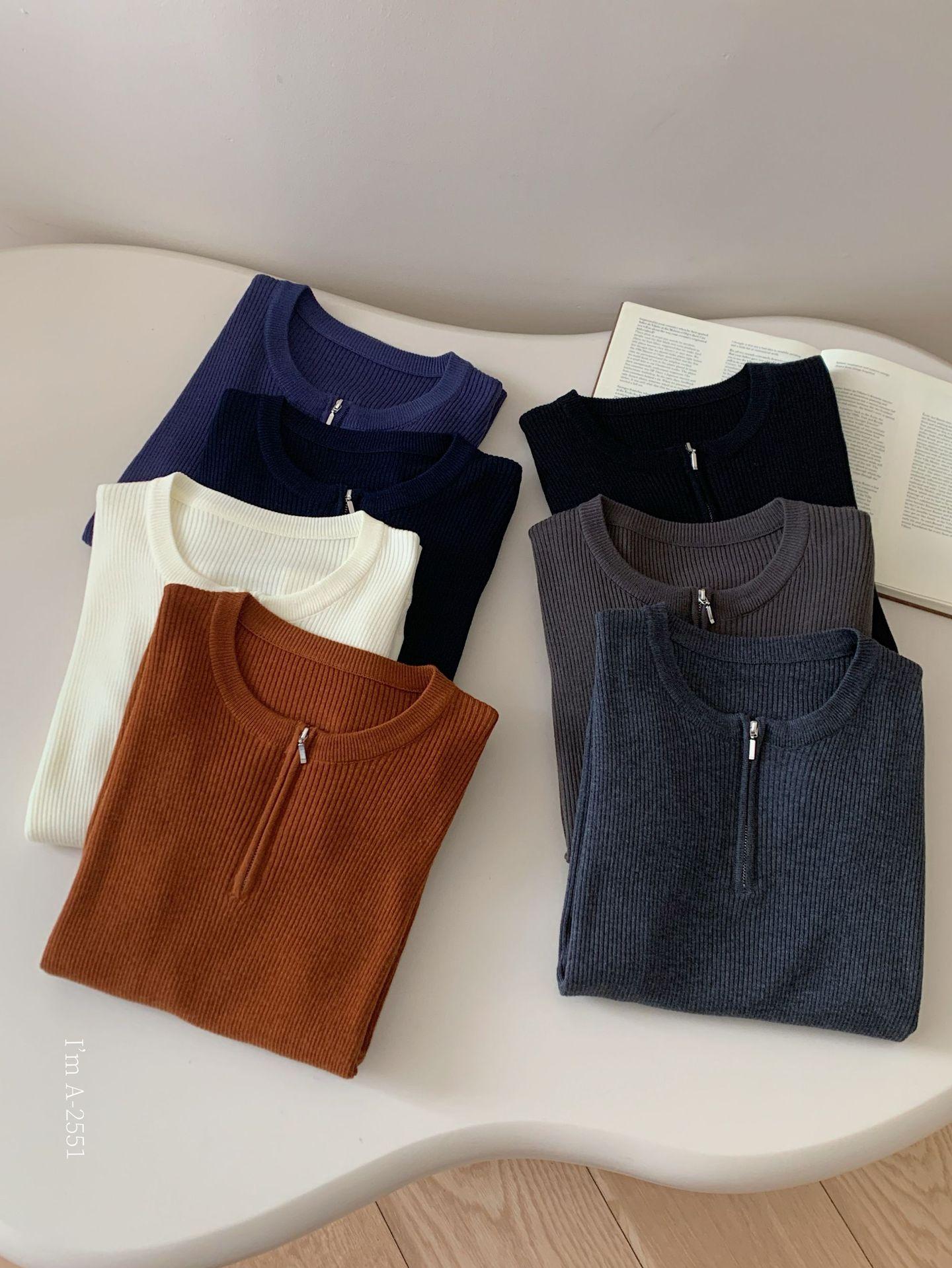 Cálido Tacto Nube de Té Punto de Lana con Media Cremallera para Mujer Otoño/Invierno Nuevo de Alta Gama Cuello Redondo Capa Interior Manga Larga Top Casual
