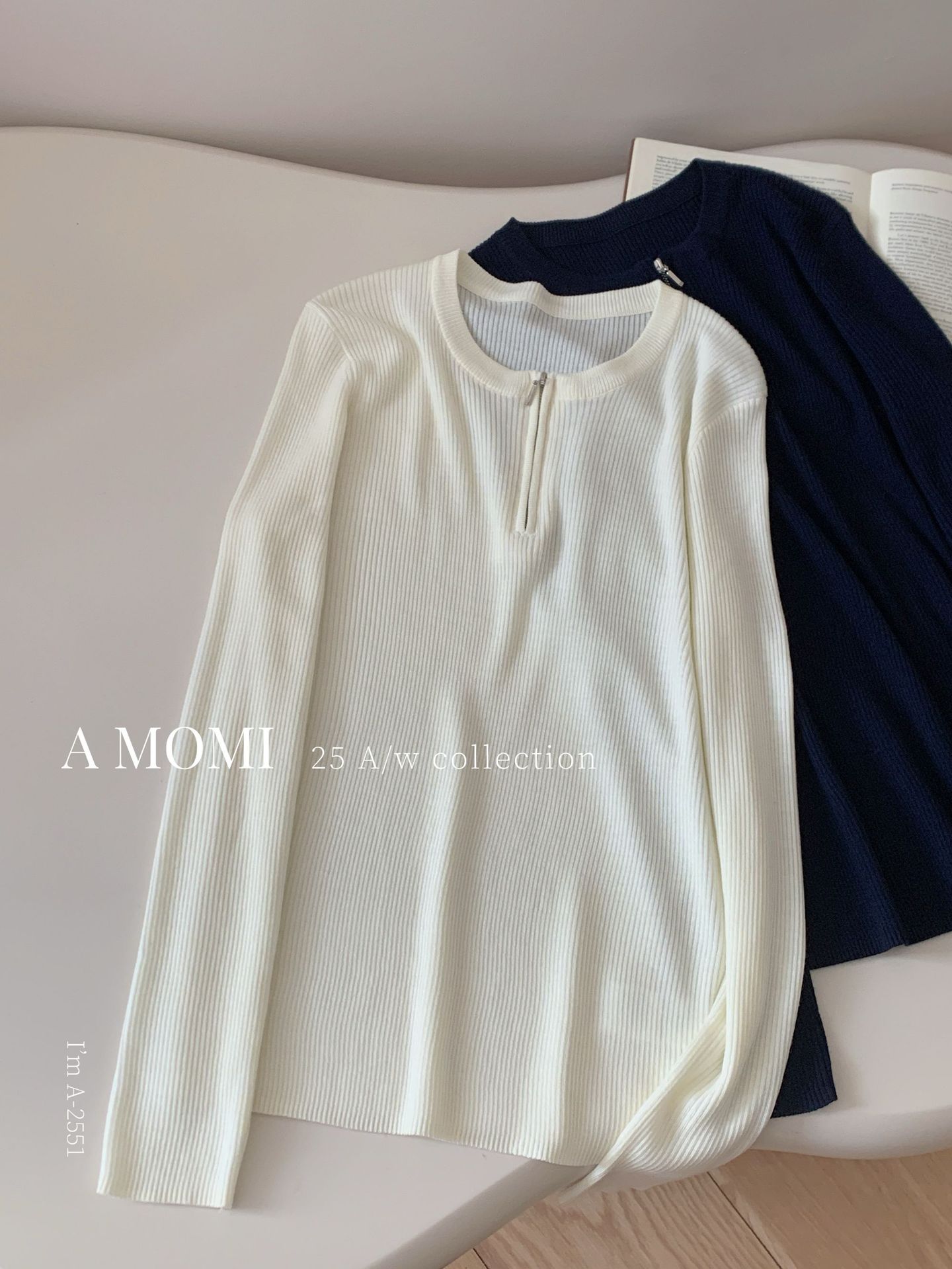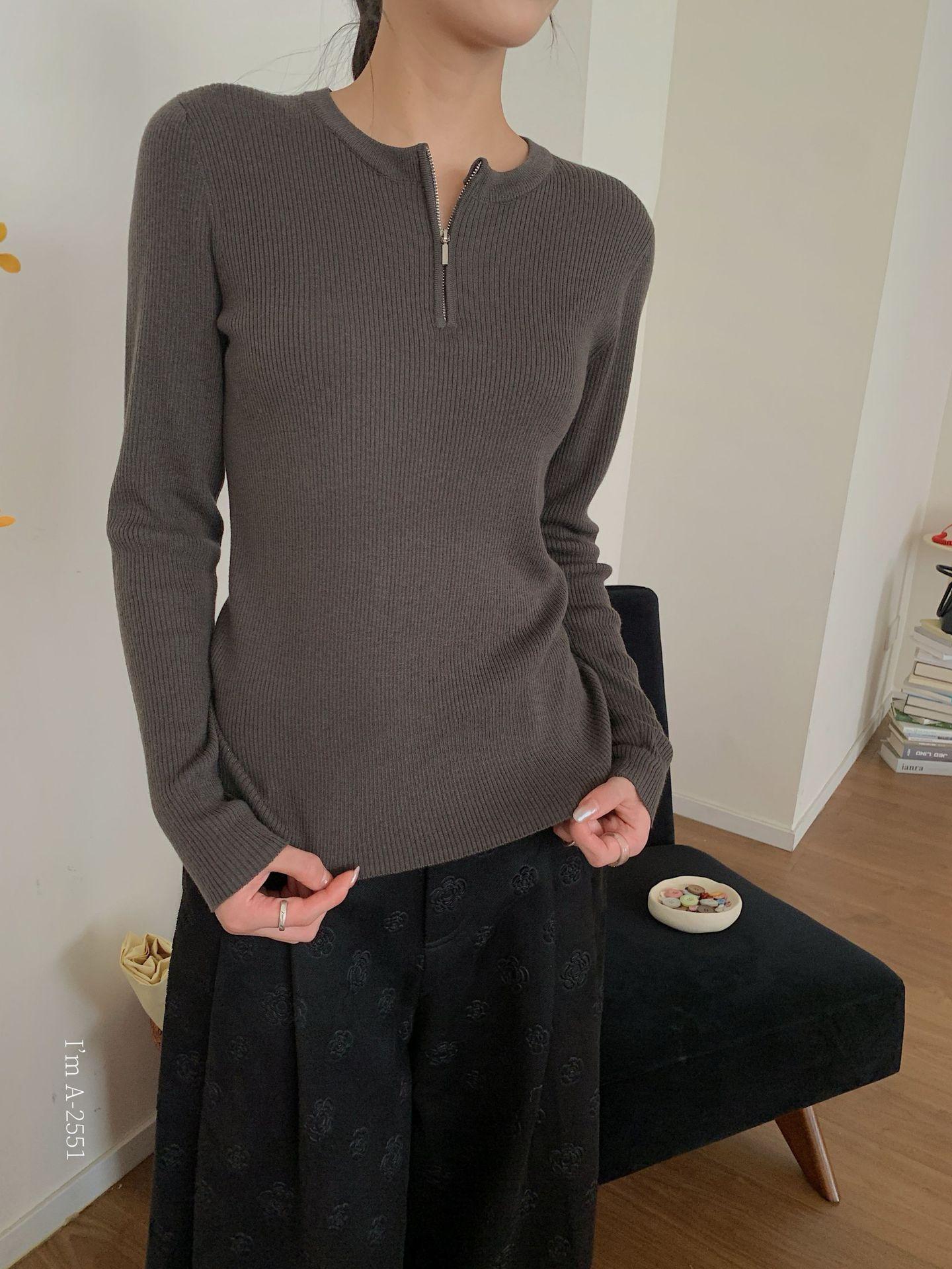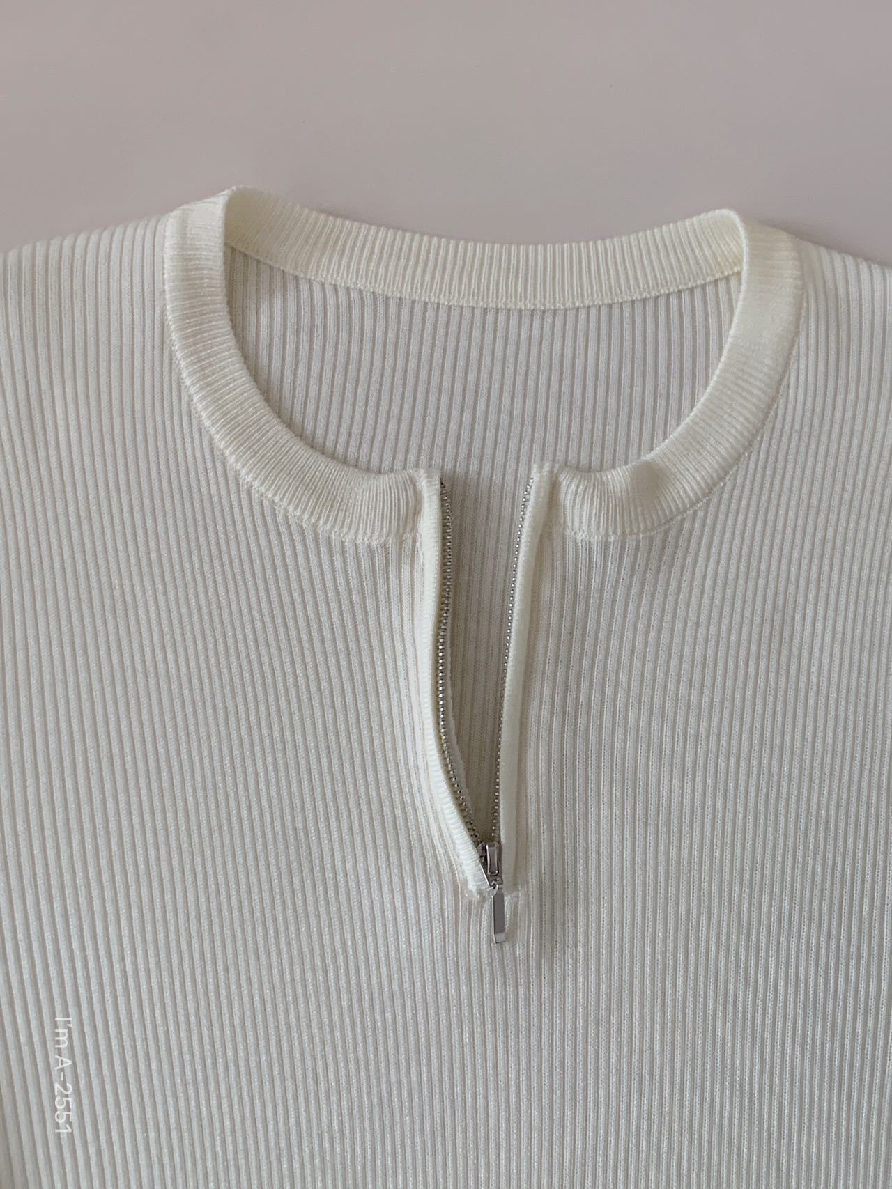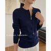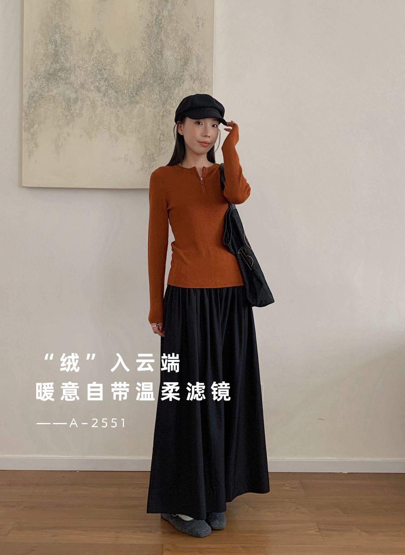 Cálido Tacto Nube de Té Punto de Lana con Media Cremallera para Mujer Otoño/Invierno Nuevo de Alta Gama Cuello Redondo Capa Interior Manga Larga Top Casual