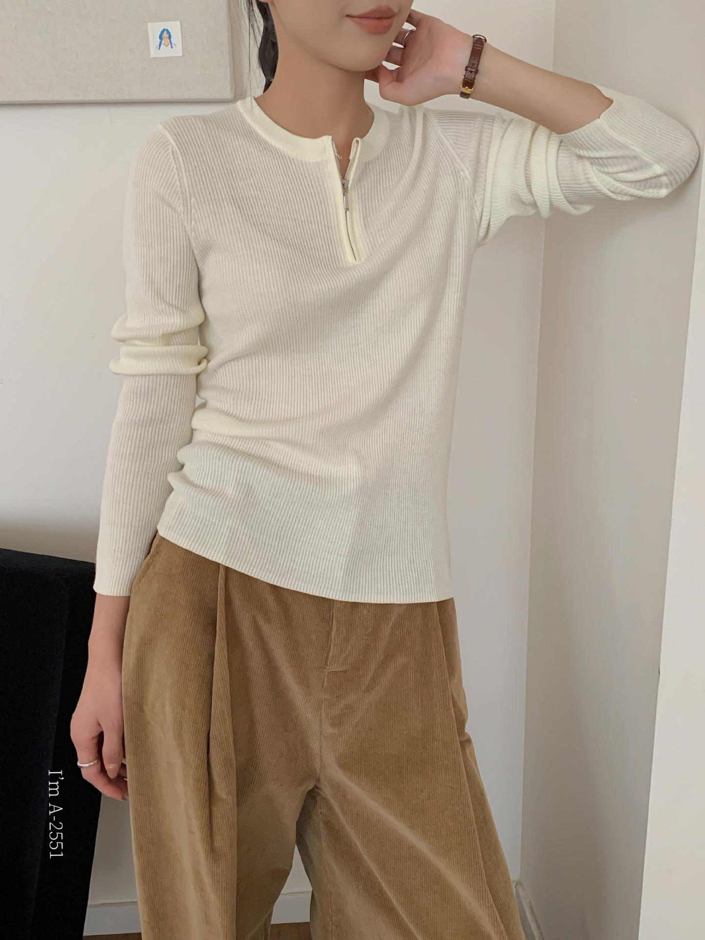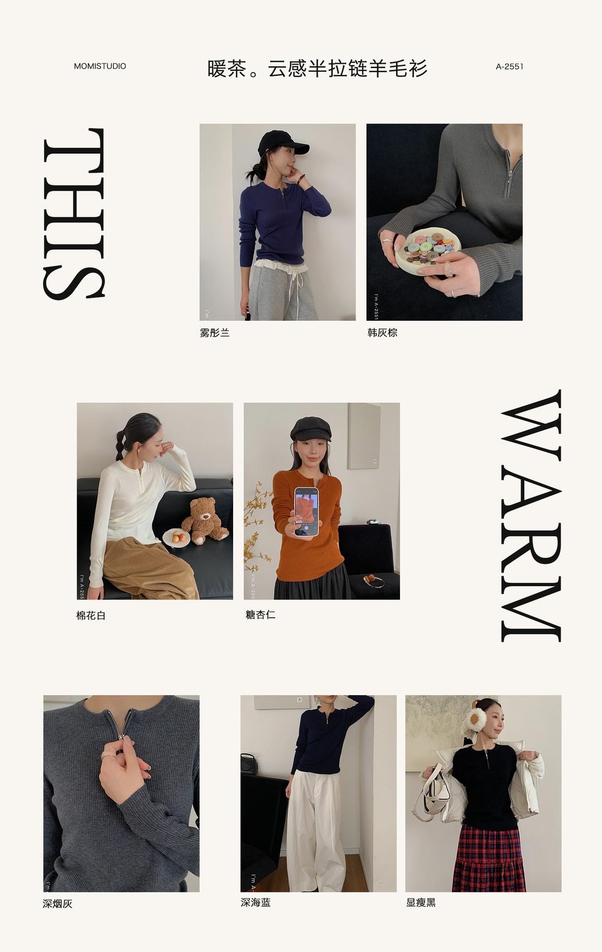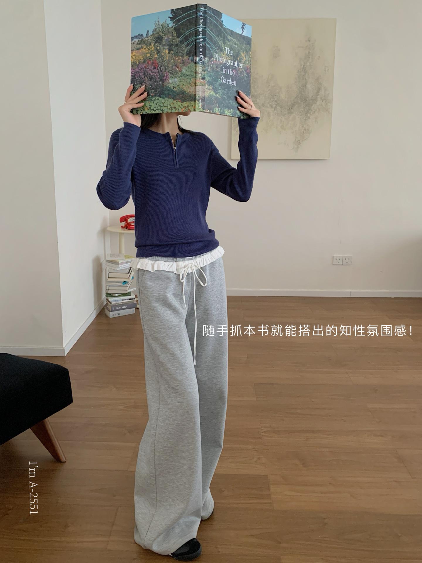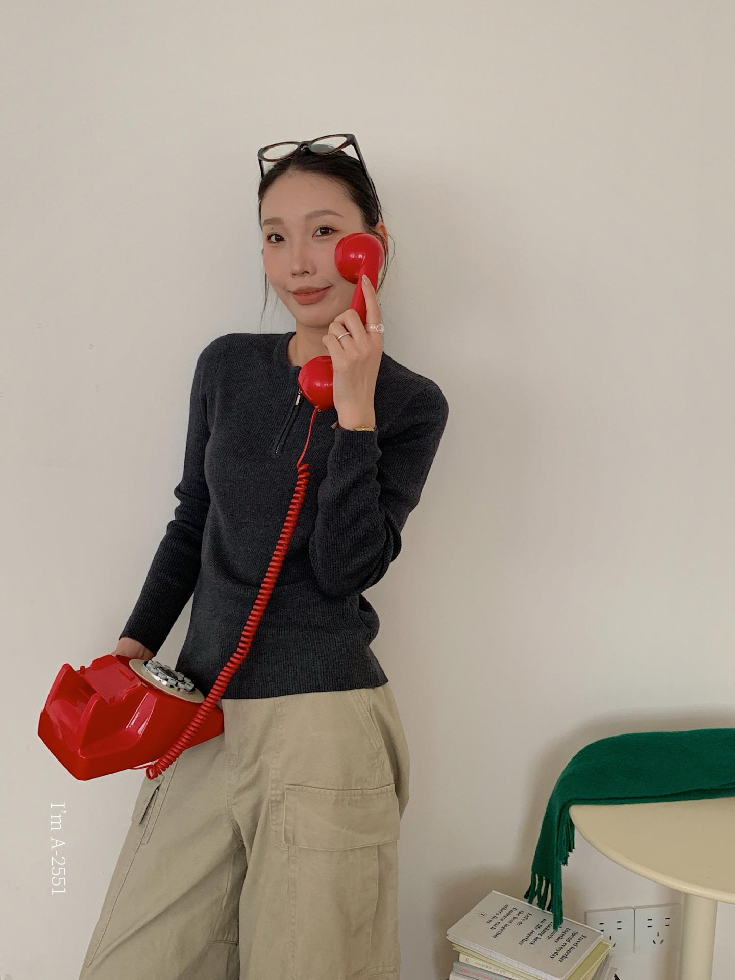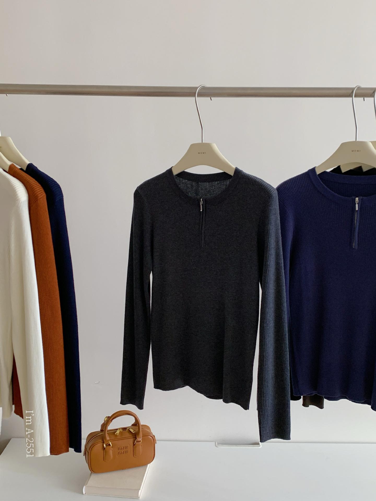 Cálido Tacto Nube de Té Punto de Lana con Media Cremallera para Mujer Otoño/Invierno Nuevo de Alta Gama Cuello Redondo Capa Interior Manga Larga Top Casual