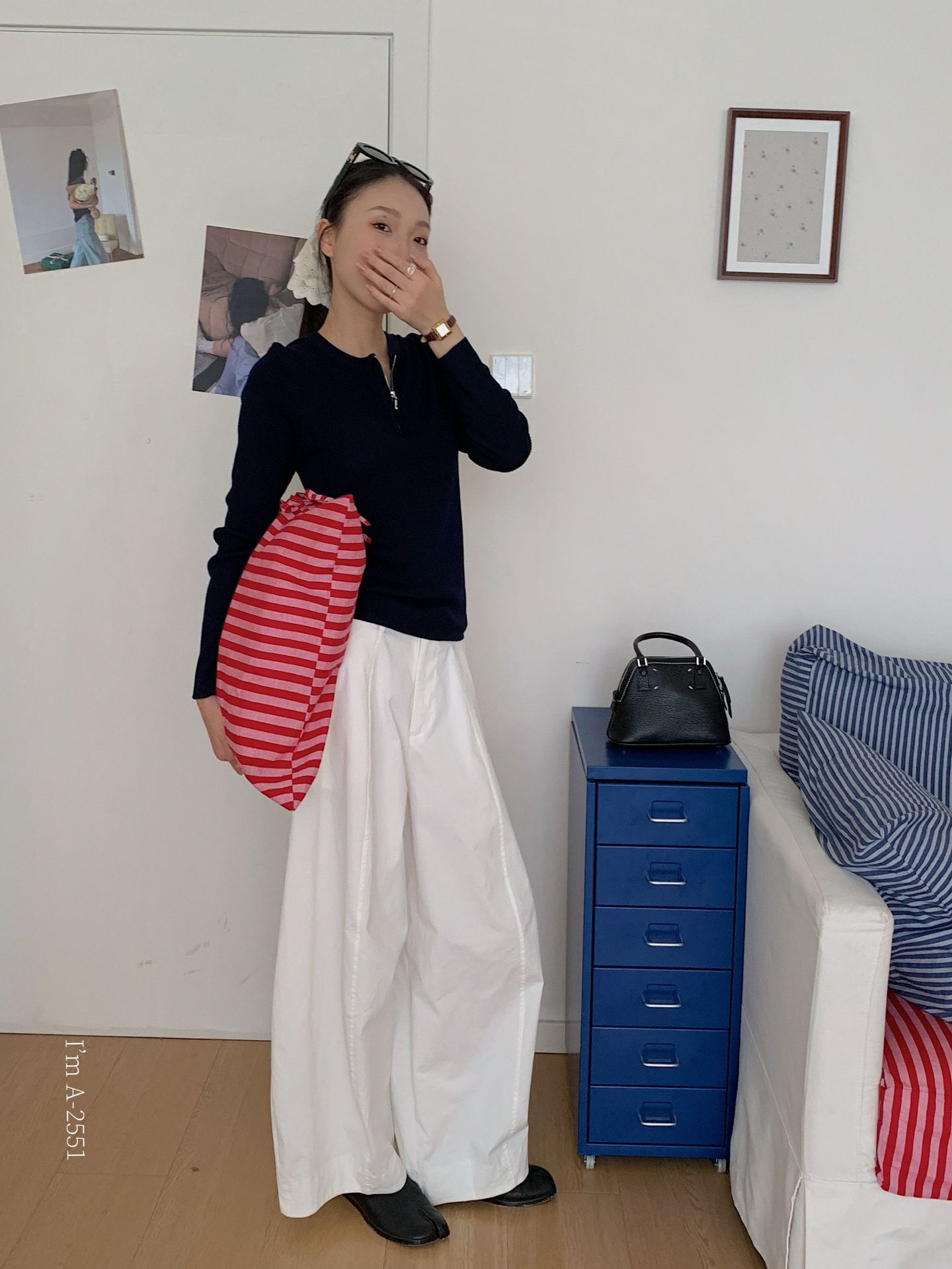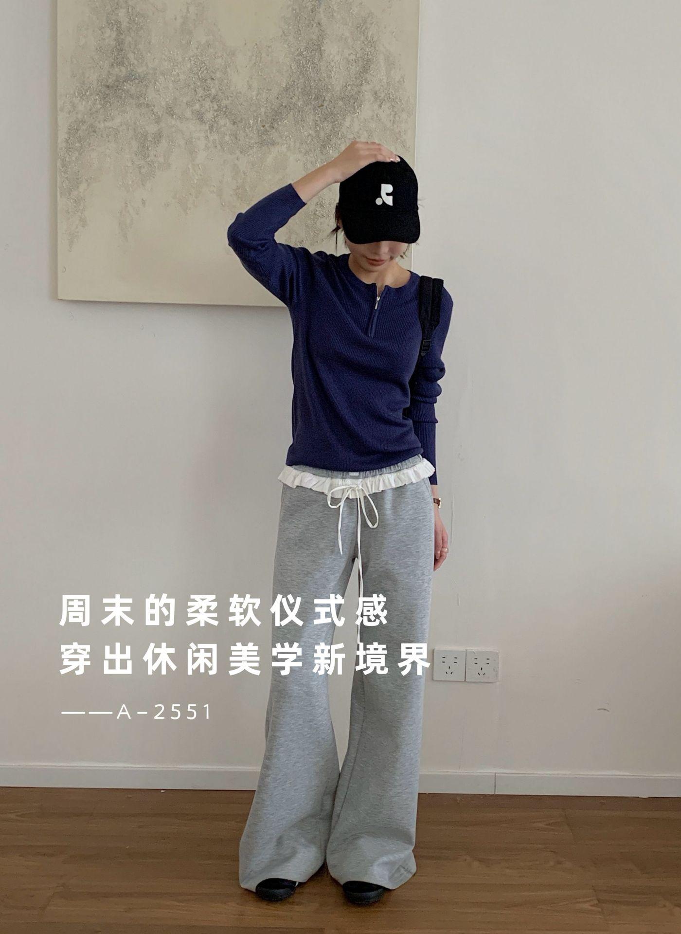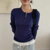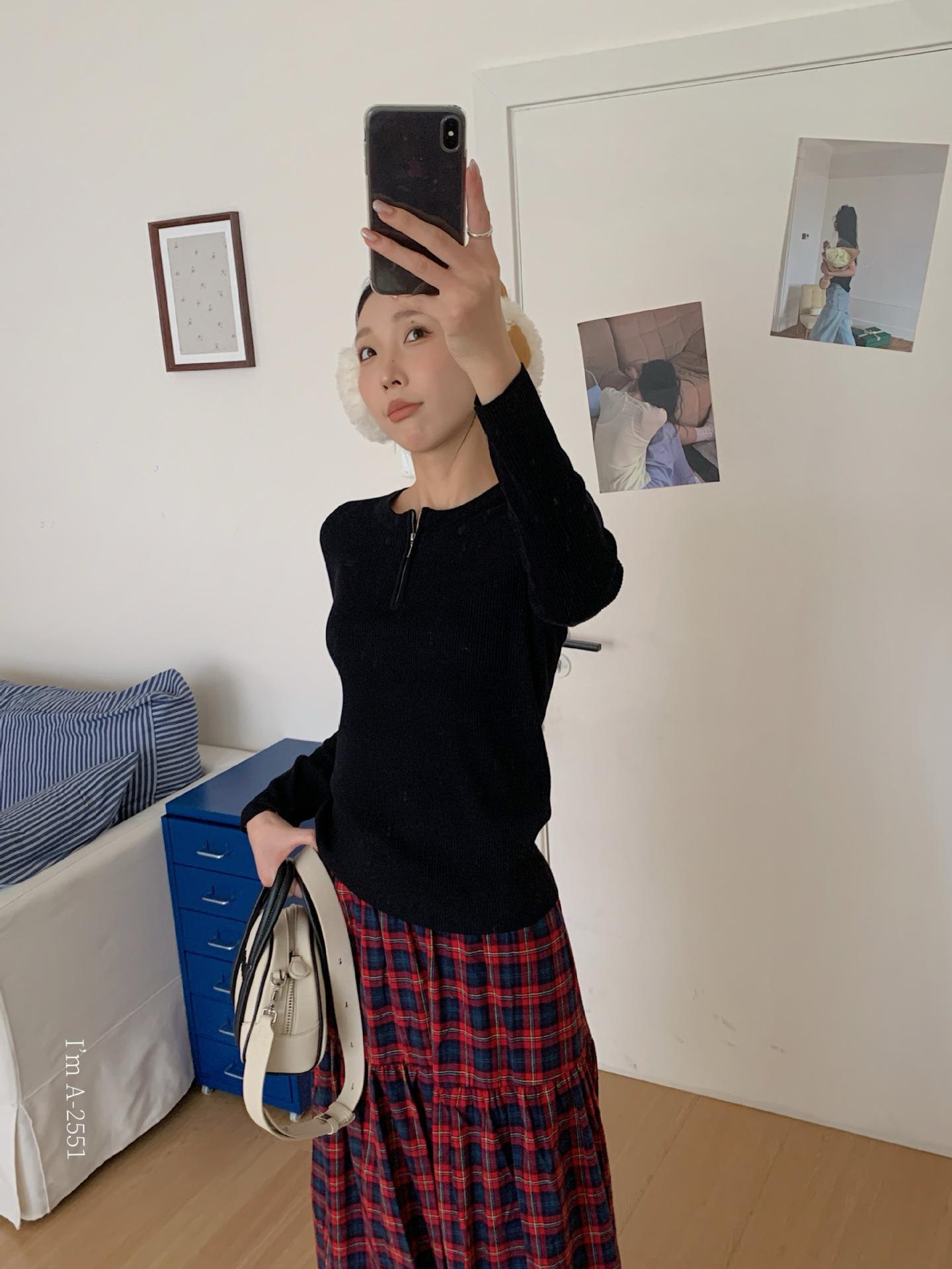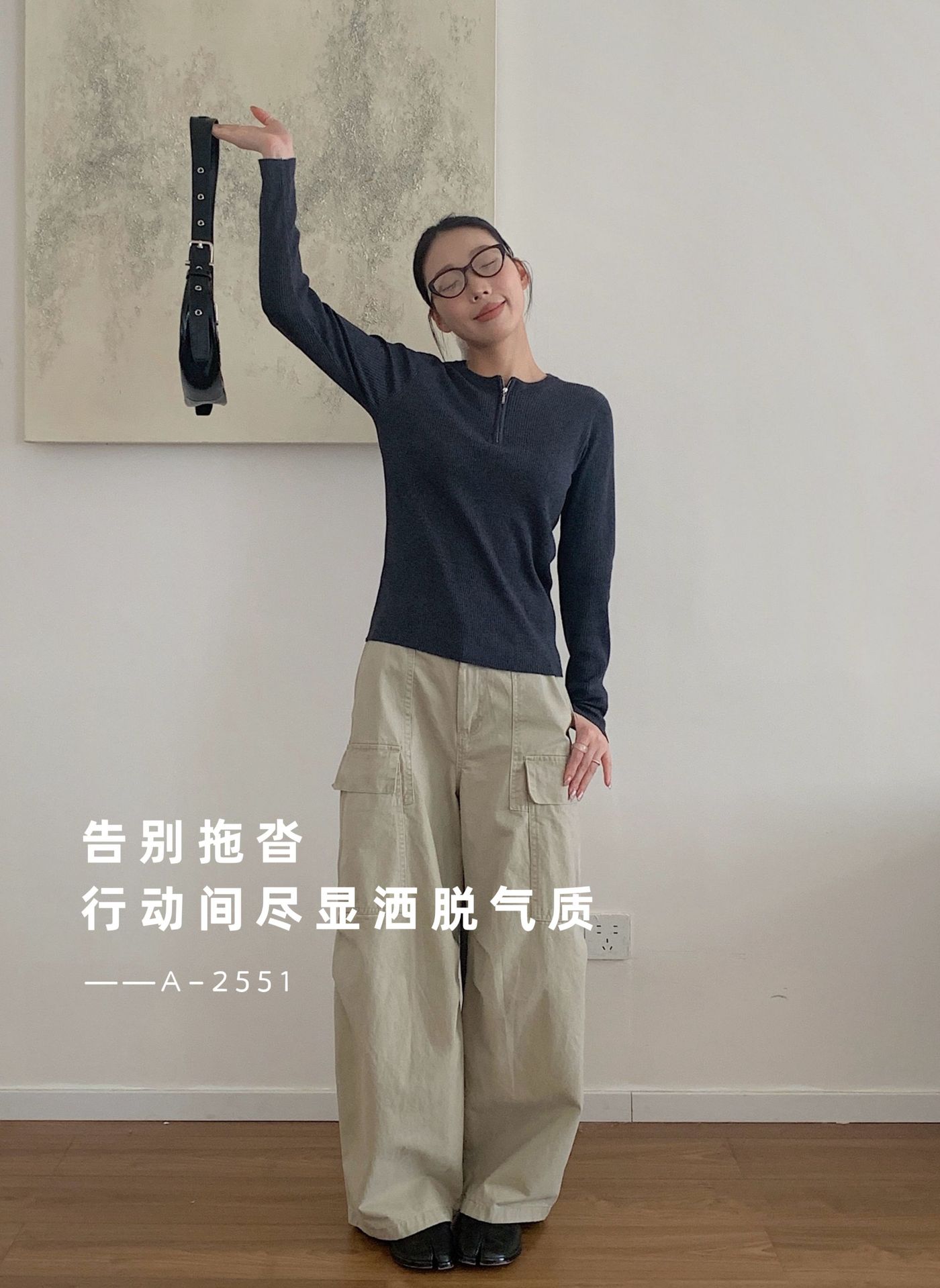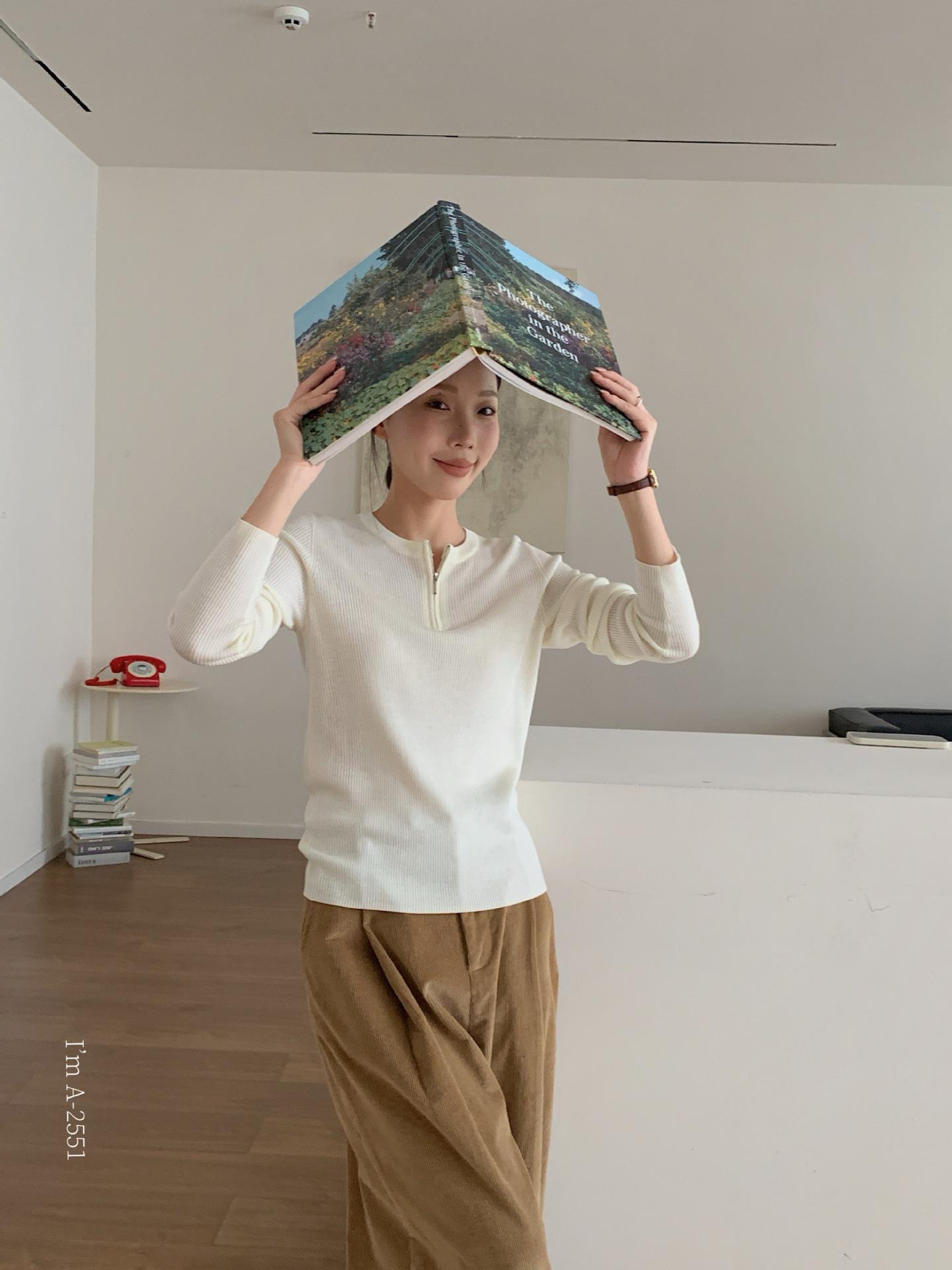 Cálido Tacto Nube de Té Punto de Lana con Media Cremallera para Mujer Otoño/Invierno Nuevo de Alta Gama Cuello Redondo Capa Interior Manga Larga Top Casual