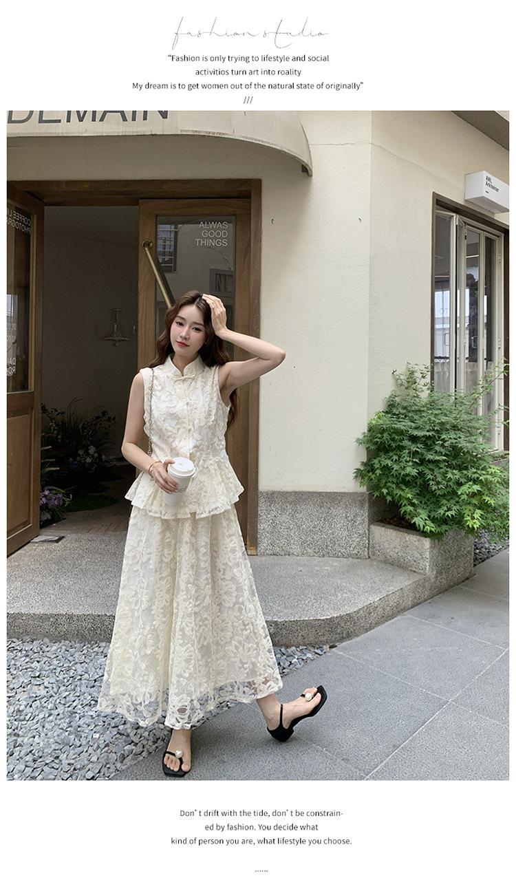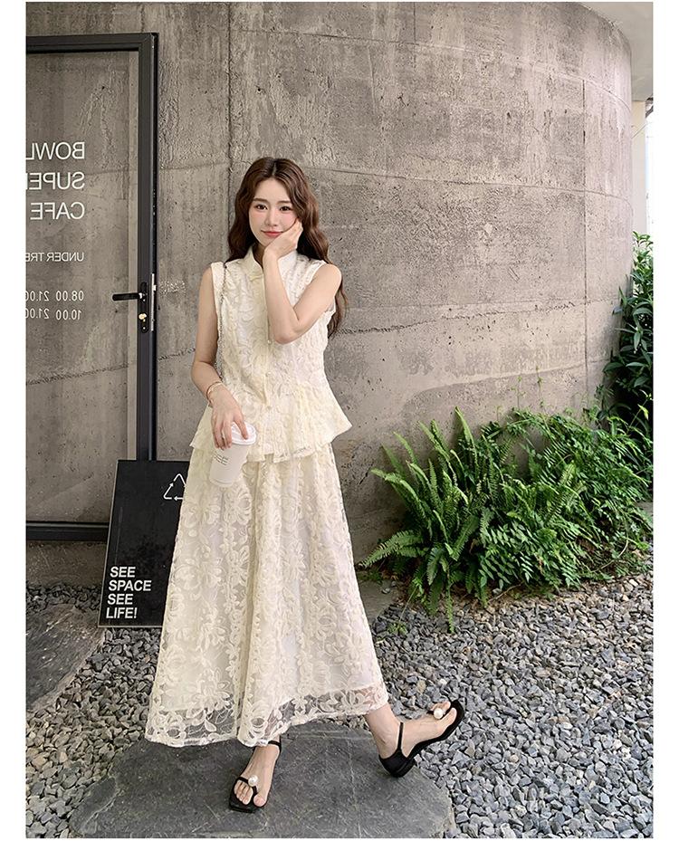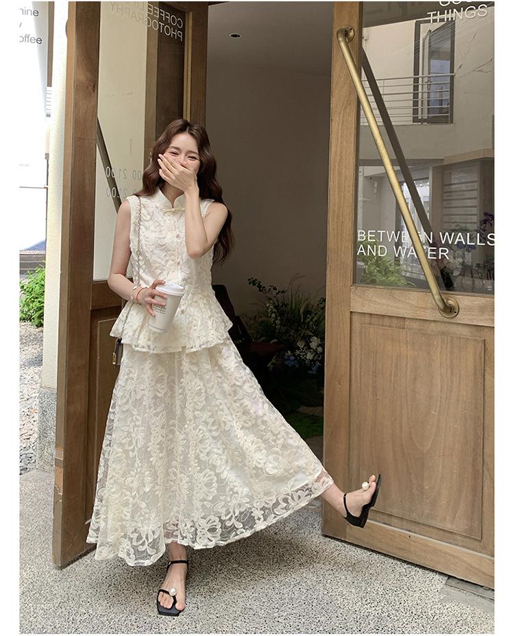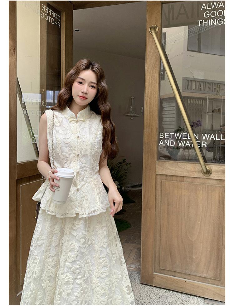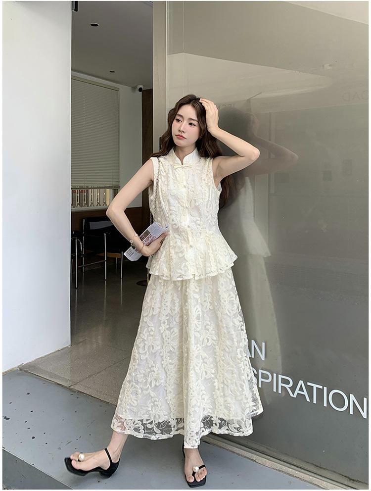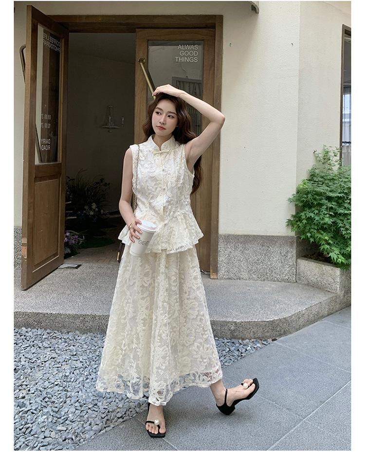 Conjunto de Dos Piezas de Moda 2025 Reductor de Edad Versátil Cómodo Amigable con la Piel Moderno Nuevo Chino Encaje Conjunto de Dos Piezas
