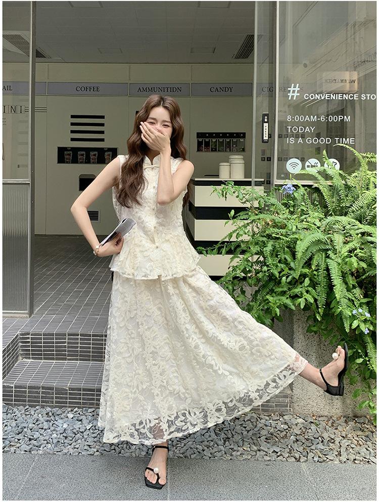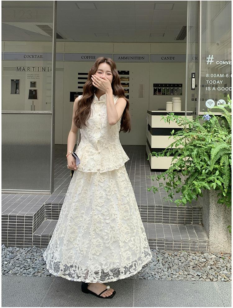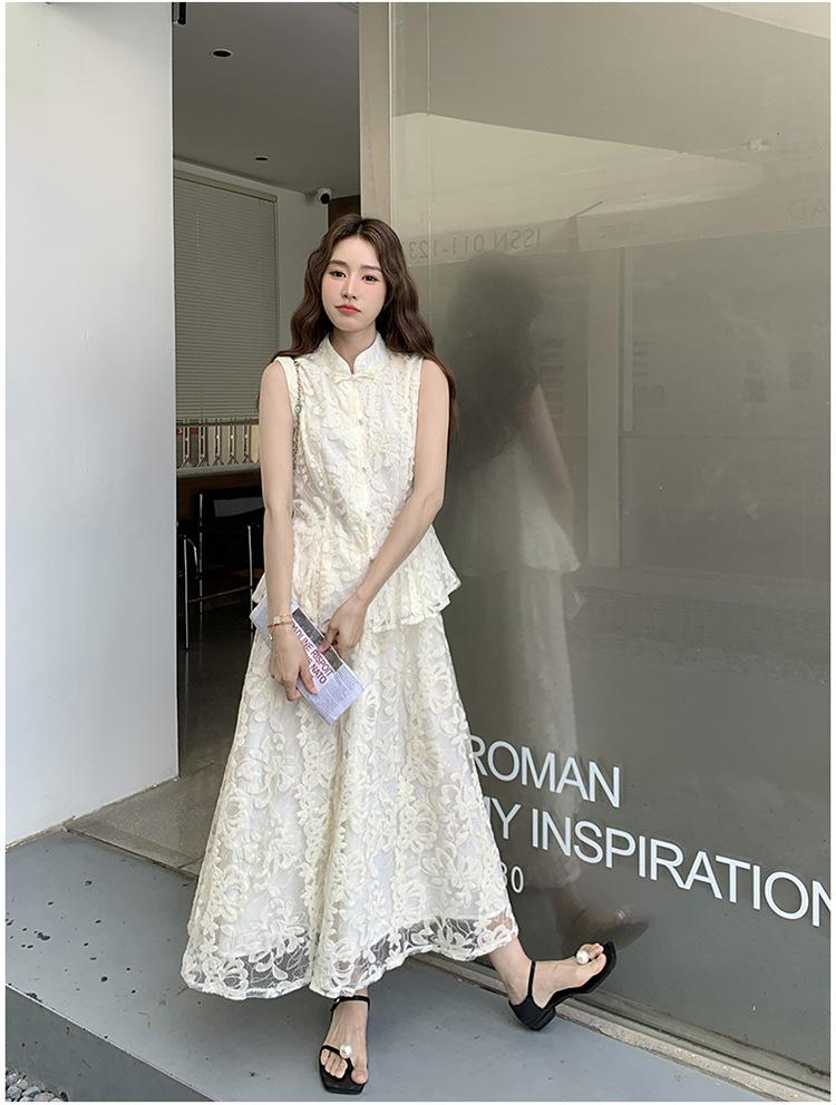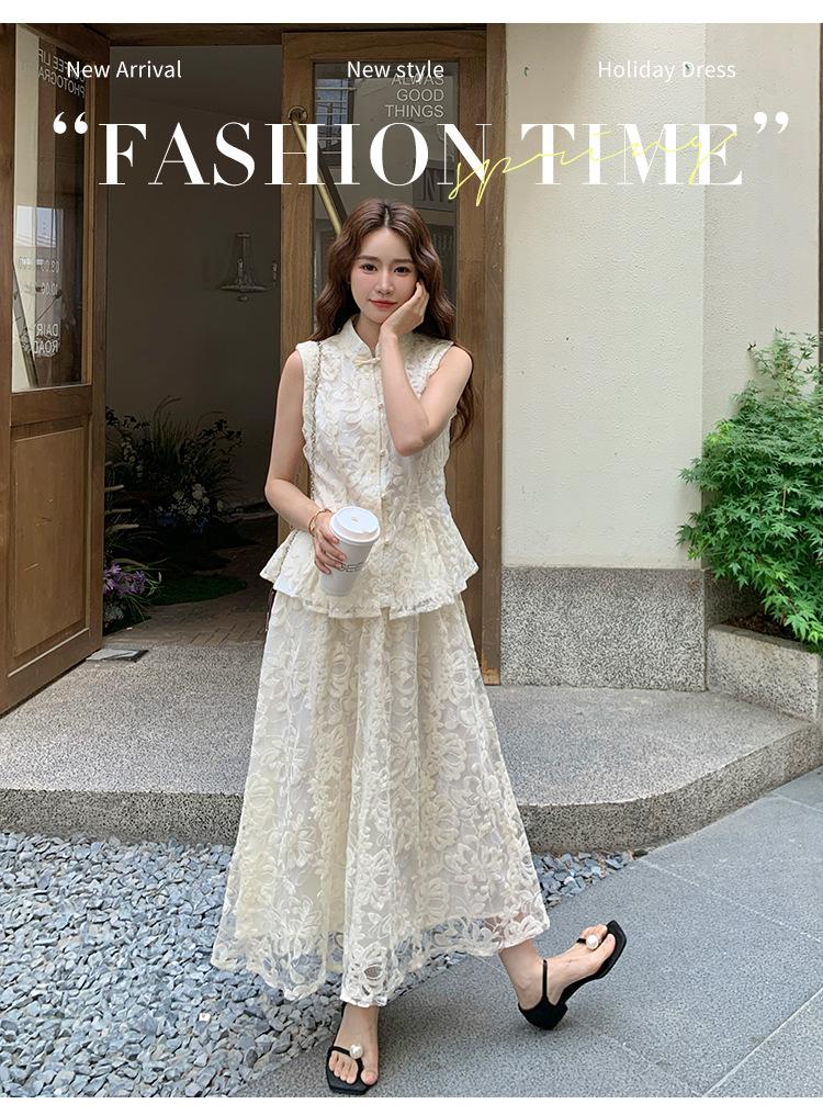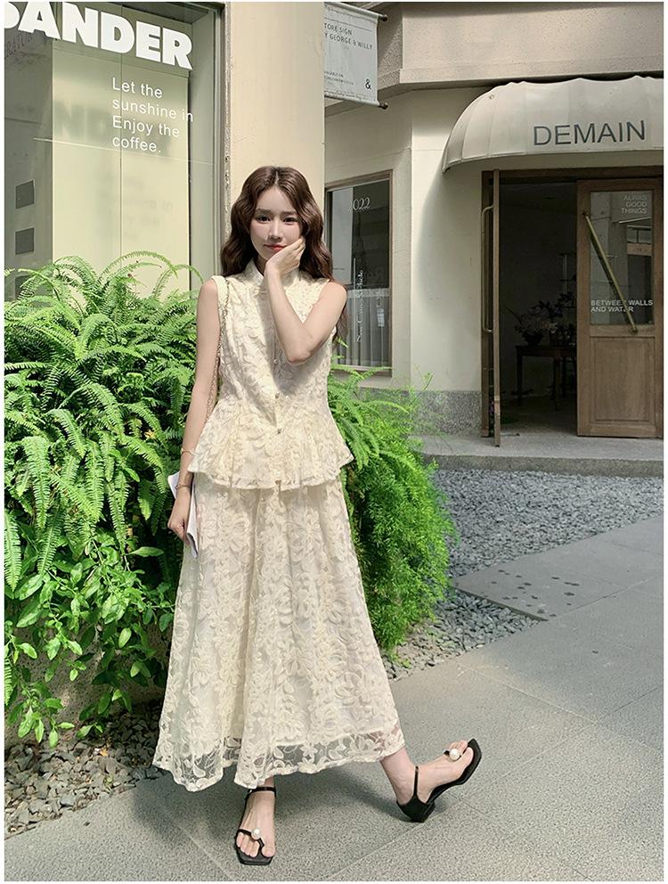 Conjunto de Dos Piezas de Moda 2025 Reductor de Edad Versátil Cómodo Amigable con la Piel Moderno Nuevo Chino Encaje Conjunto de Dos Piezas