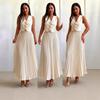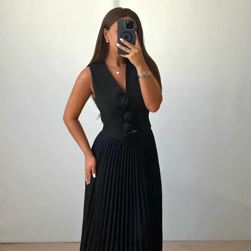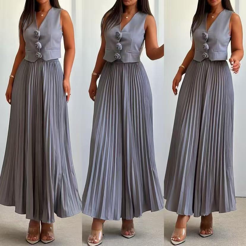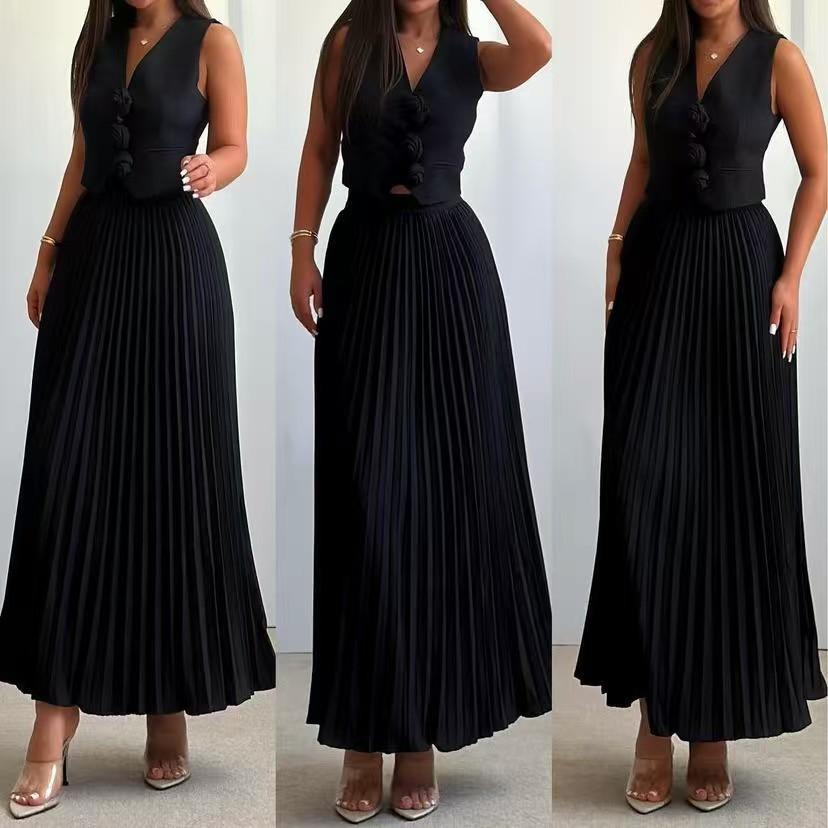 2025 Comercio Exterior Transfronterizo de Amazon Casual Chaleco de Flores Tridimensionales Falda Plisada Traje Ropa de Mujer