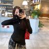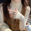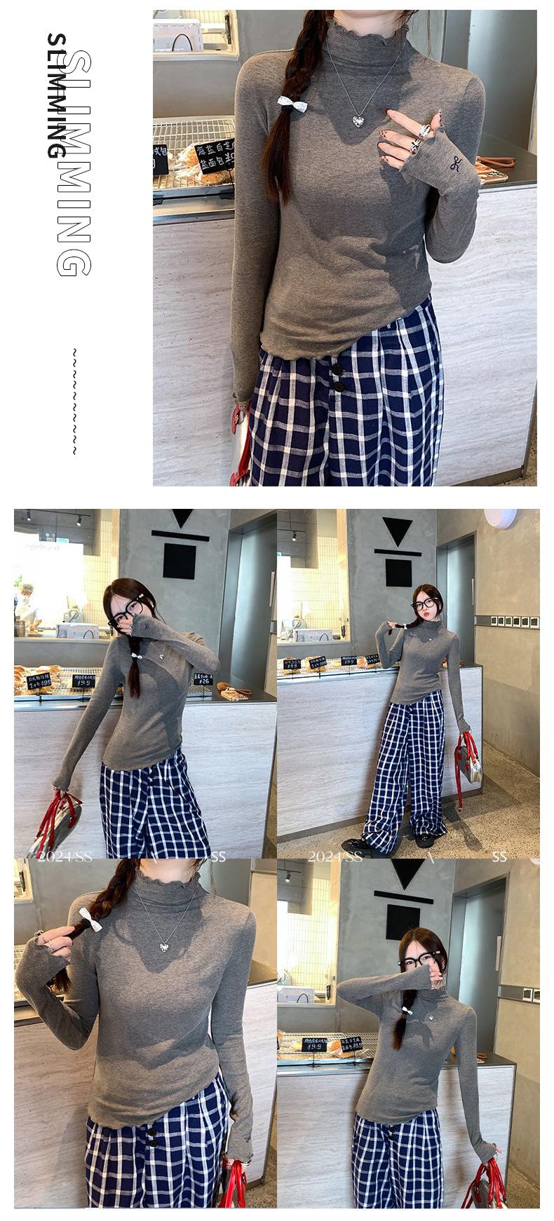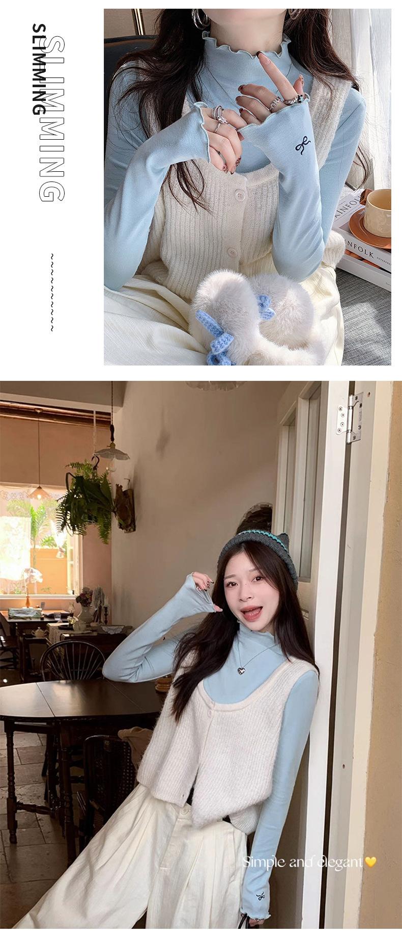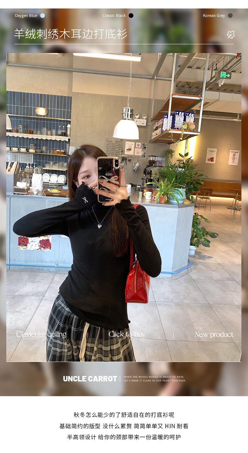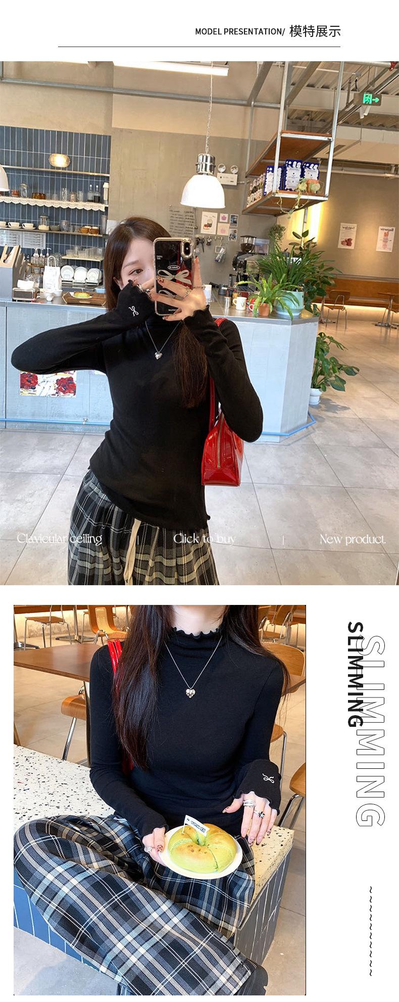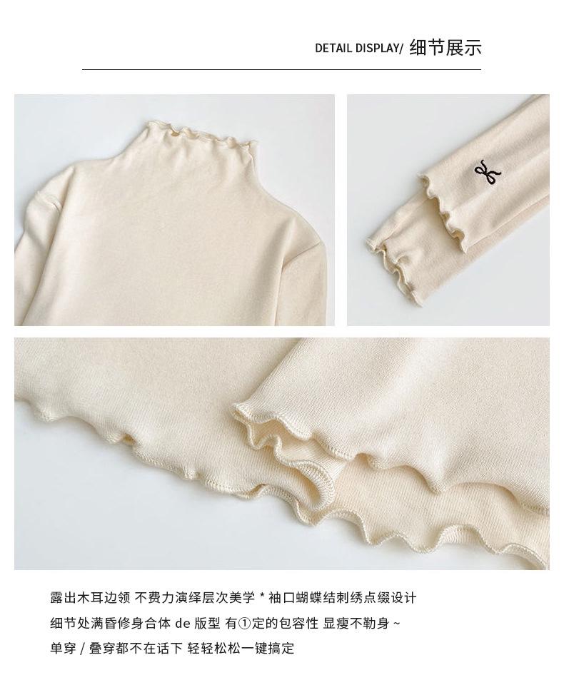 Suéter de Punto de Cuello Medio Alto para Mujer Borde con Volantes Capa Base Ropa Interior Otoño Invierno Nuevo Sentido Avanzado Adelgazante Manga Larga Top