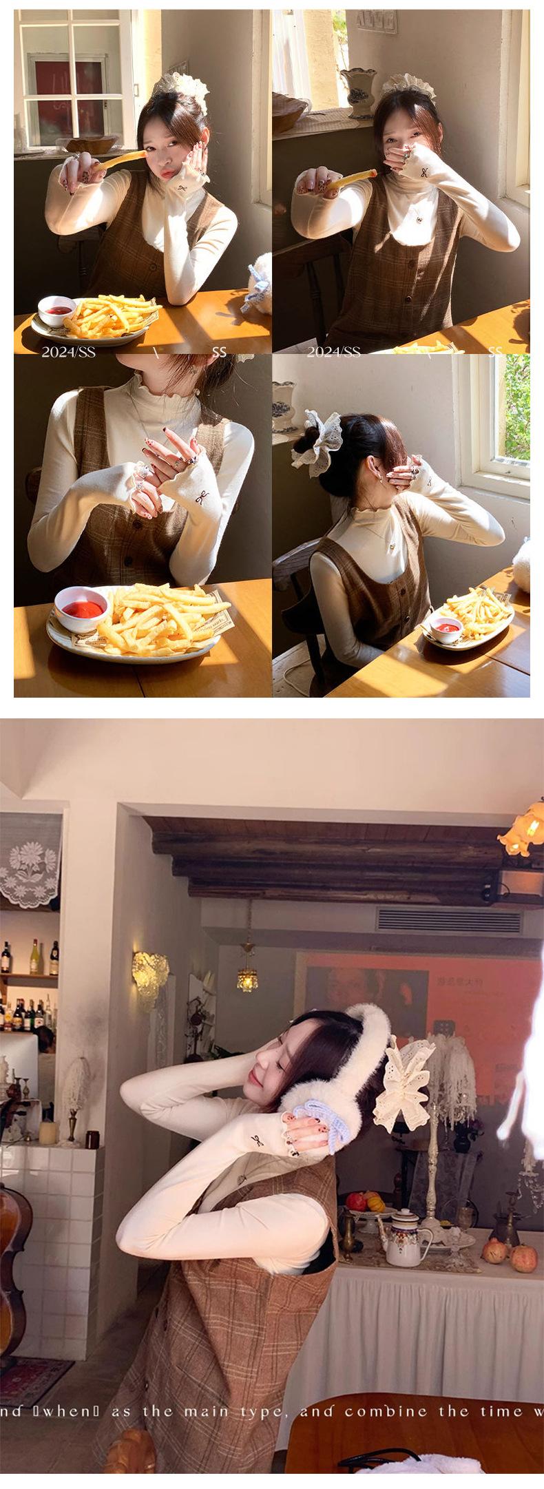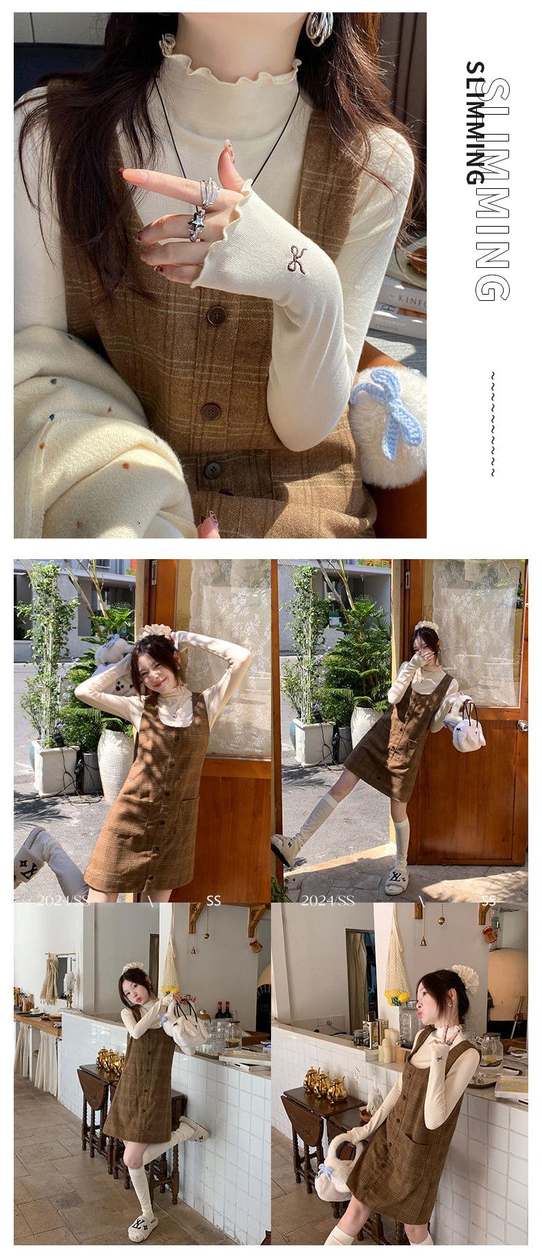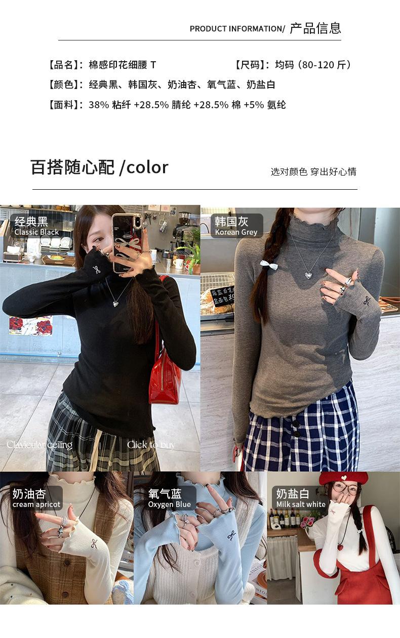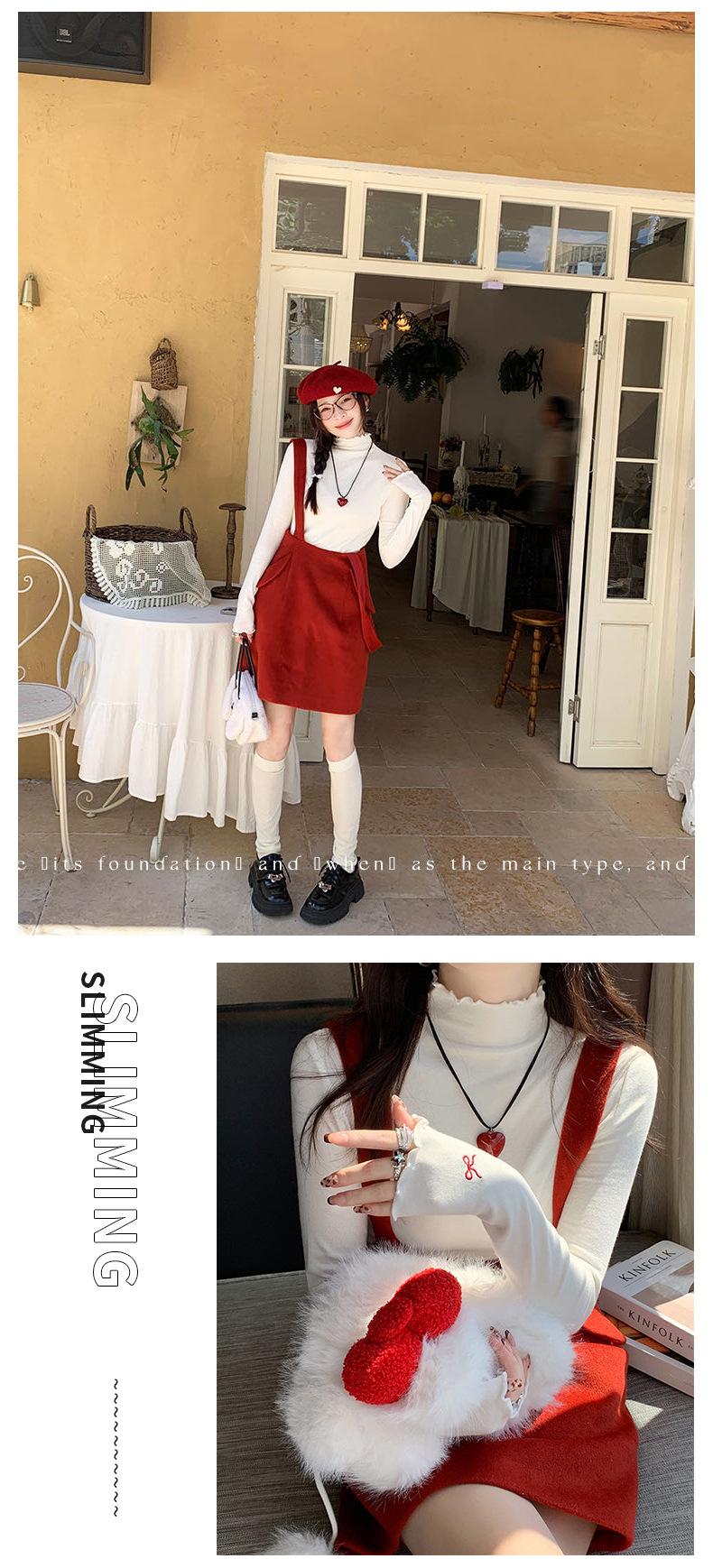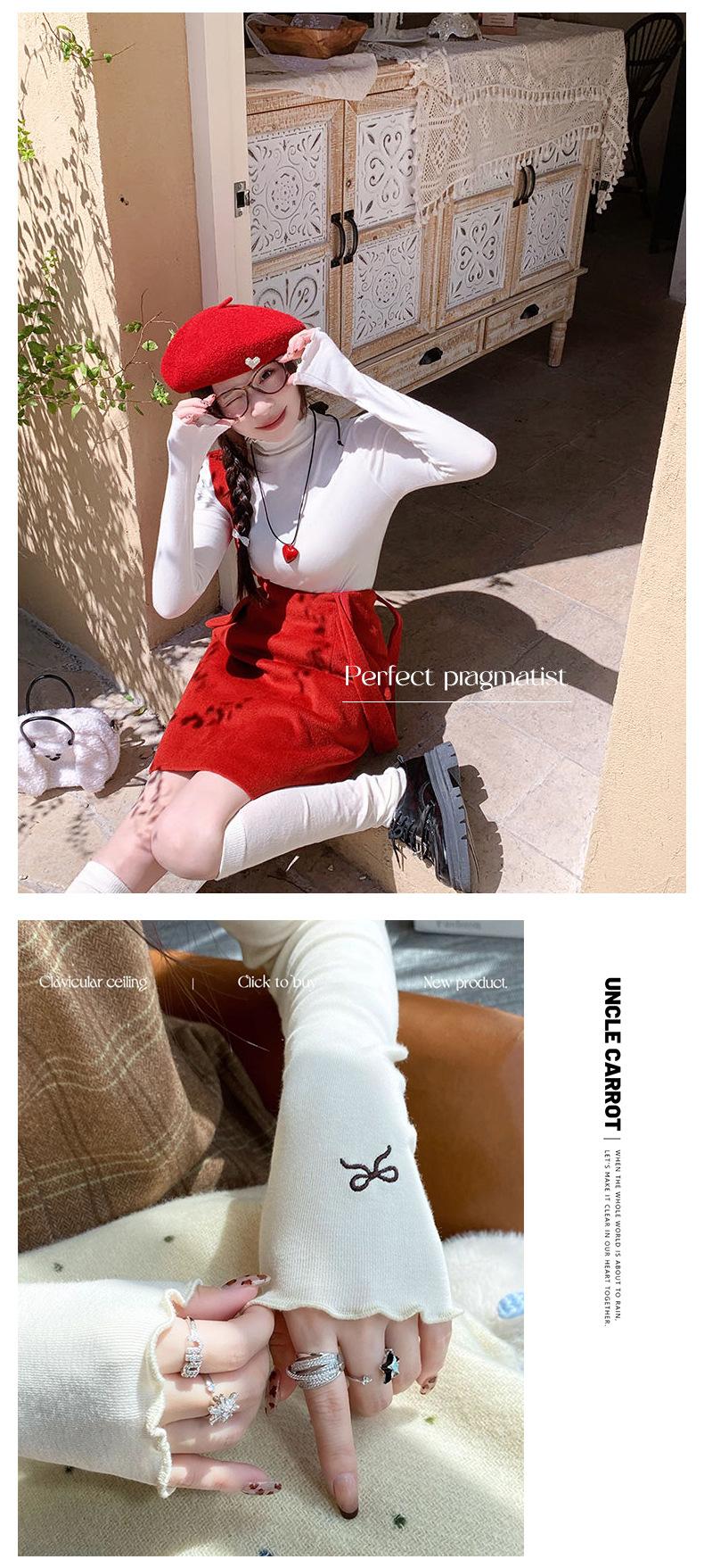 Suéter de Punto de Cuello Medio Alto para Mujer Borde con Volantes Capa Base Ropa Interior Otoño Invierno Nuevo Sentido Avanzado Adelgazante Manga Larga Top