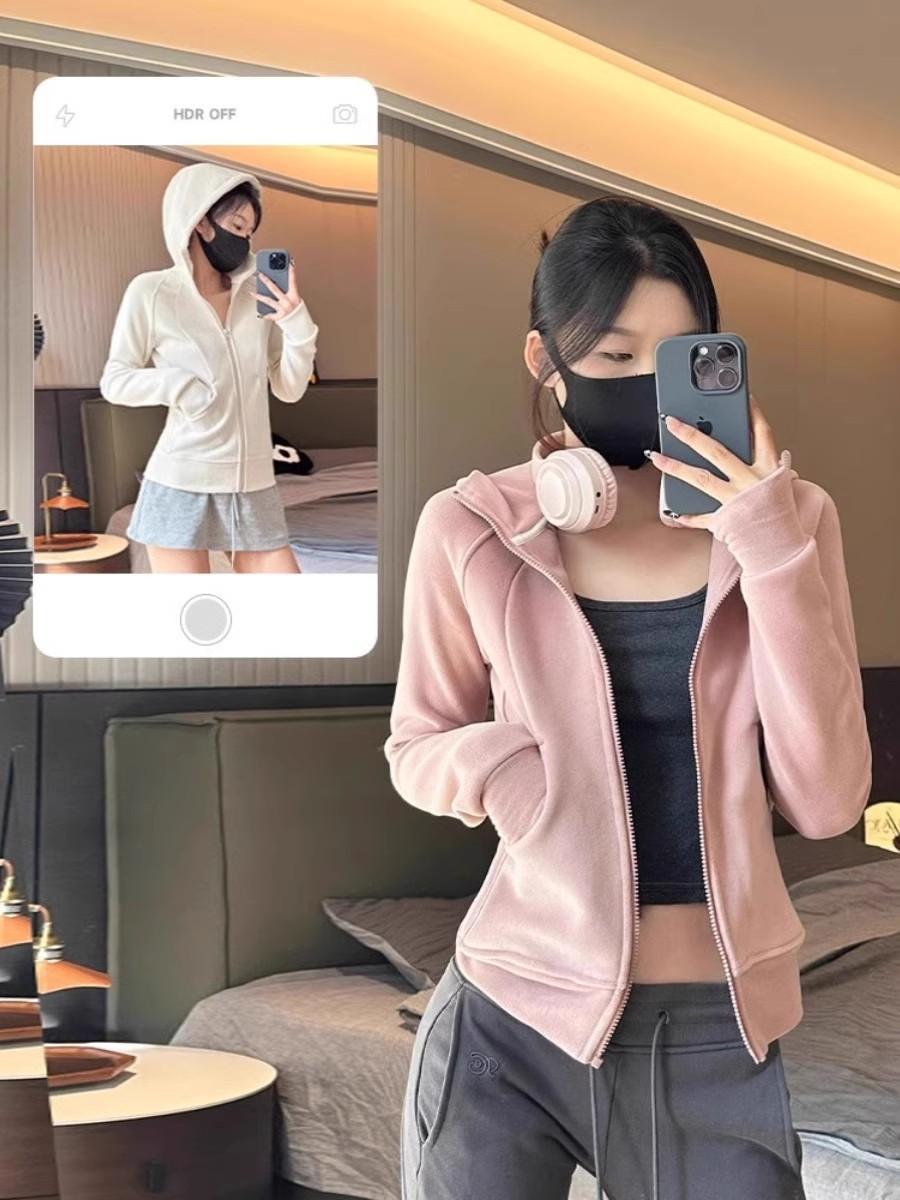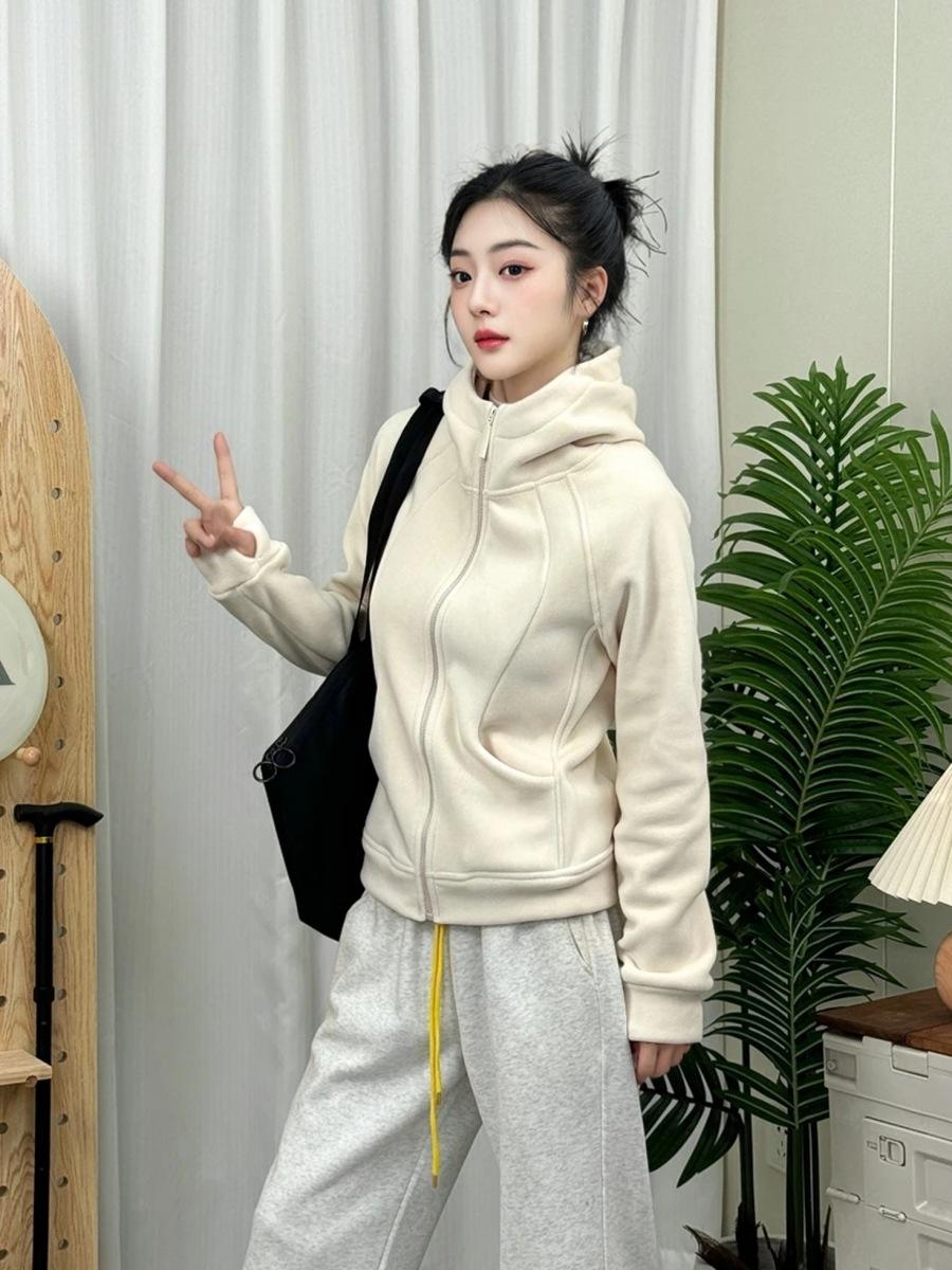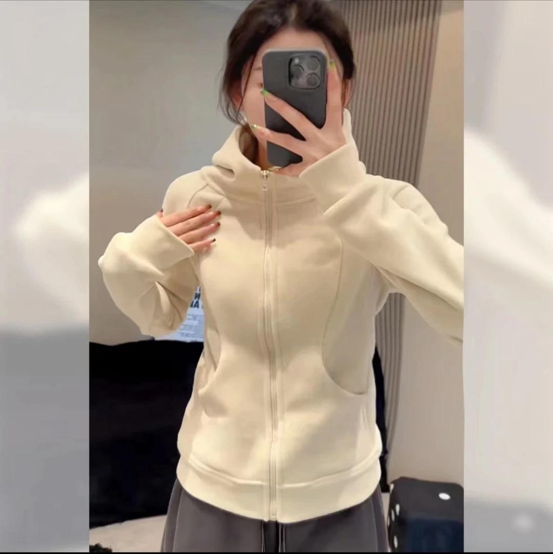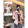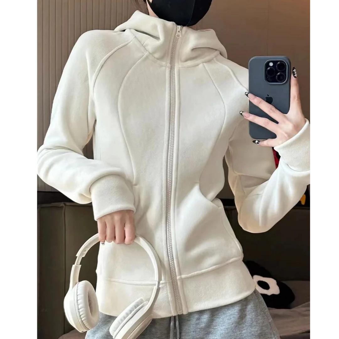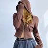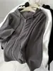 Sudadera con capucha para mujer, top de terciopelo de doble cara, primavera 2025, pantalones con cremallera, cárdigan ajustado, sexy, de manga larga, chaqueta gris