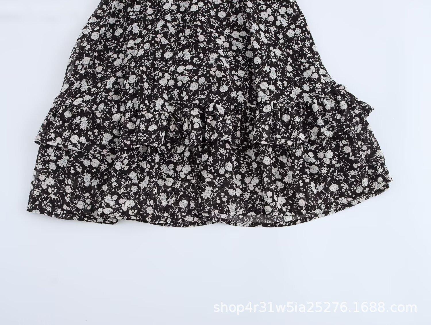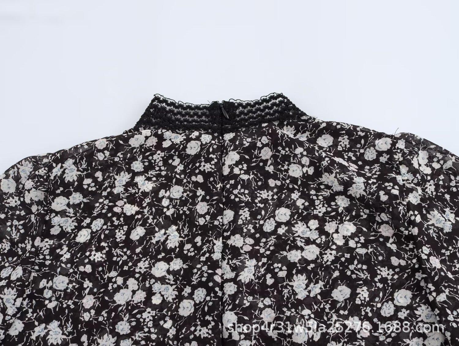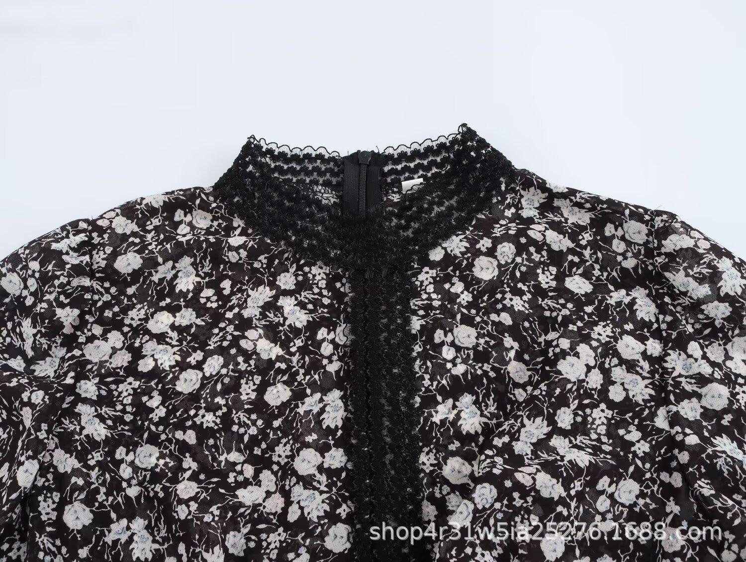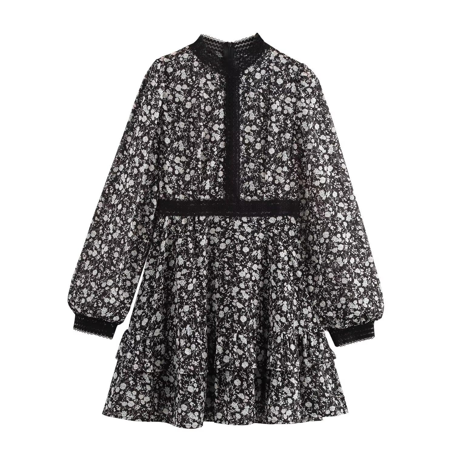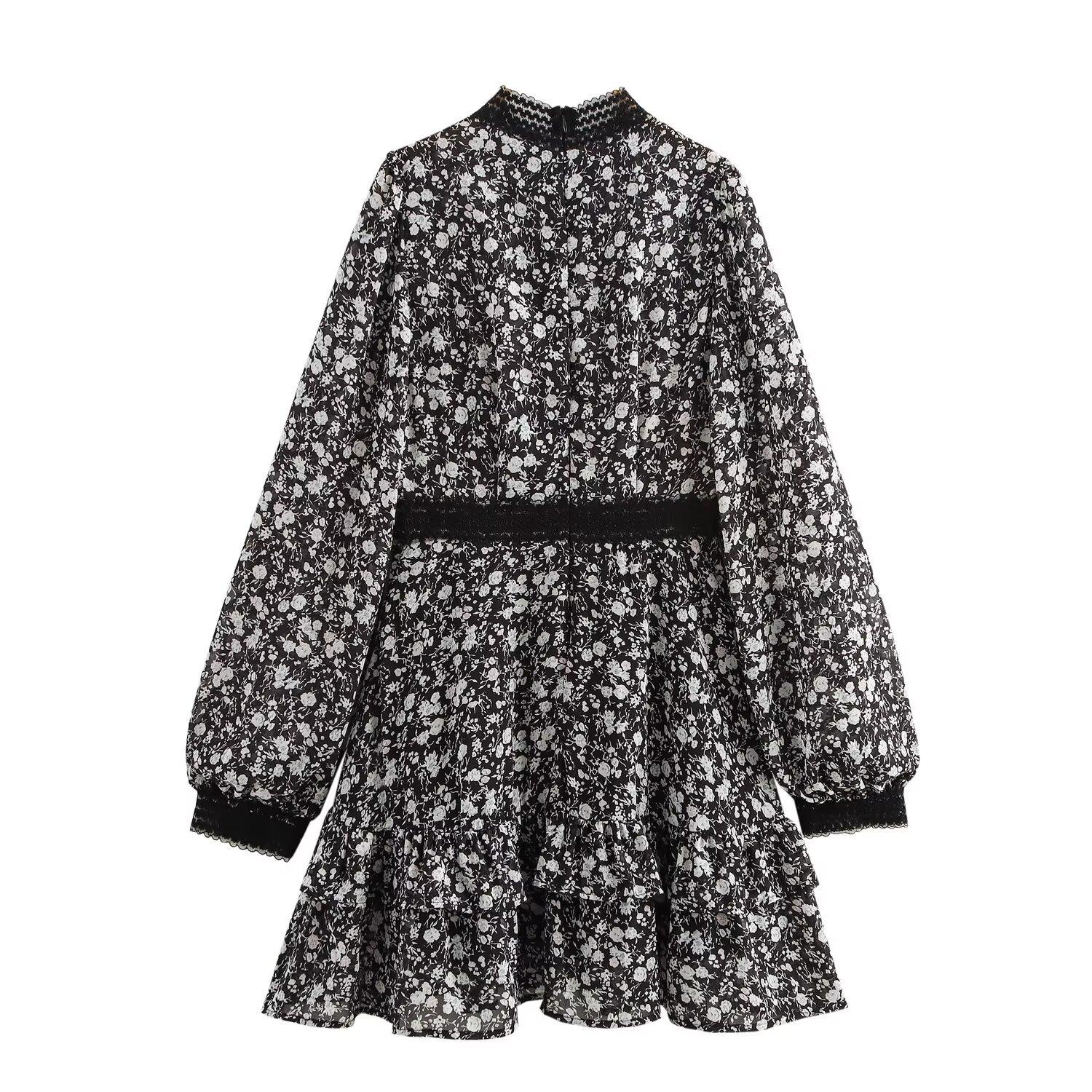 Ropa de Mujer Nueva de Invierno 2024 Europea y Americana Estilo Europeo y Americano Cuello Vertical Retro Pequeño Floral Floral Patchwork vestido Falda