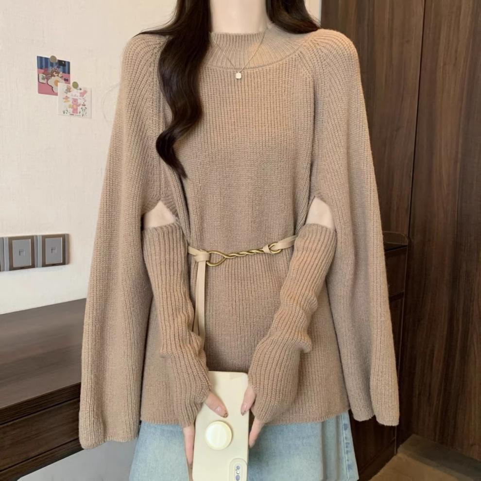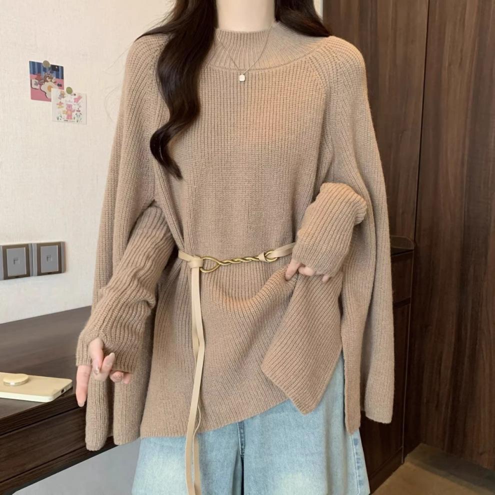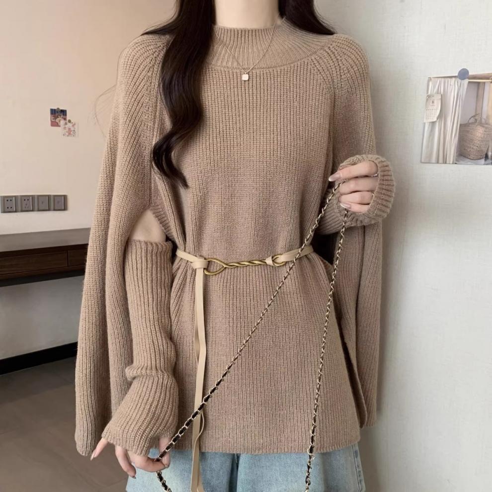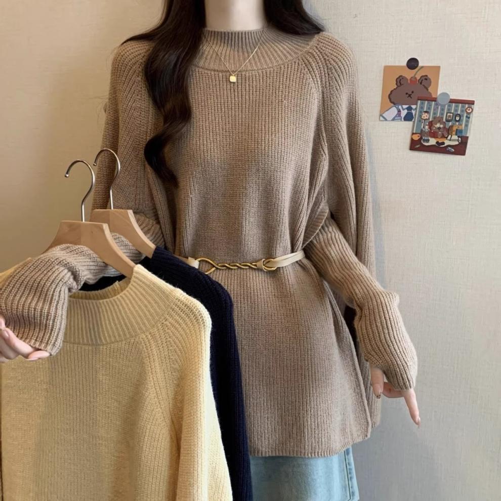 2025 Estilo Coreano Nuevo Sentido Cuello Medio Alto Top Tejido para Mujer Otoño Invierno Manga Larga Moda para Gorditas Único Hermoso Suéter Capa