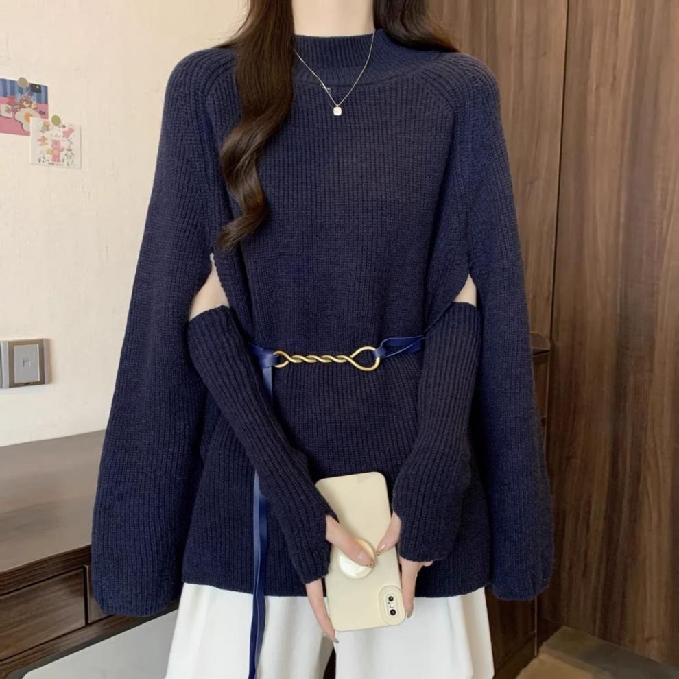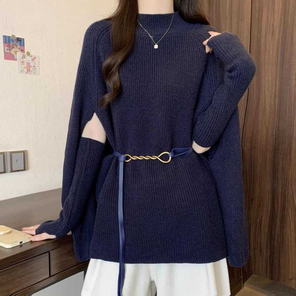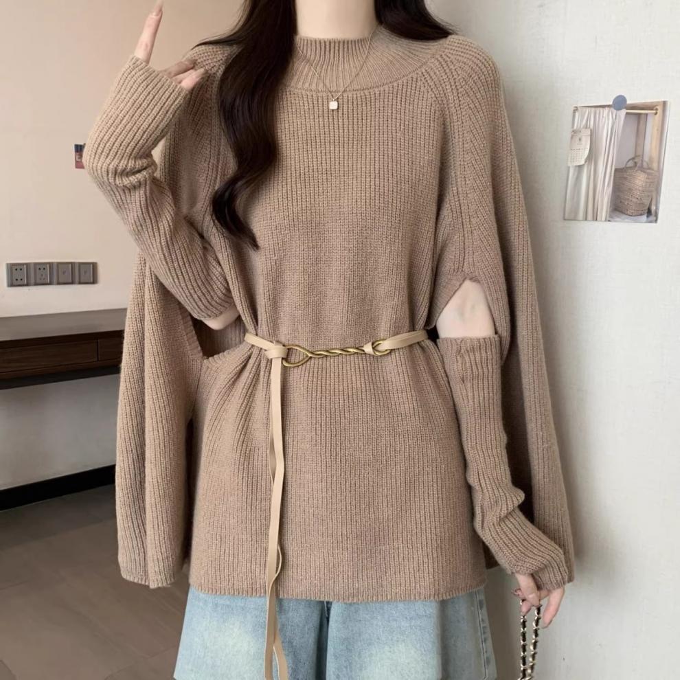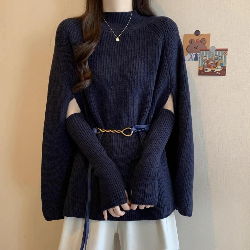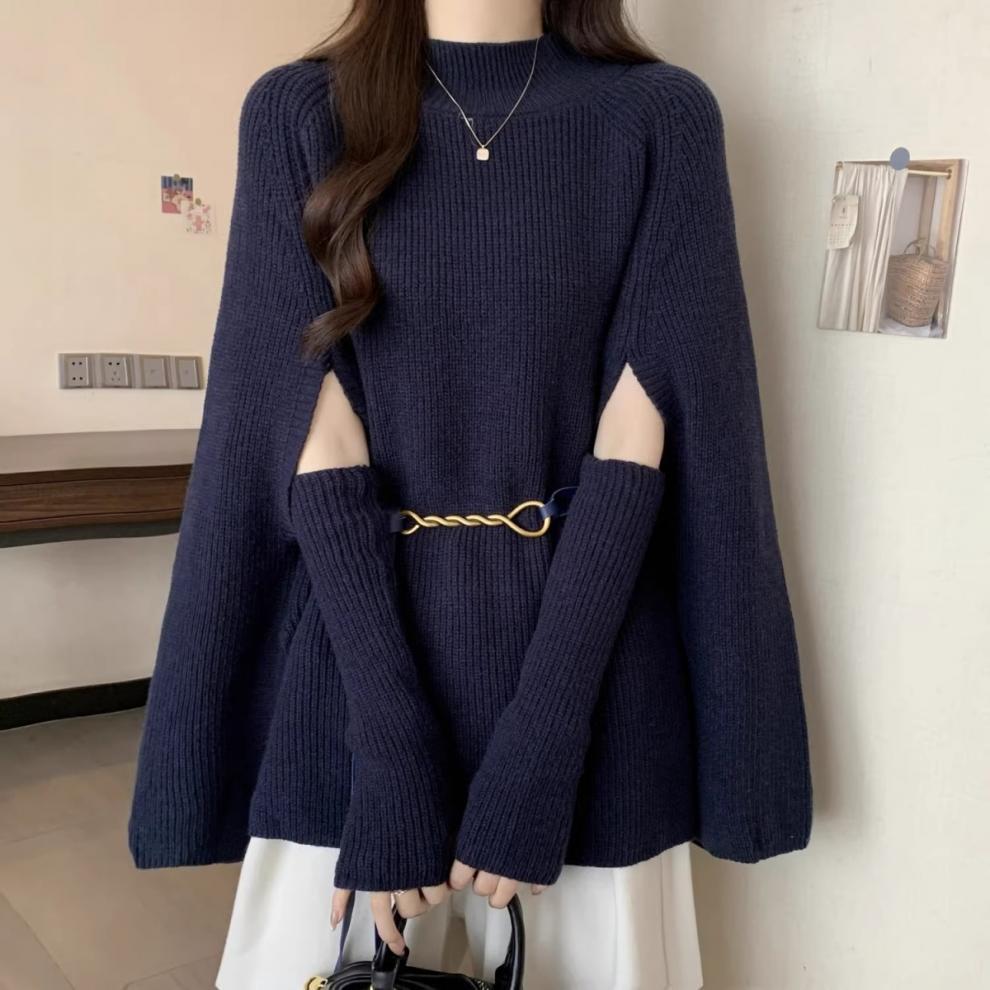 2025 Estilo Coreano Nuevo Sentido Cuello Medio Alto Top Tejido para Mujer Otoño Invierno Manga Larga Moda para Gorditas Único Hermoso Suéter Capa