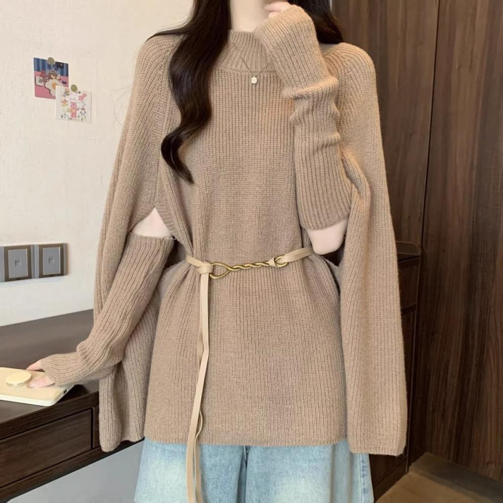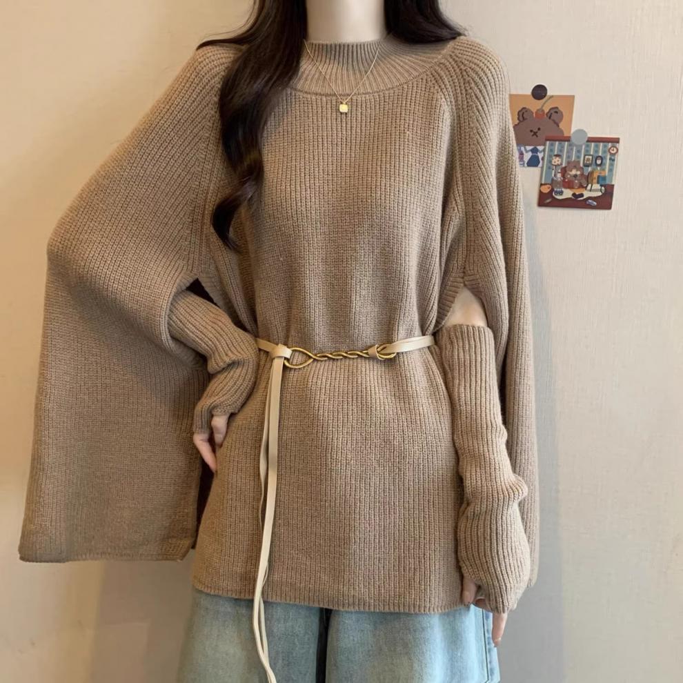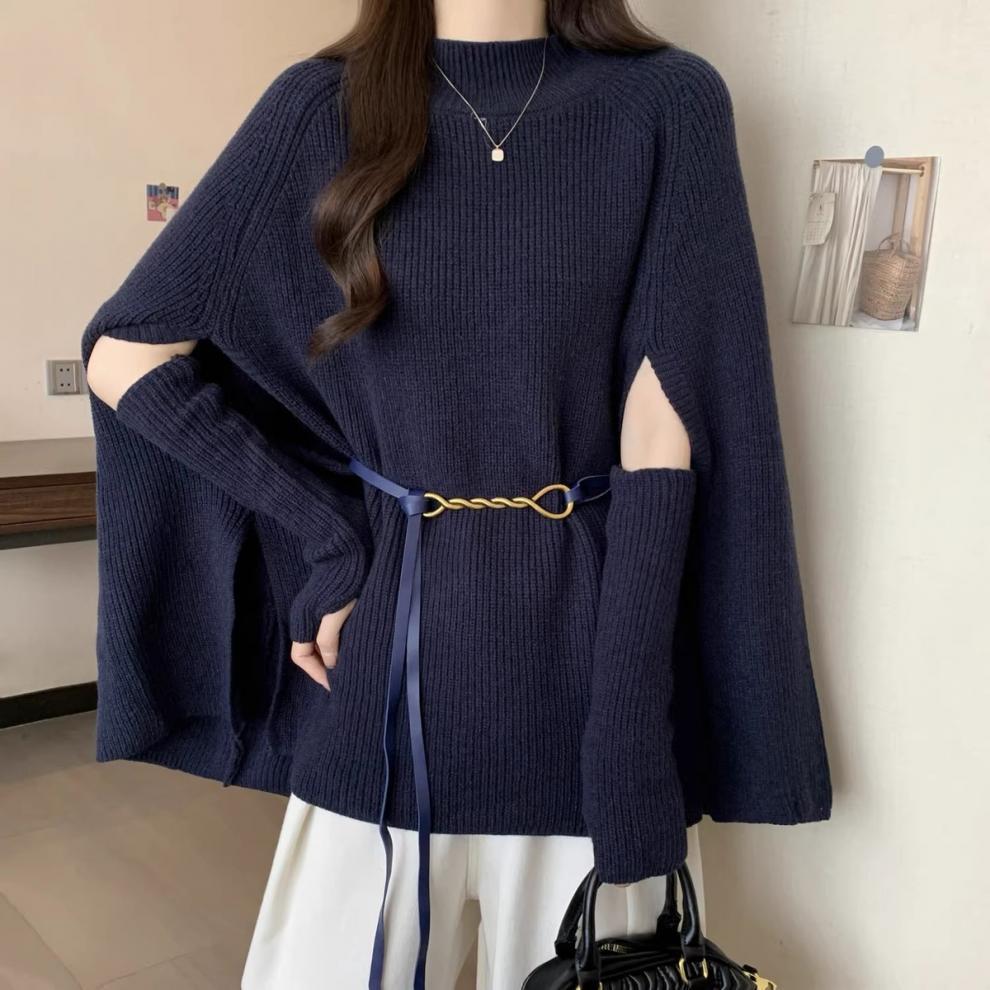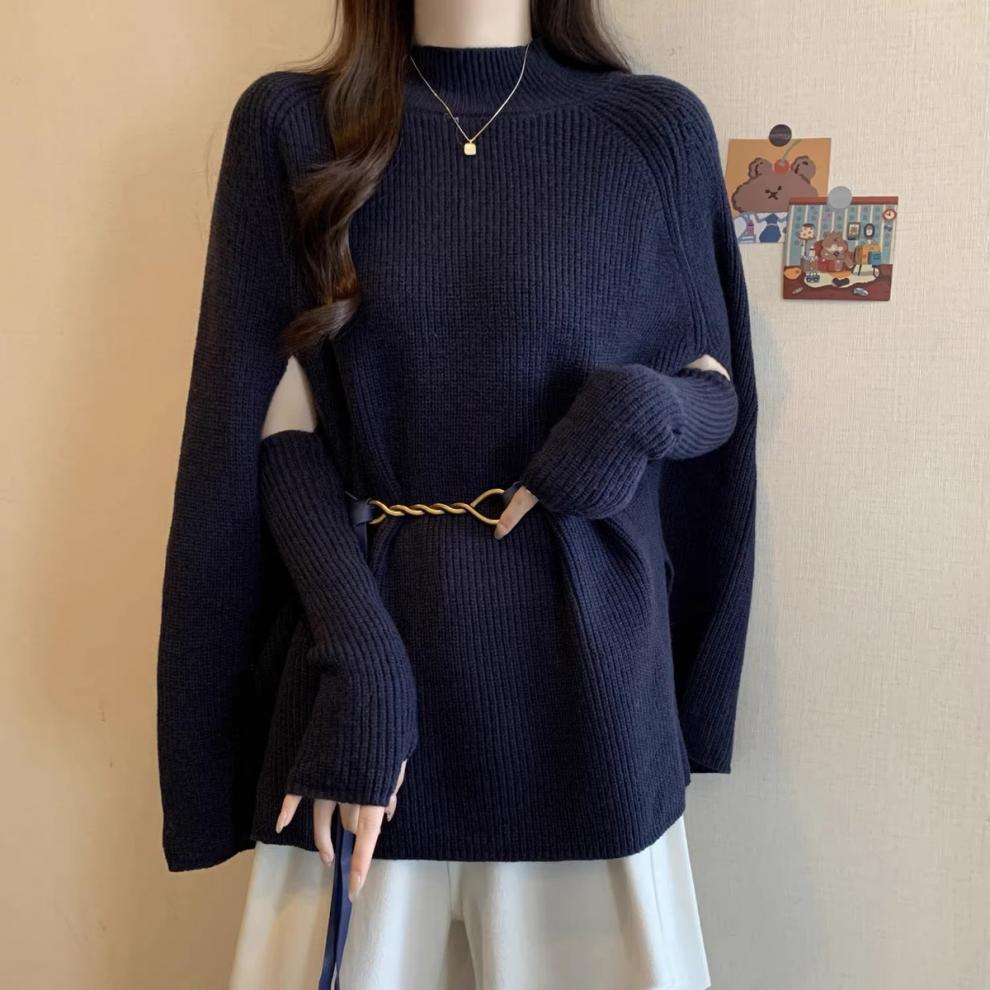 2025 Estilo Coreano Nuevo Sentido Cuello Medio Alto Top Tejido para Mujer Otoño Invierno Manga Larga Moda para Gorditas Único Hermoso Suéter Capa