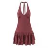 Transfronterizo 2025 Europeo y Americano Pura Lujuria Sexy Vestido Halter de Chifón para Mujer Verano Nuevo Ajustado Falda con Volantes