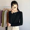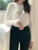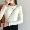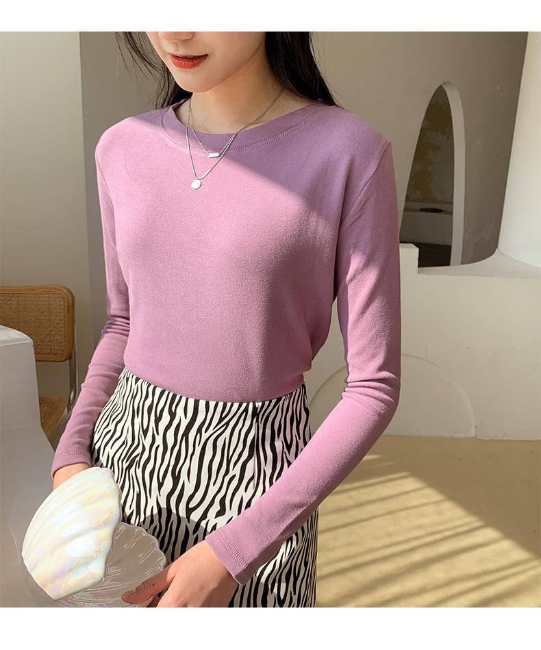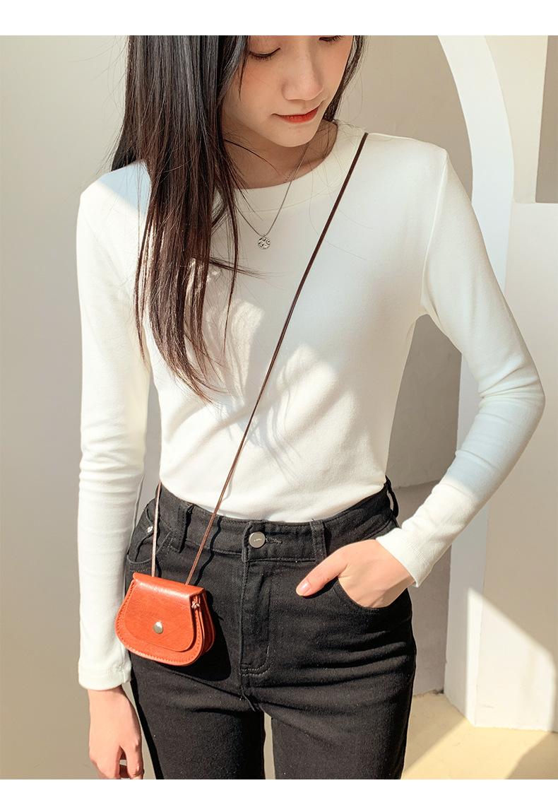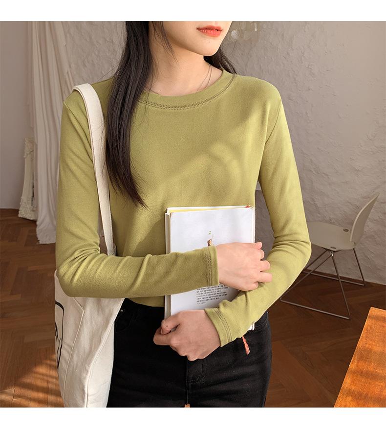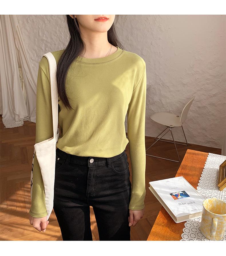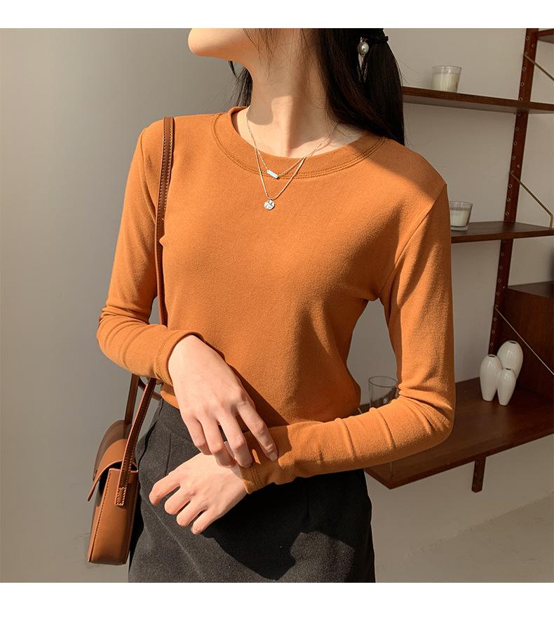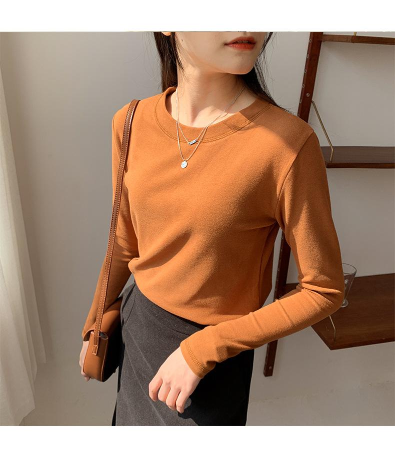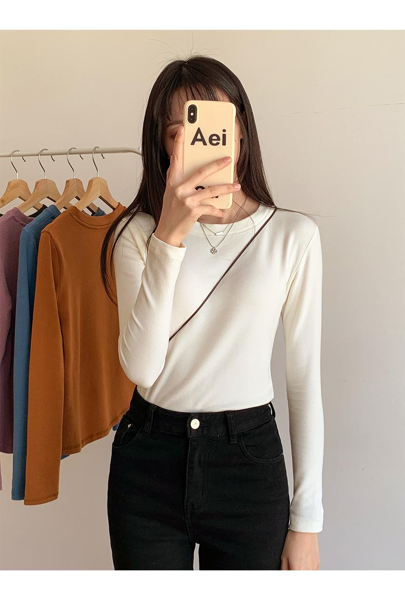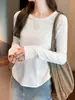 Camiseta básica de terciopelo suave y ceroso de doble cara para mujer, para otoño e invierno 2022, cuello redondo, manga larga, blanca, cepillada