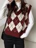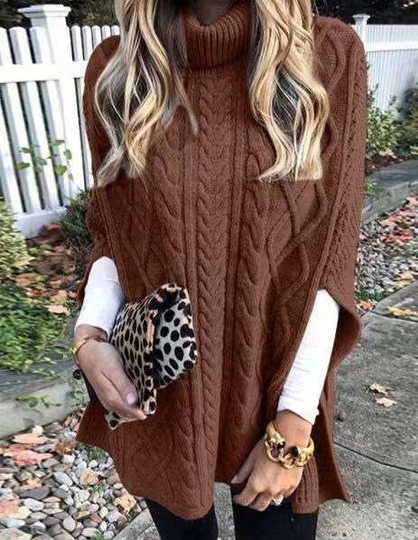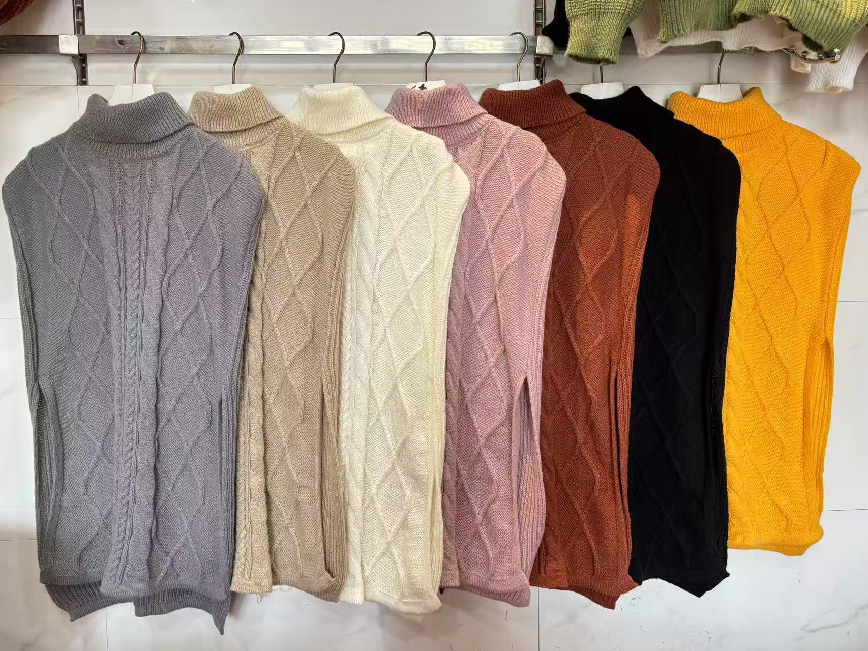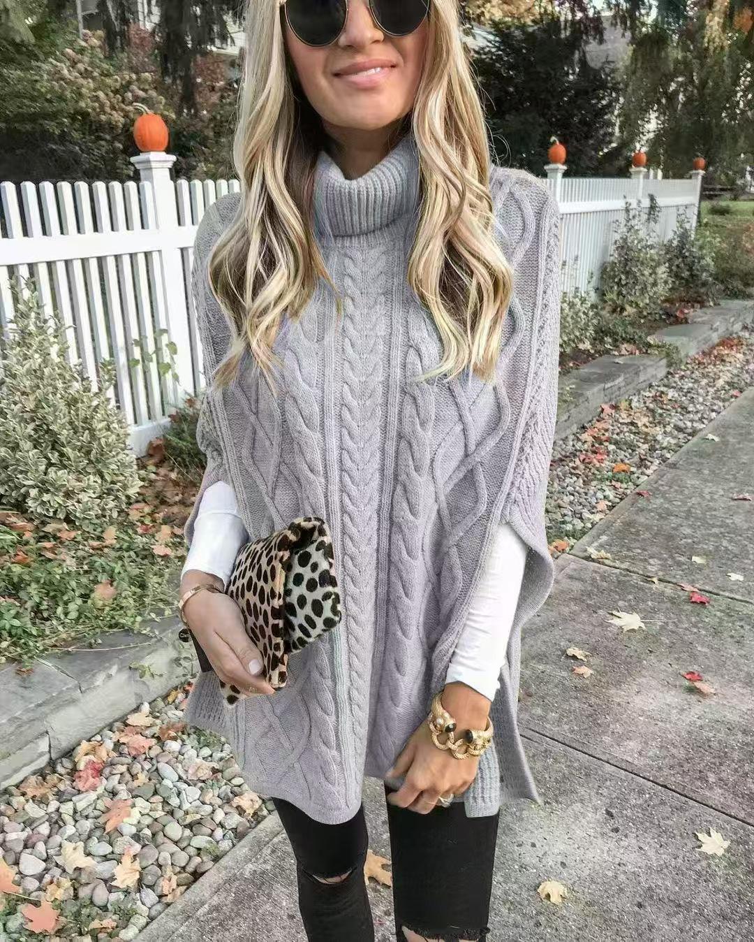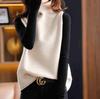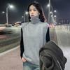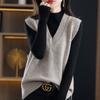 Europeo y Americano Transfronterizo Tejido de Punto Trenzado Moda Otoño e Invierno Nuevo Chaleco de Cuello Alto Suéter Literario Retro para Mujer Chaleco de Color Sólido