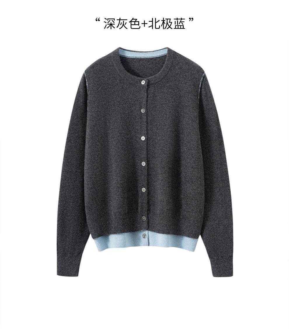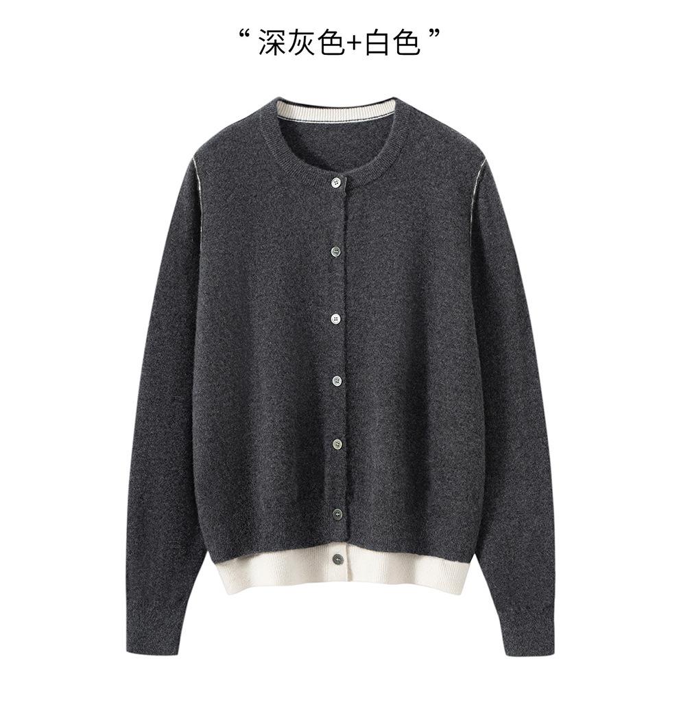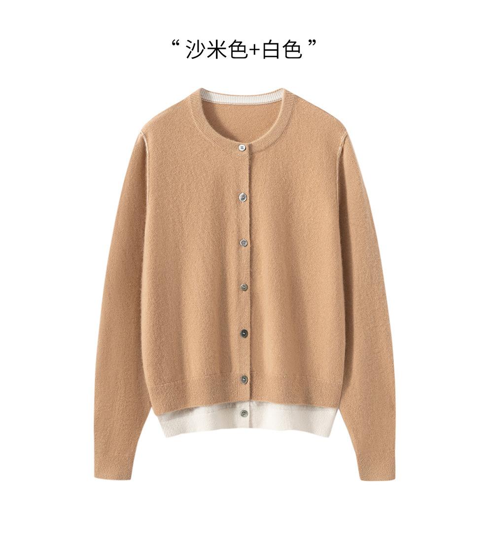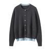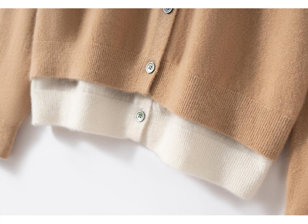 Suéter de Cachemira para Mujer 100% Cachemira Pura Otoño e Invierno Nuevo Casual Versátil Cuello Redondo Tejido Cárdigan Suéter de Dos Piezas Falso