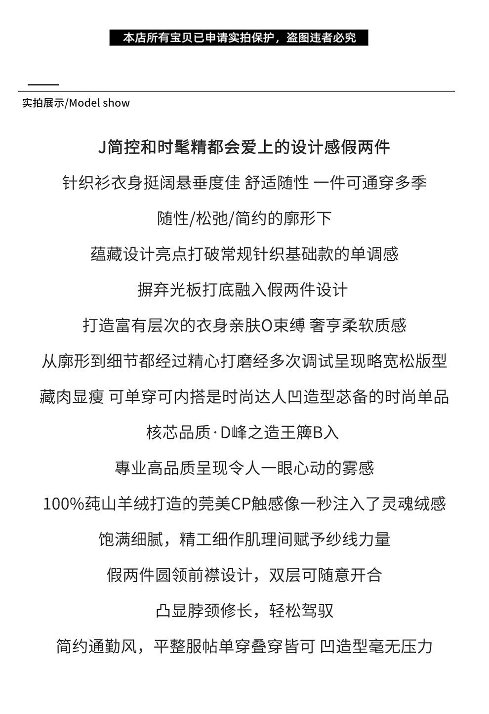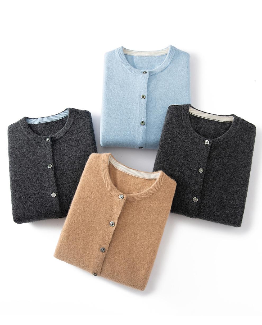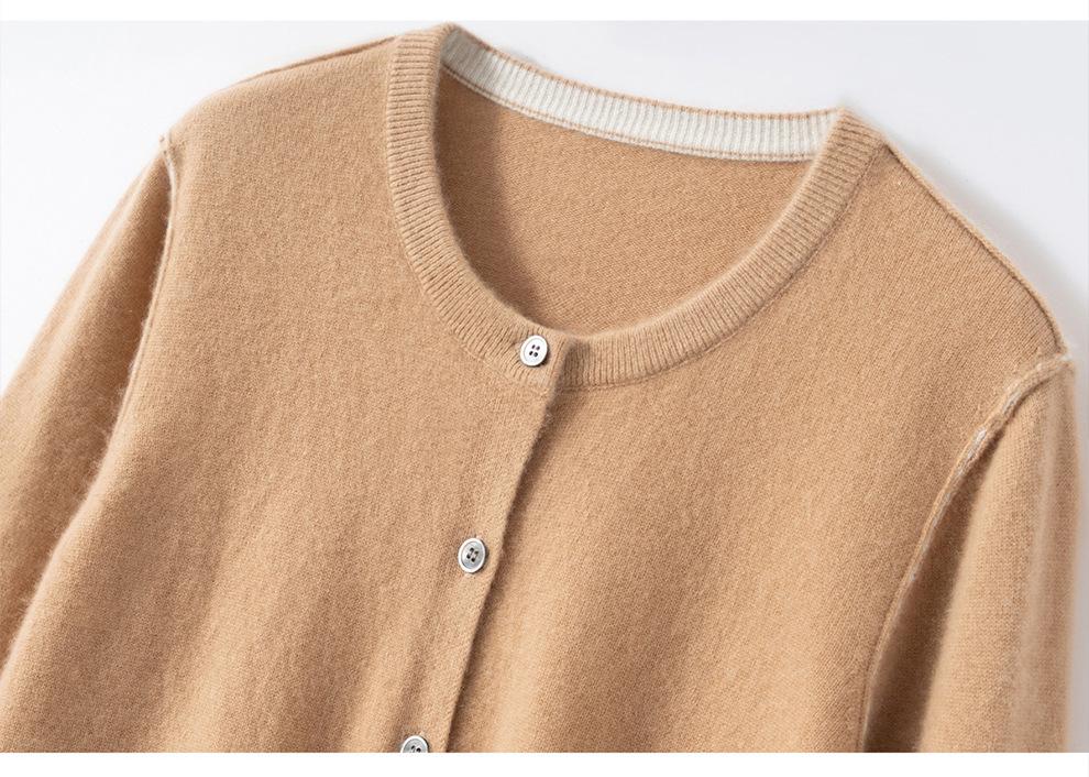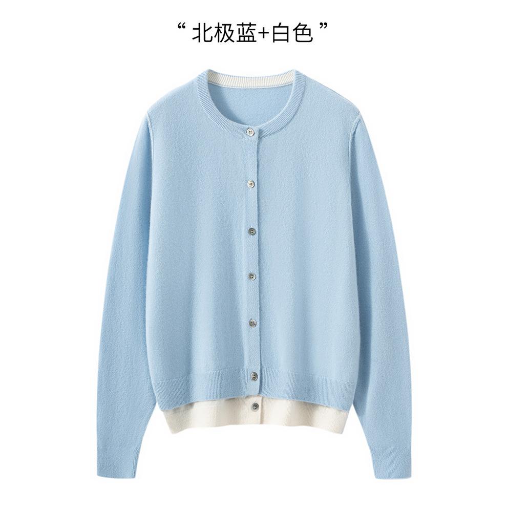 Suéter de Cachemira para Mujer 100% Cachemira Pura Otoño e Invierno Nuevo Casual Versátil Cuello Redondo Tejido Cárdigan Suéter de Dos Piezas Falso