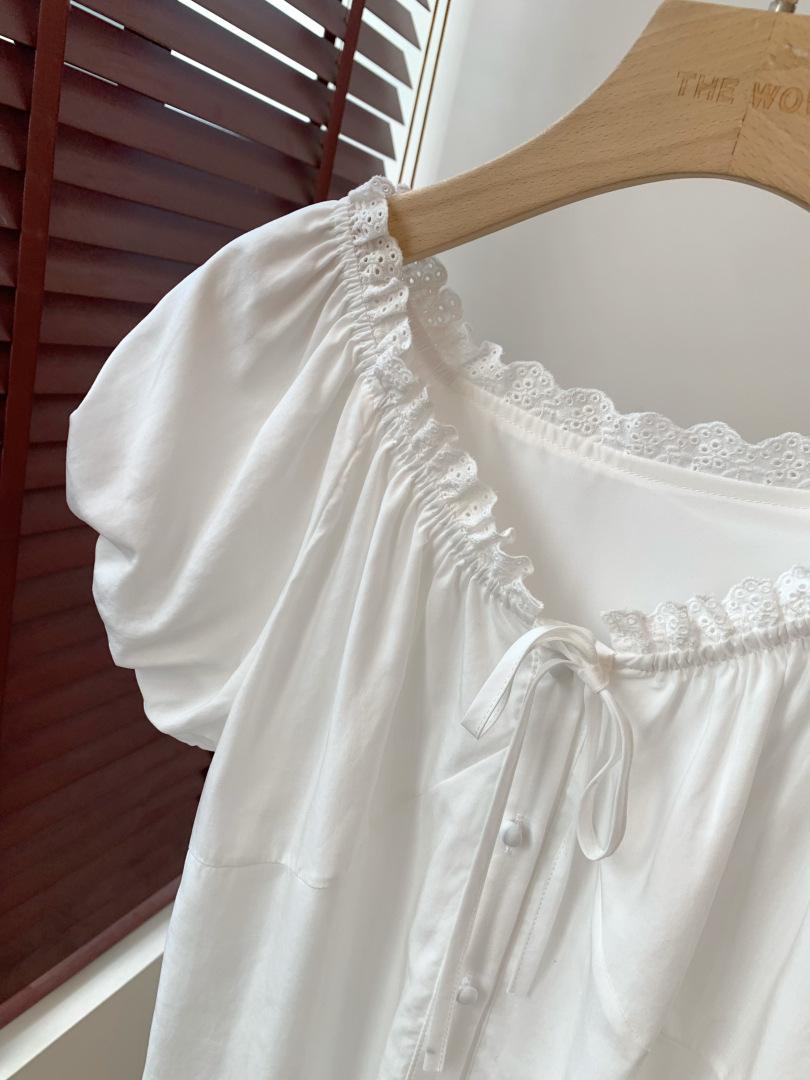 El ribete de encaje en el pecho combinado con el diseño de lazo enriquece los detalles del escote,