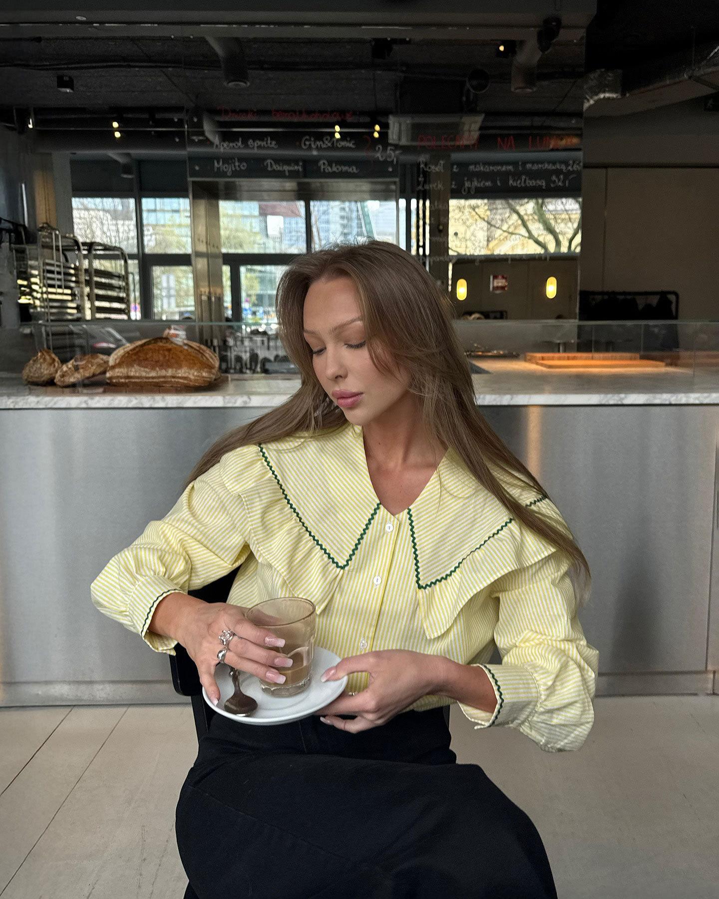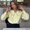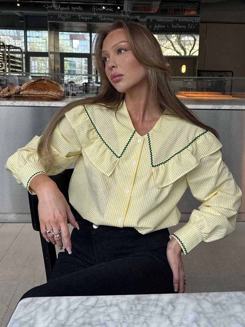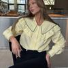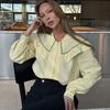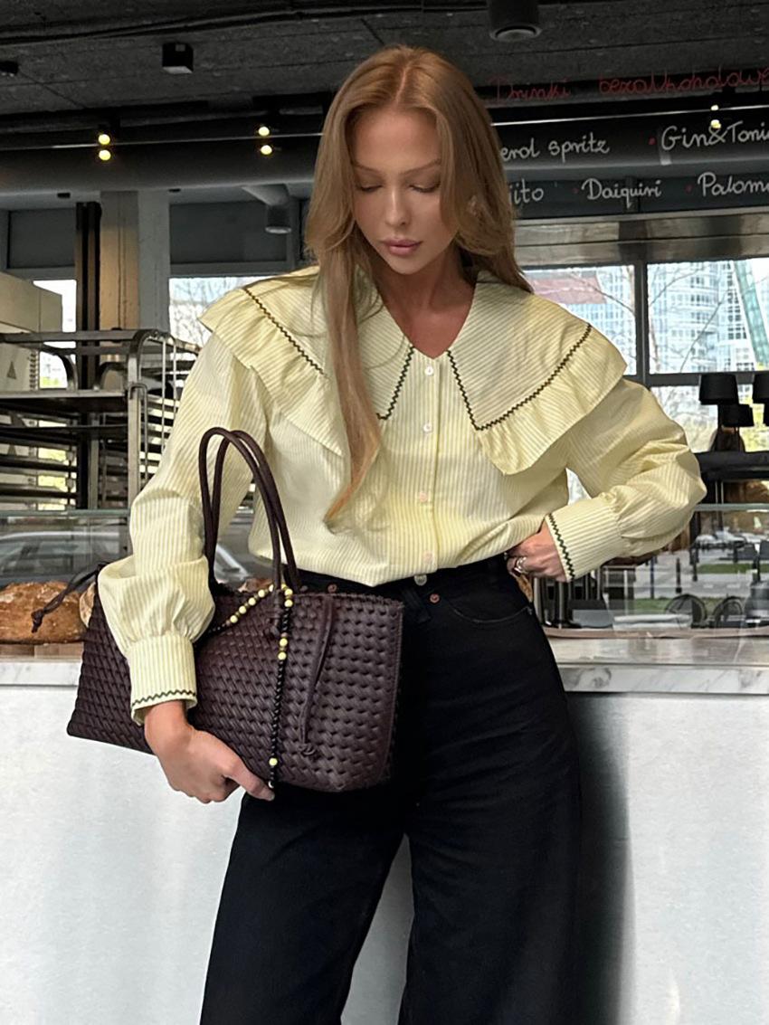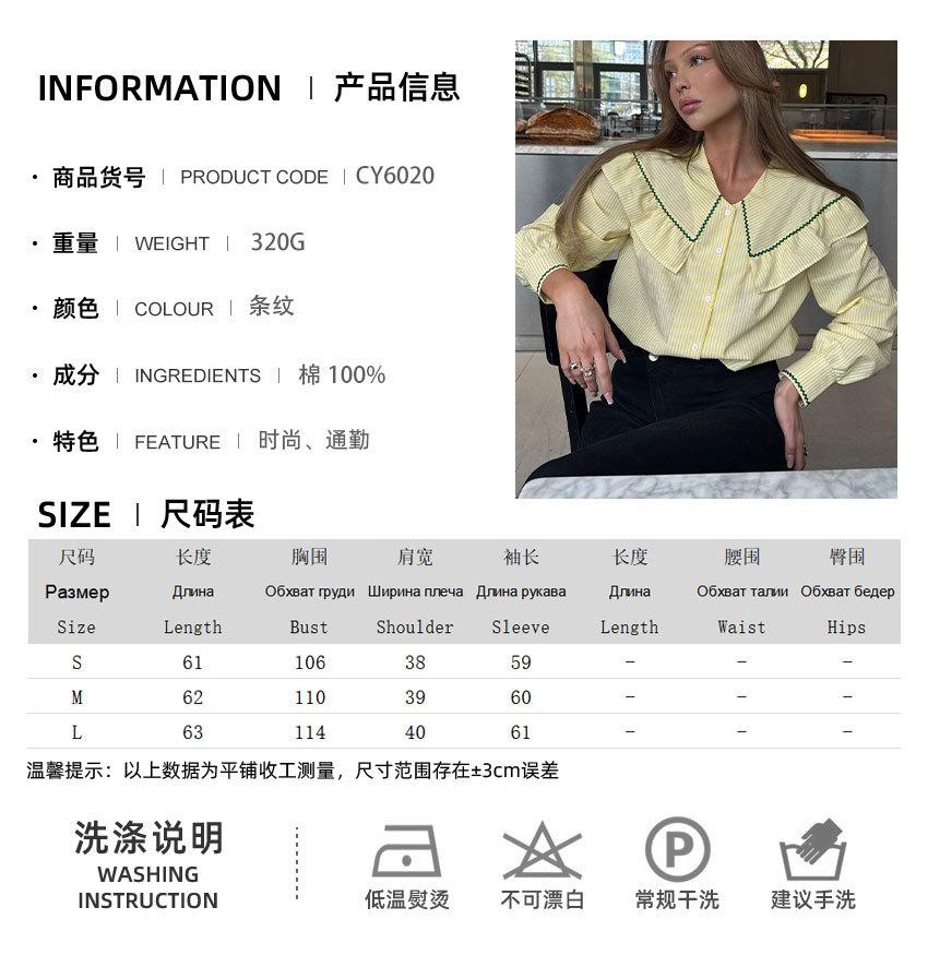 Nueva Camisa de Manga Larga a Rayas Fresca y Versátil Otoño/Invierno Cuello Peter Pan Sentido del Diseño Temperamento Moda 2025 Desplazamiento Transfronterizo