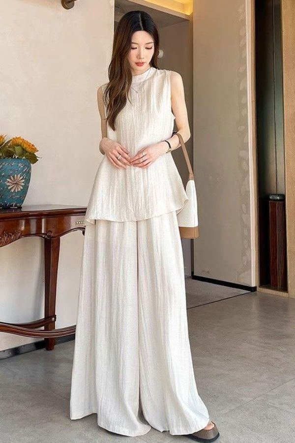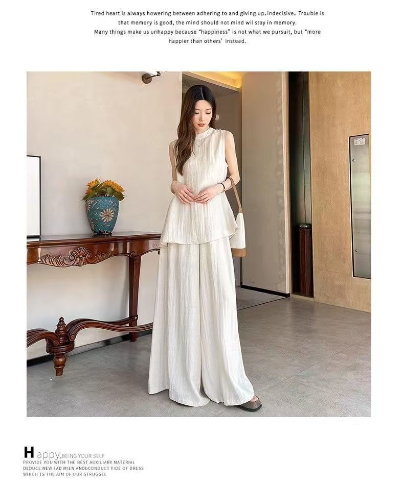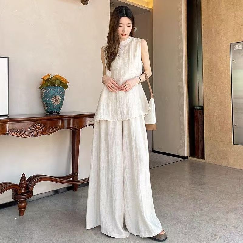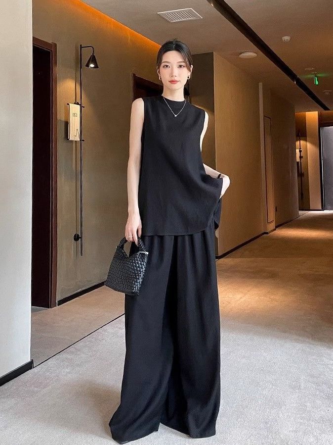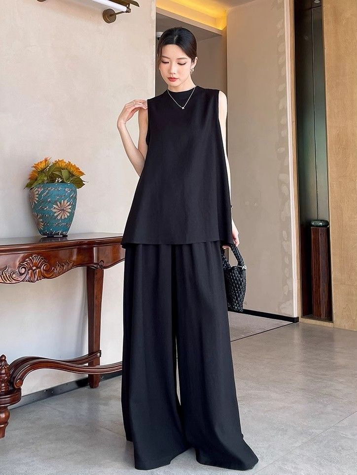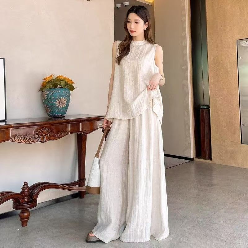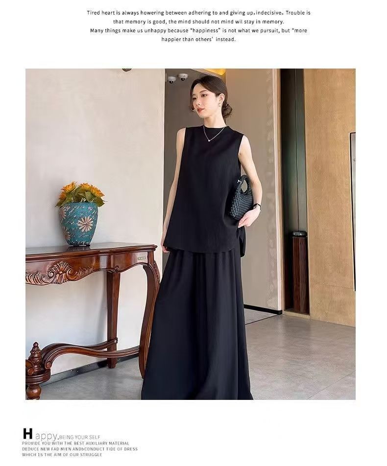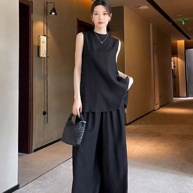 Verano 2025 Nuevo Top Casual Temperamento Moda Sin Mangas Holgado Chaleco Vestido Pantalón Conjunto Conjunto de Dos Piezas INS