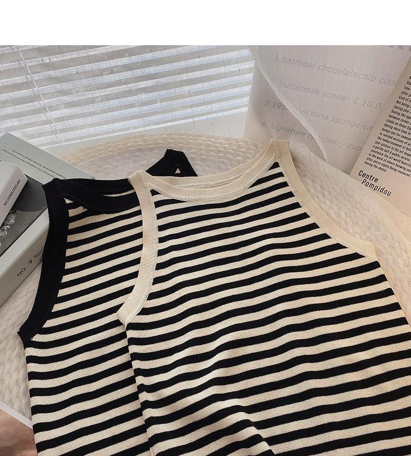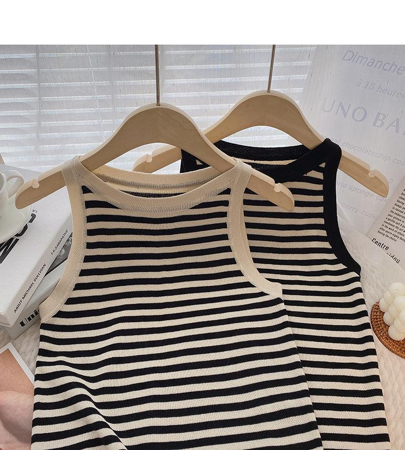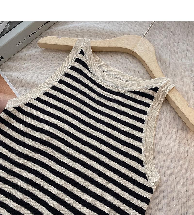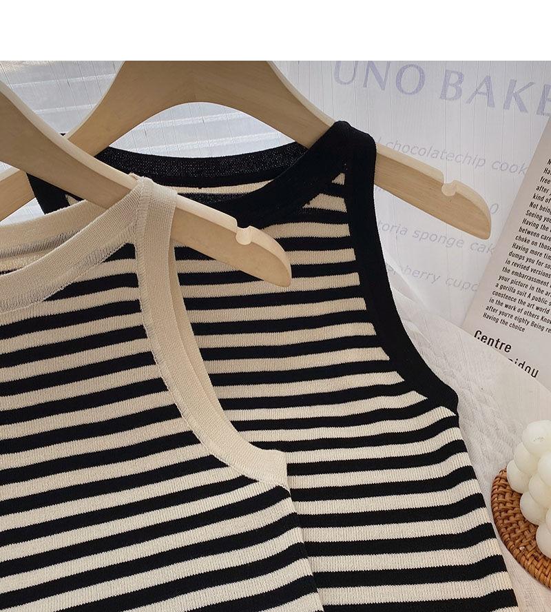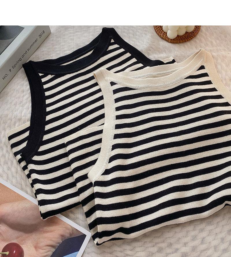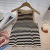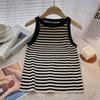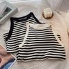 Camisola Niche Exterior Corta Blanca y Negra Sin Mangas Tank Top de Verano para Mujer Adelgazante Ajustada Capa Interior Top de Temporada Rayada Dulce y Picante