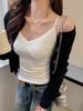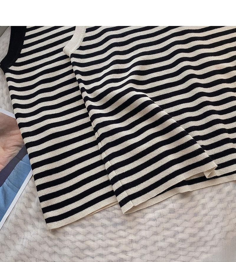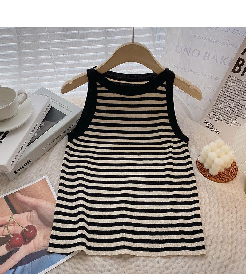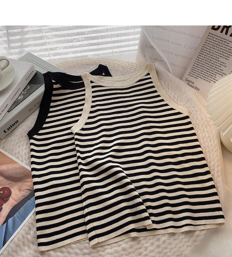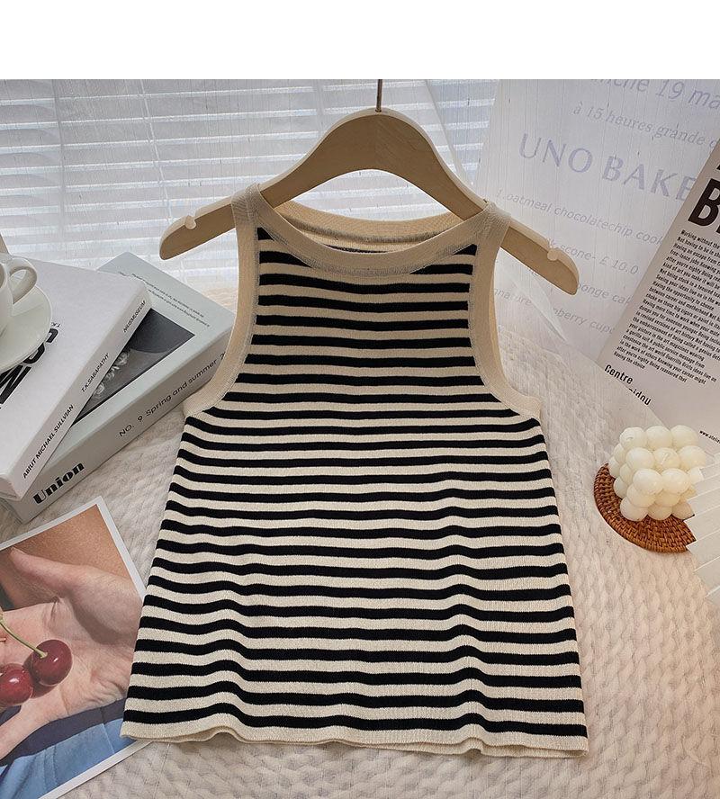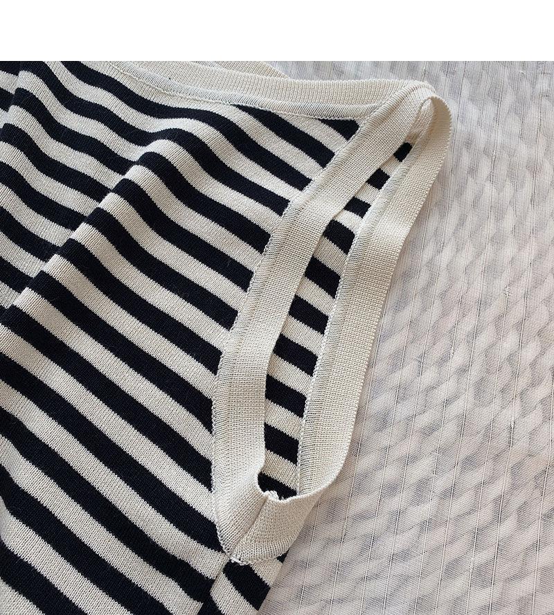 Camisola Niche Exterior Corta Blanca y Negra Sin Mangas Tank Top de Verano para Mujer Adelgazante Ajustada Capa Interior Top de Temporada Rayada Dulce y Picante