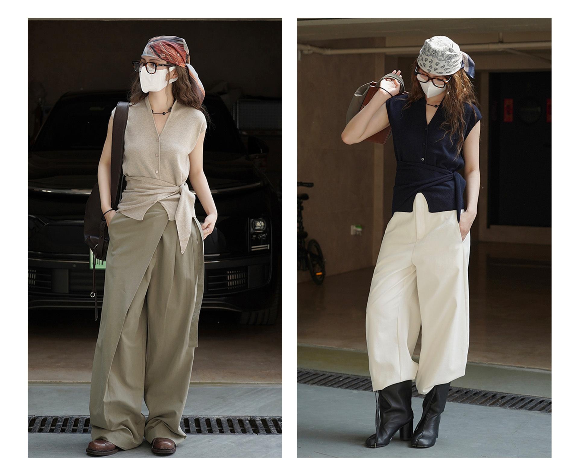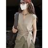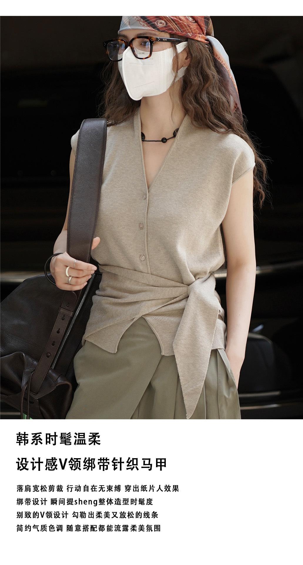 Otoño Nuevo Diseño de Moda Coreana Cuello en V Anudar Chaleco de Punto Top Temperamento Suave Mujer