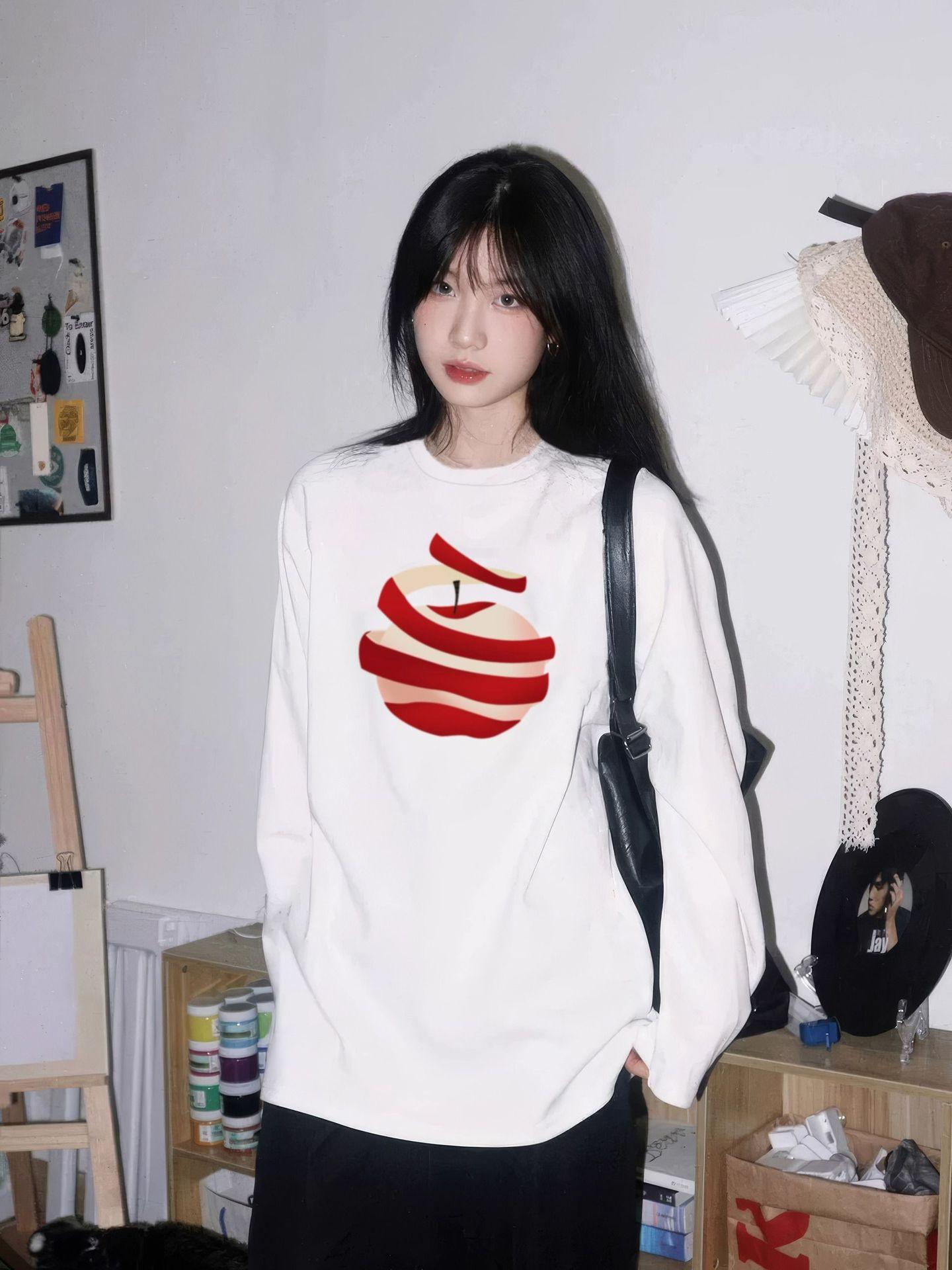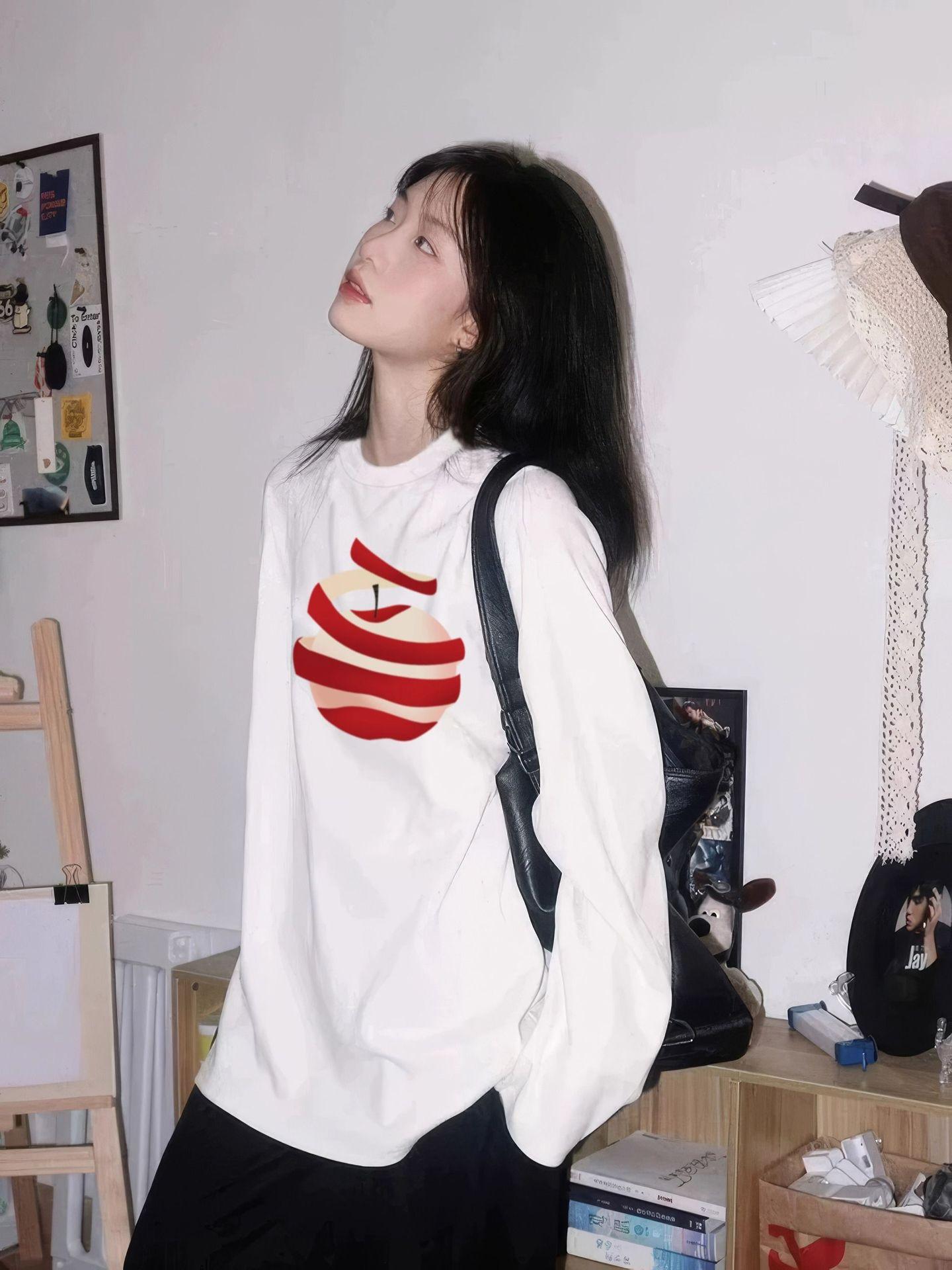 Camiseta de manga larga estilo ins de Hong Kong para mujer, ropa de otoño, algodón puro, estudiante, holgada, ropa de otoño, abrigo, diseño de nicho, top, camisa básica