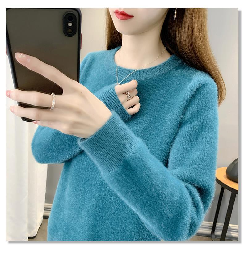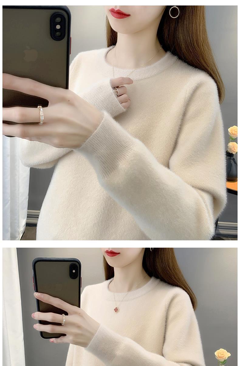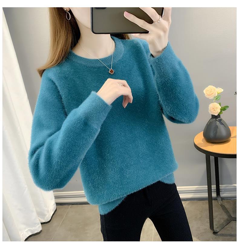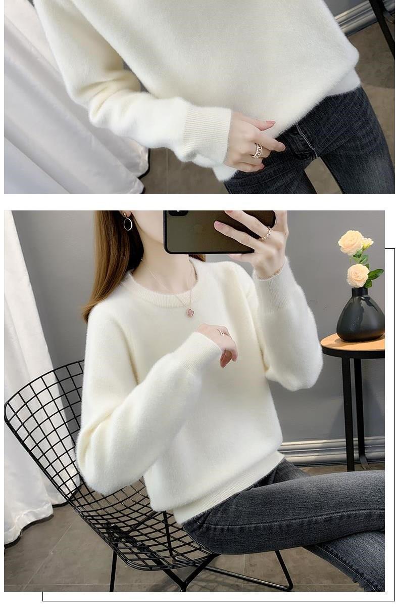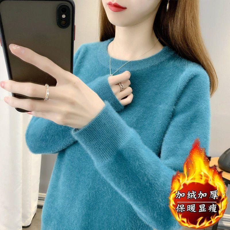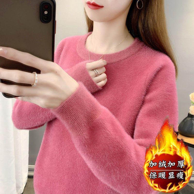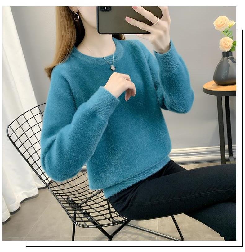 Suéter de cuello redondo de lana de visón para mujer, jersey de otoño e invierno 2025, interior cálido, grueso, informal, de punto, base, camiseta para mujer
