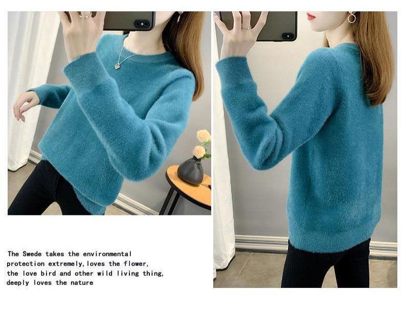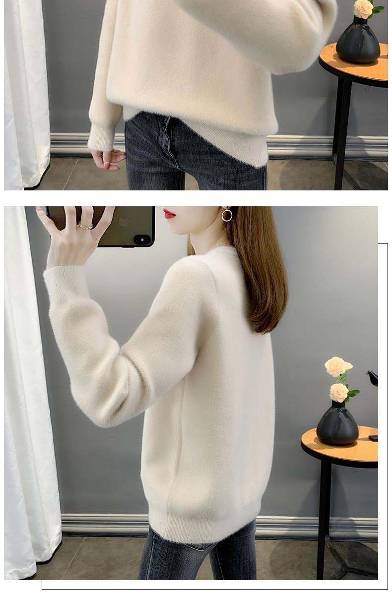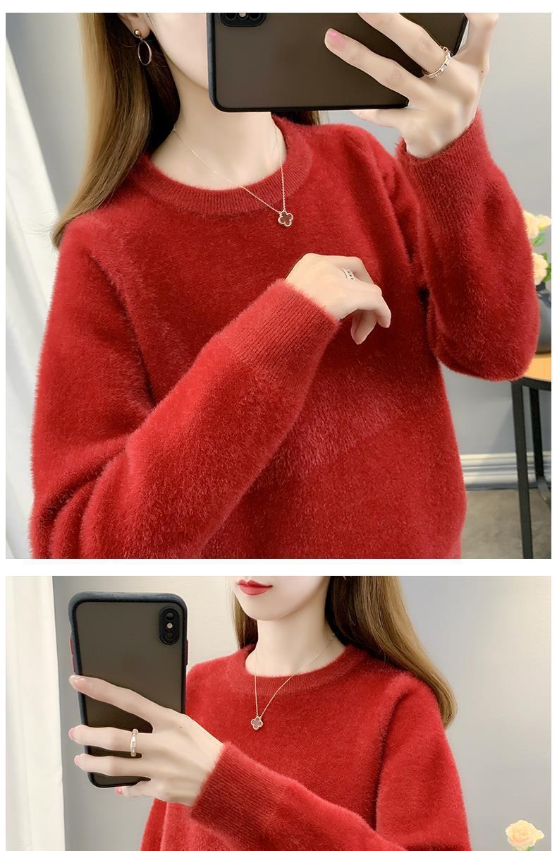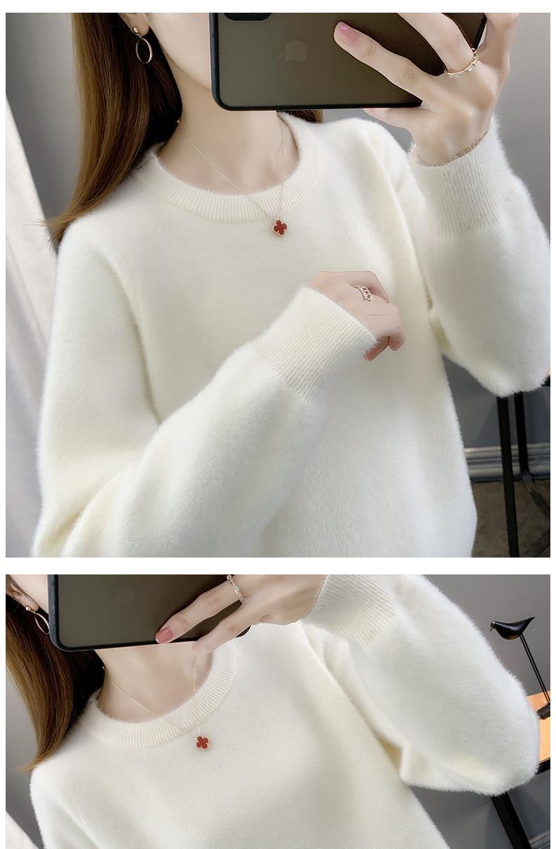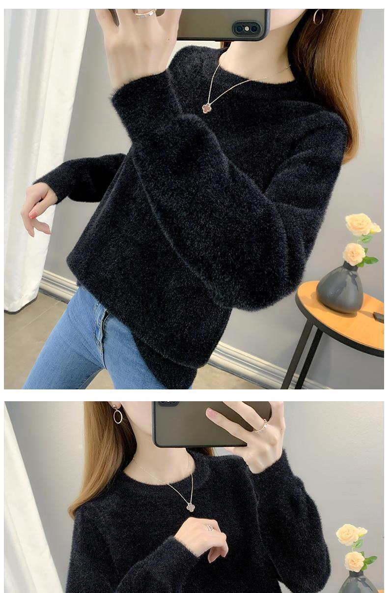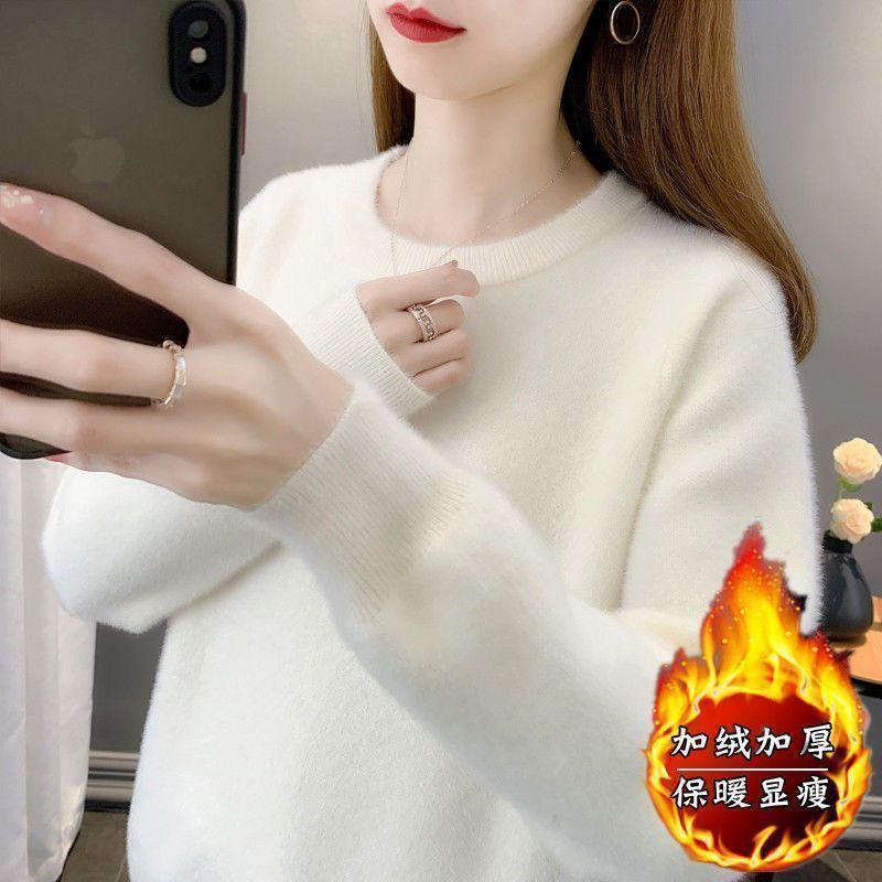 Suéter de cuello redondo de lana de visón para mujer, jersey de otoño e invierno 2025, interior cálido, grueso, informal, de punto, base, camiseta para mujer